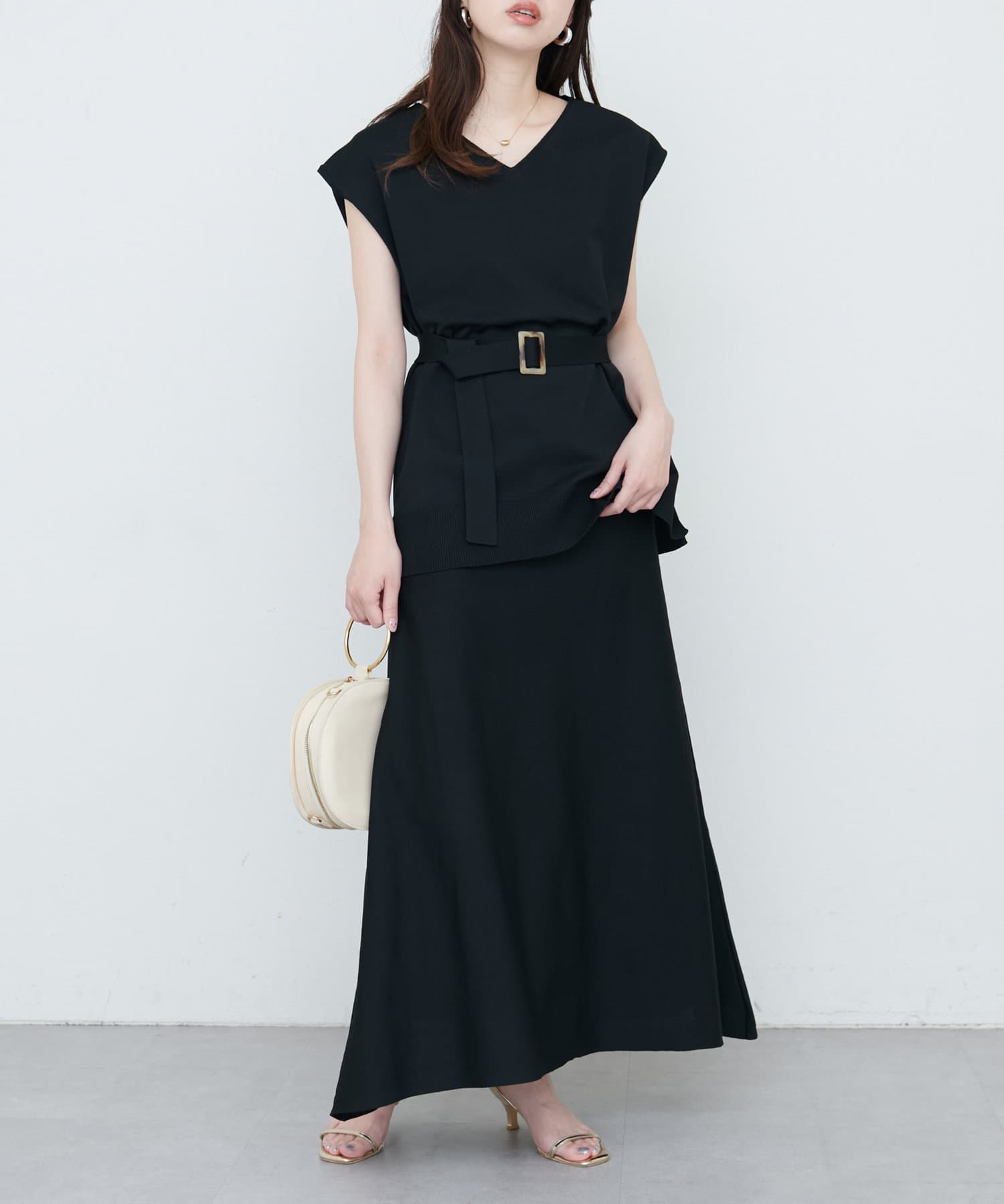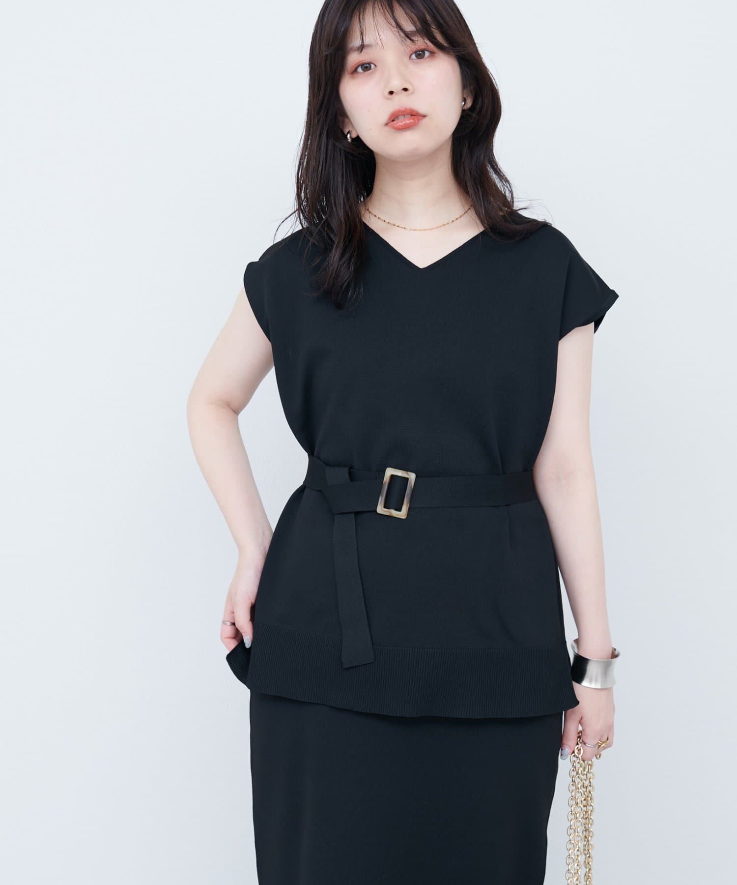 0351010620 セットアップ対応 べっこうベルト付きニットタイトスカート