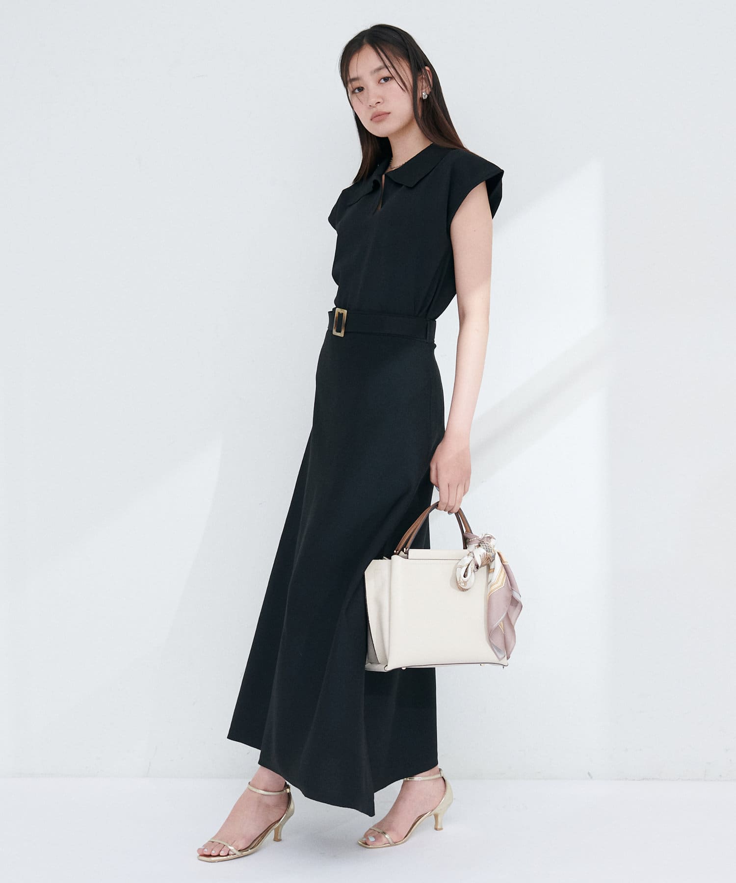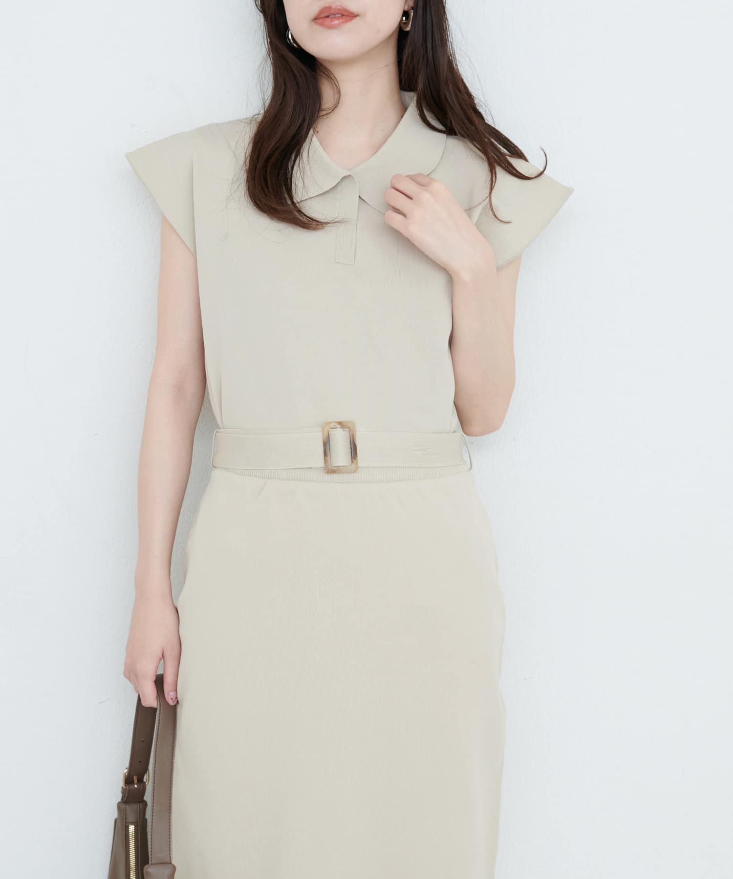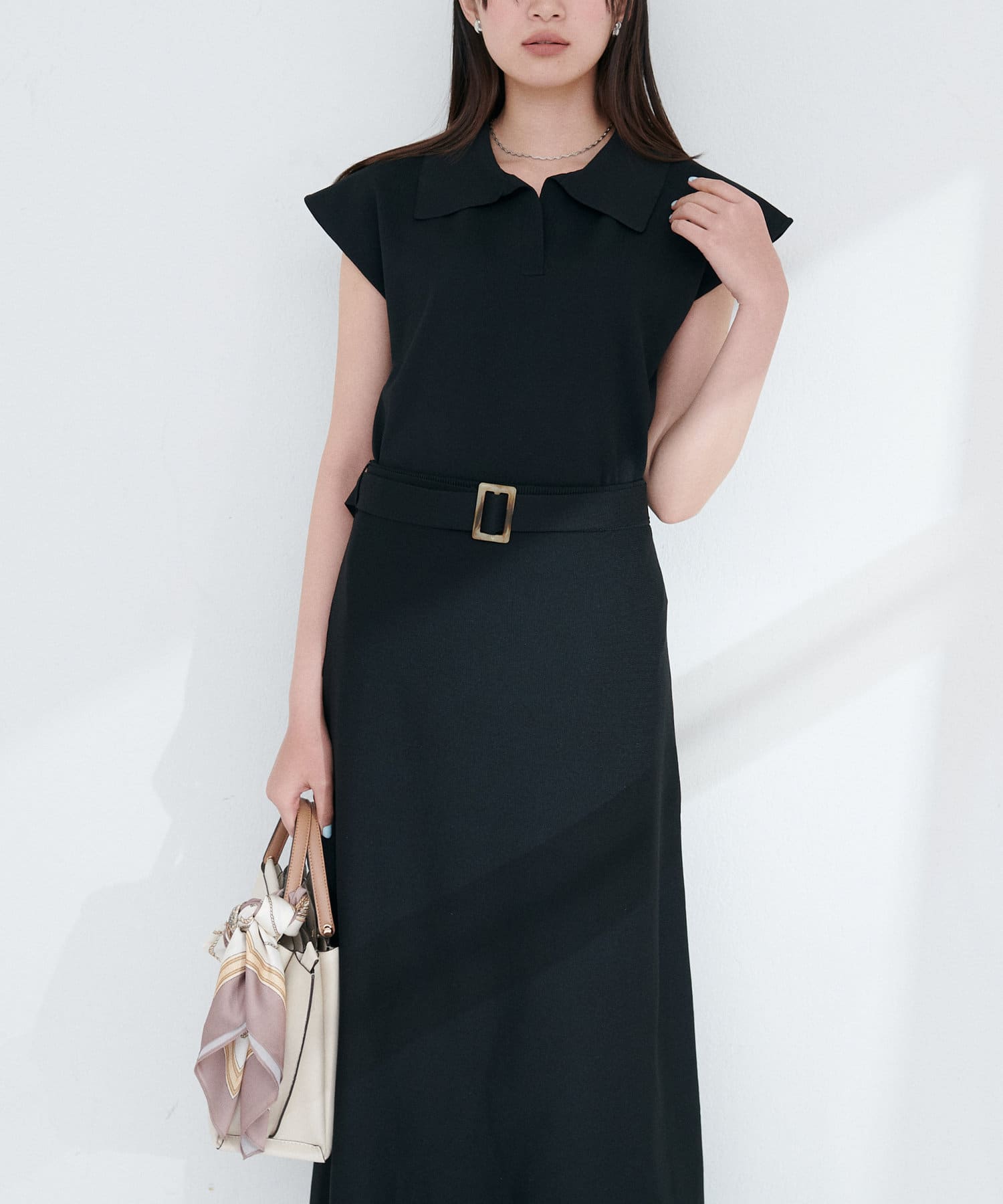衿付きデザインで、きちんと感を演出しつつ抜け感をプラス。