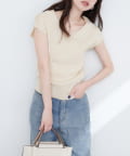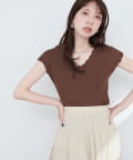 リブ編み素材でボディラインに優しくフィットし、スタイルアップ効果も期待できます。