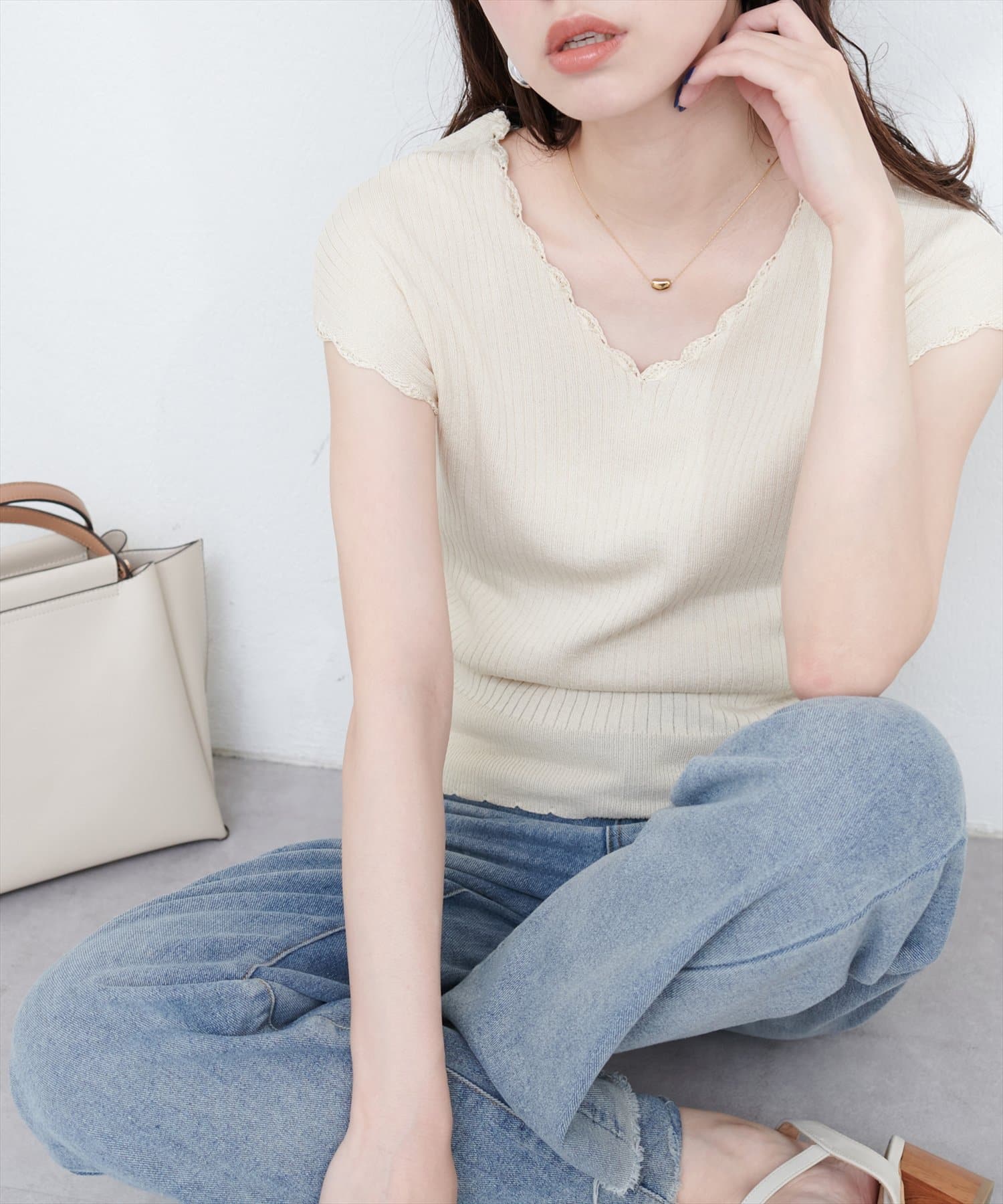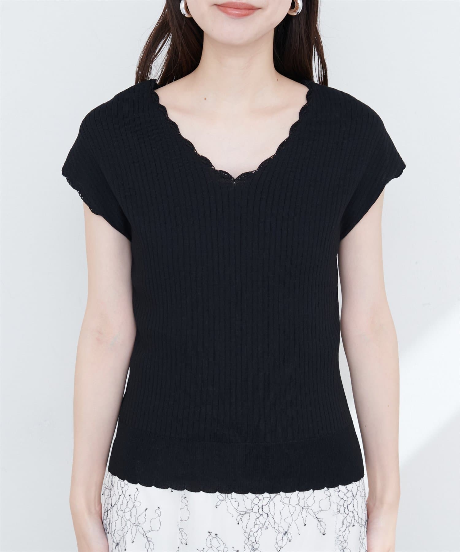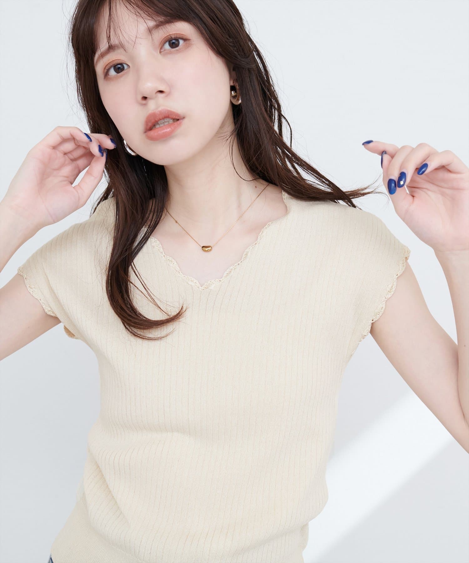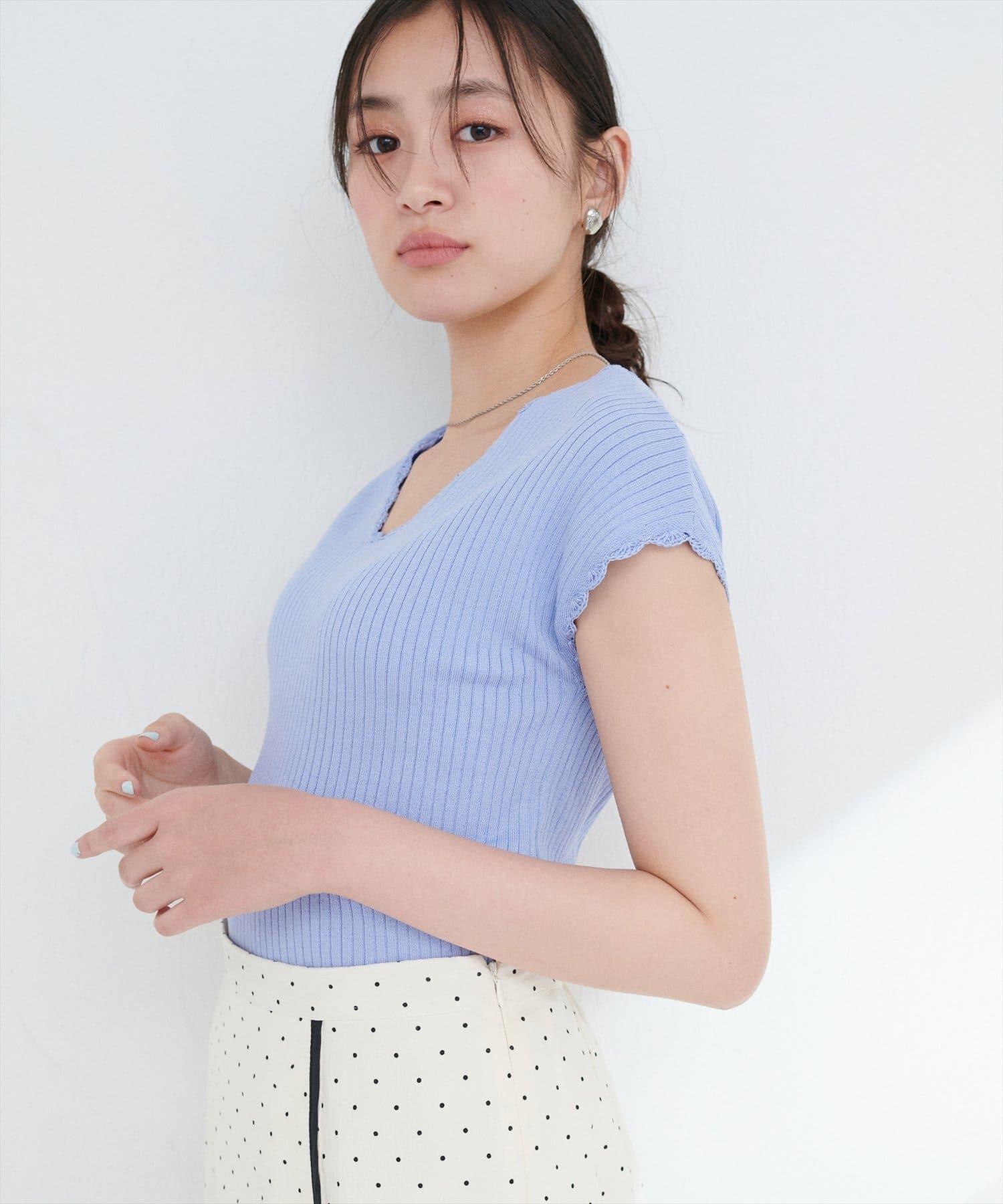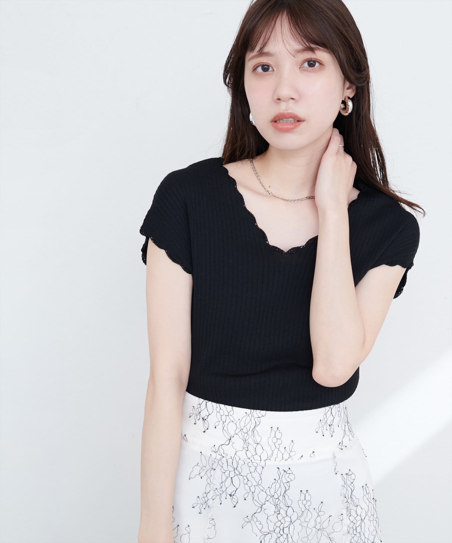 フェミニンなスカラップネックが首元を華やかに演出し、女性らしさをプラスします。