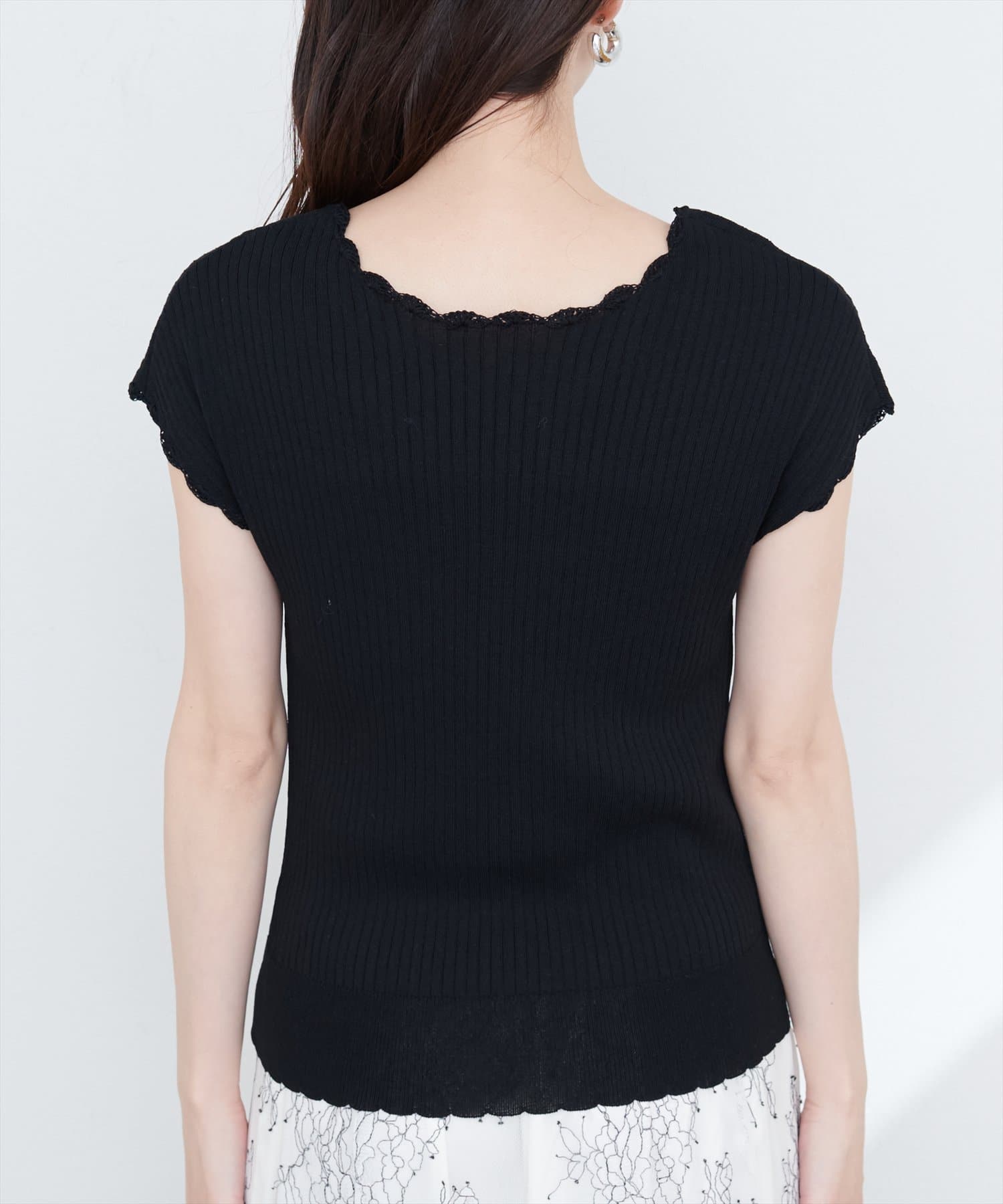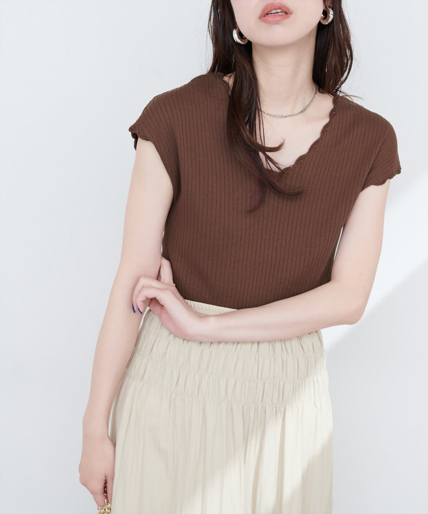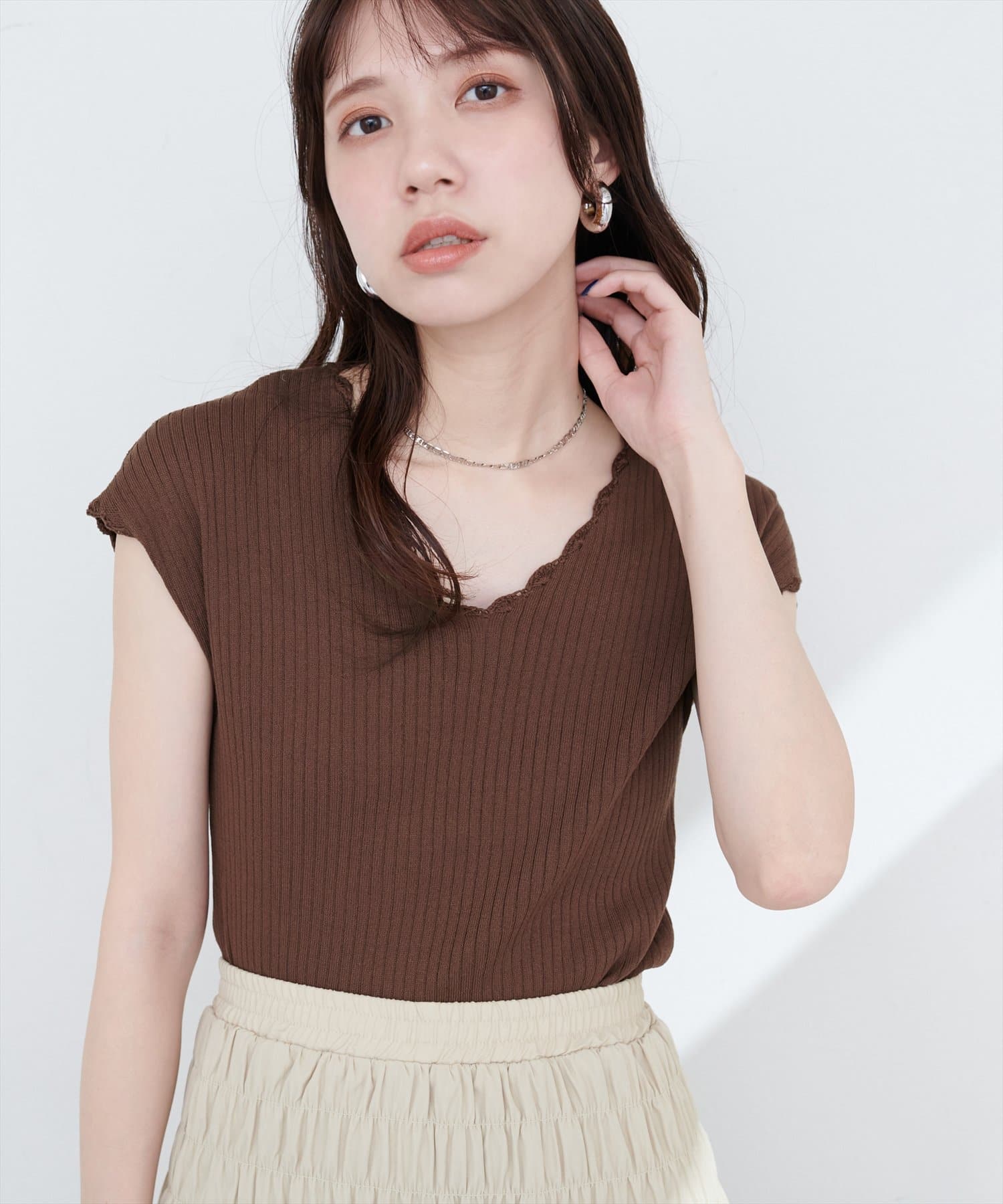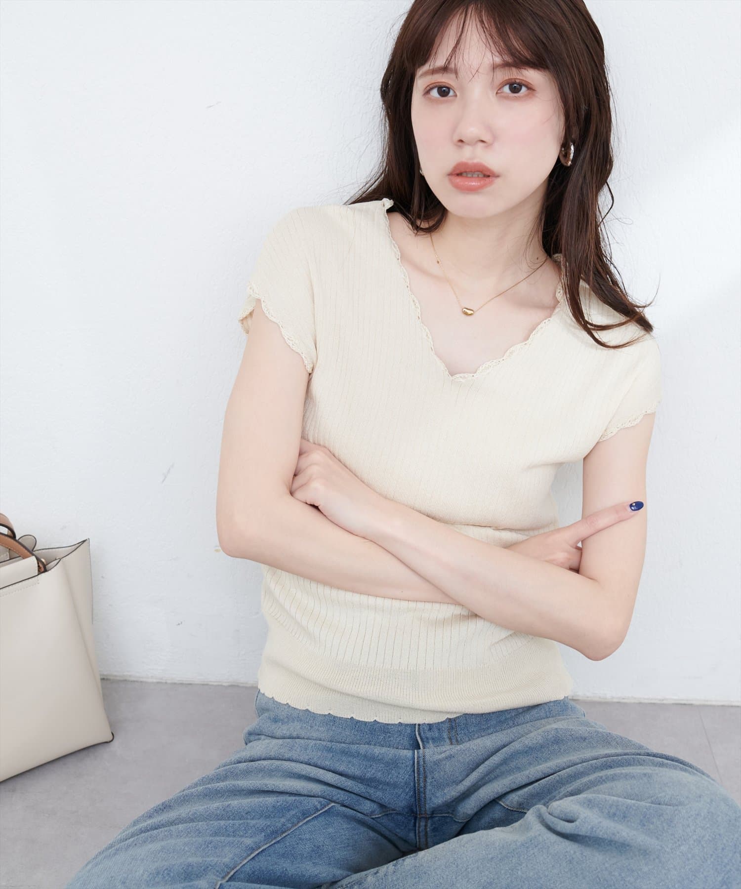 フェミニンなスカラップネックが首元を華やかに演出し、女性らしさをプラスします。