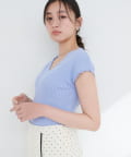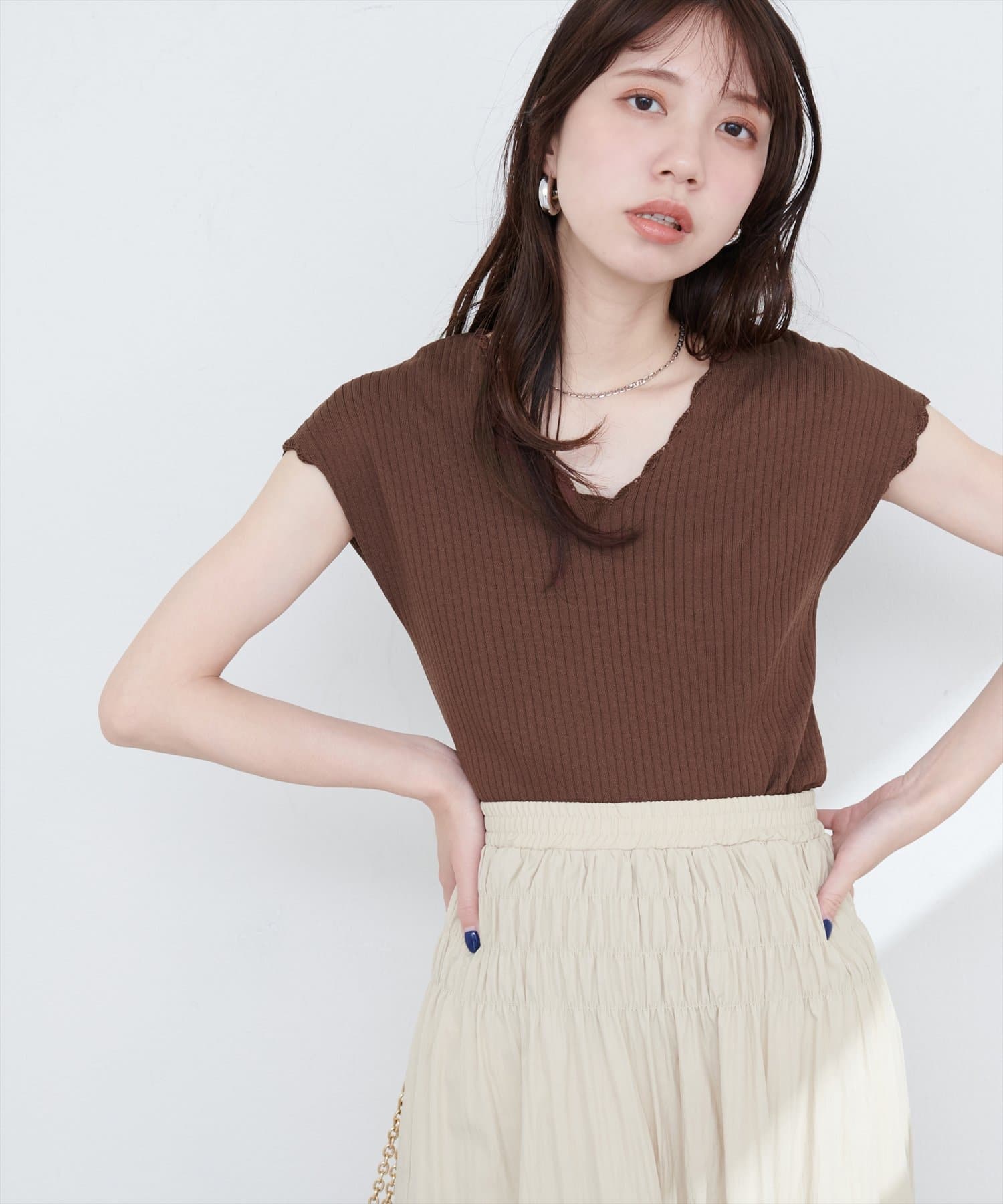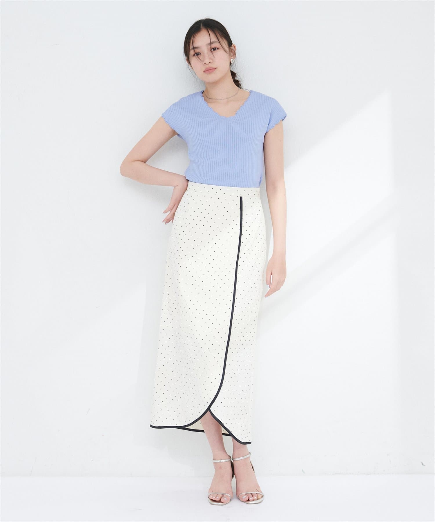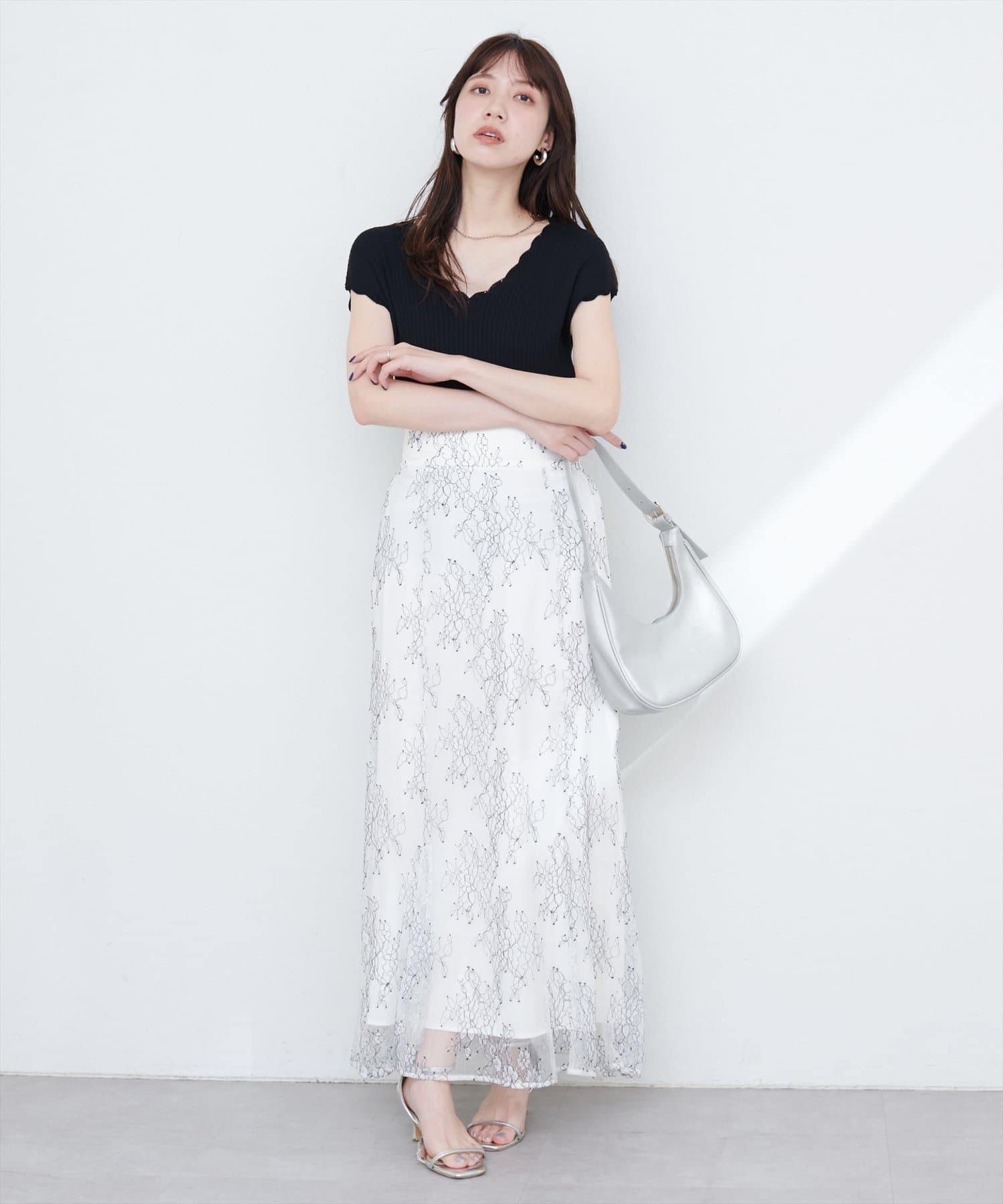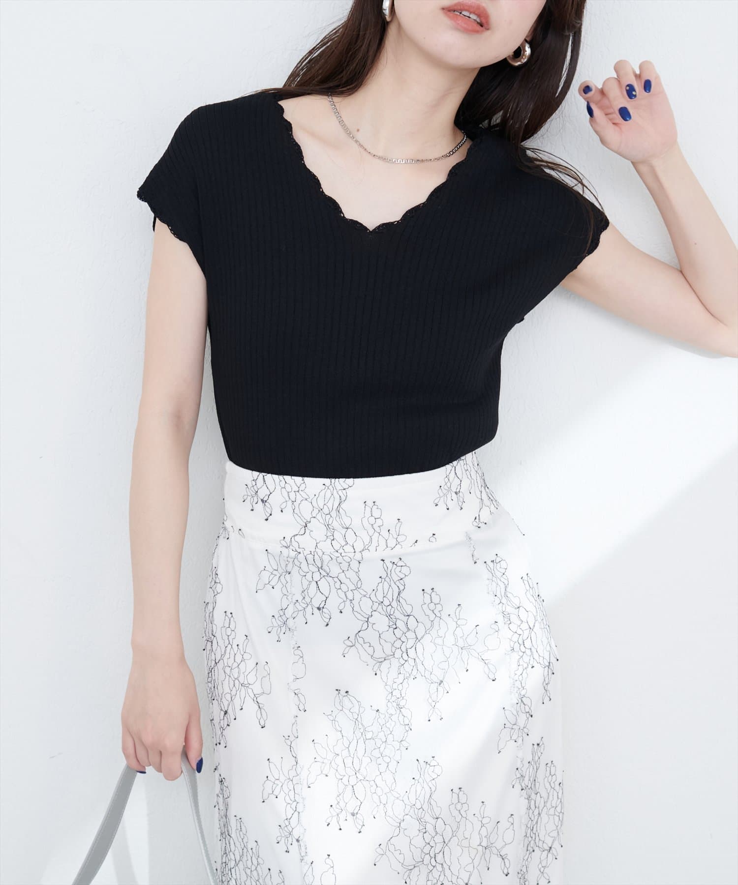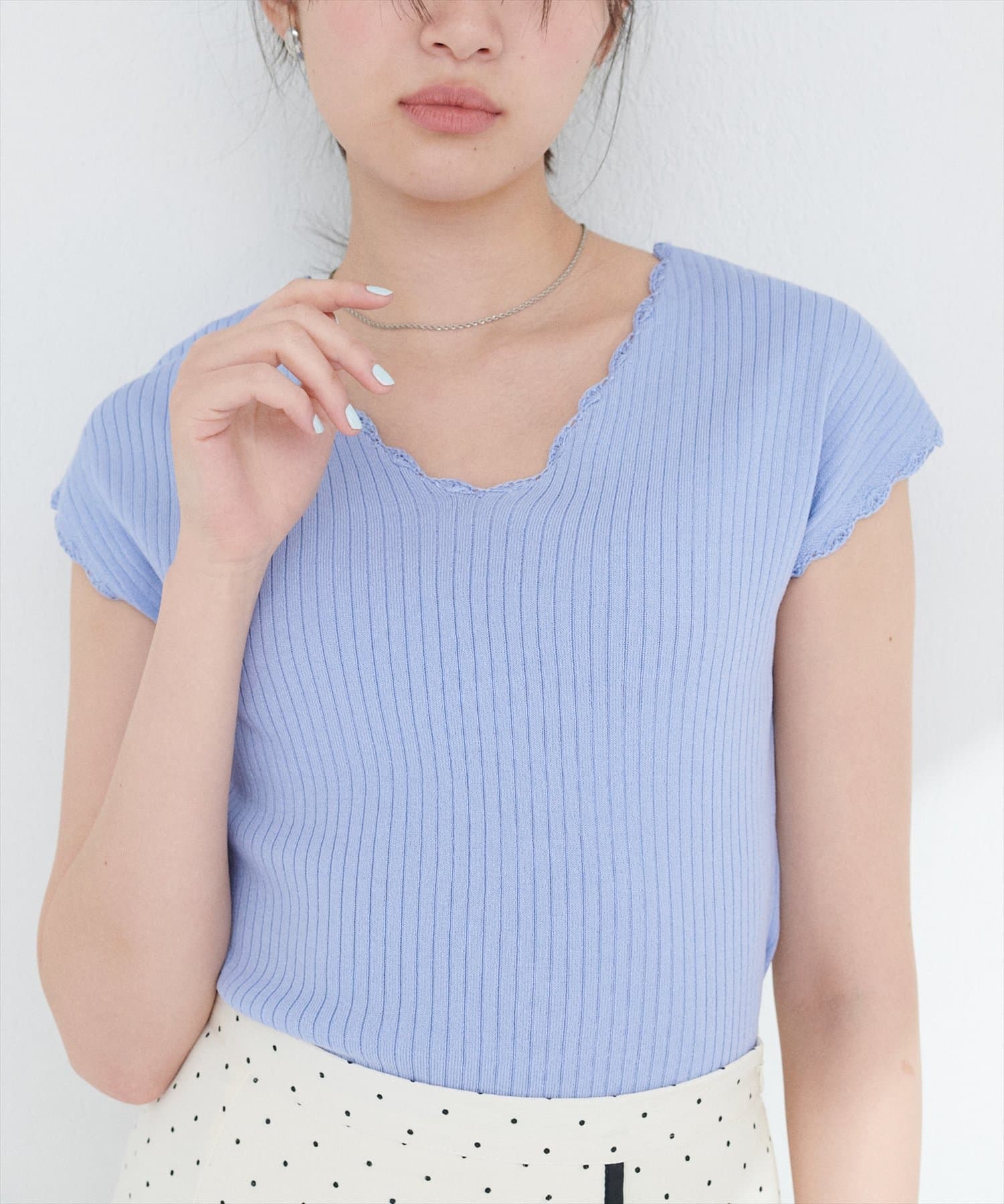 フェミニンなスカラップネックが首元を華やかに演出し、女性らしさをプラスします。