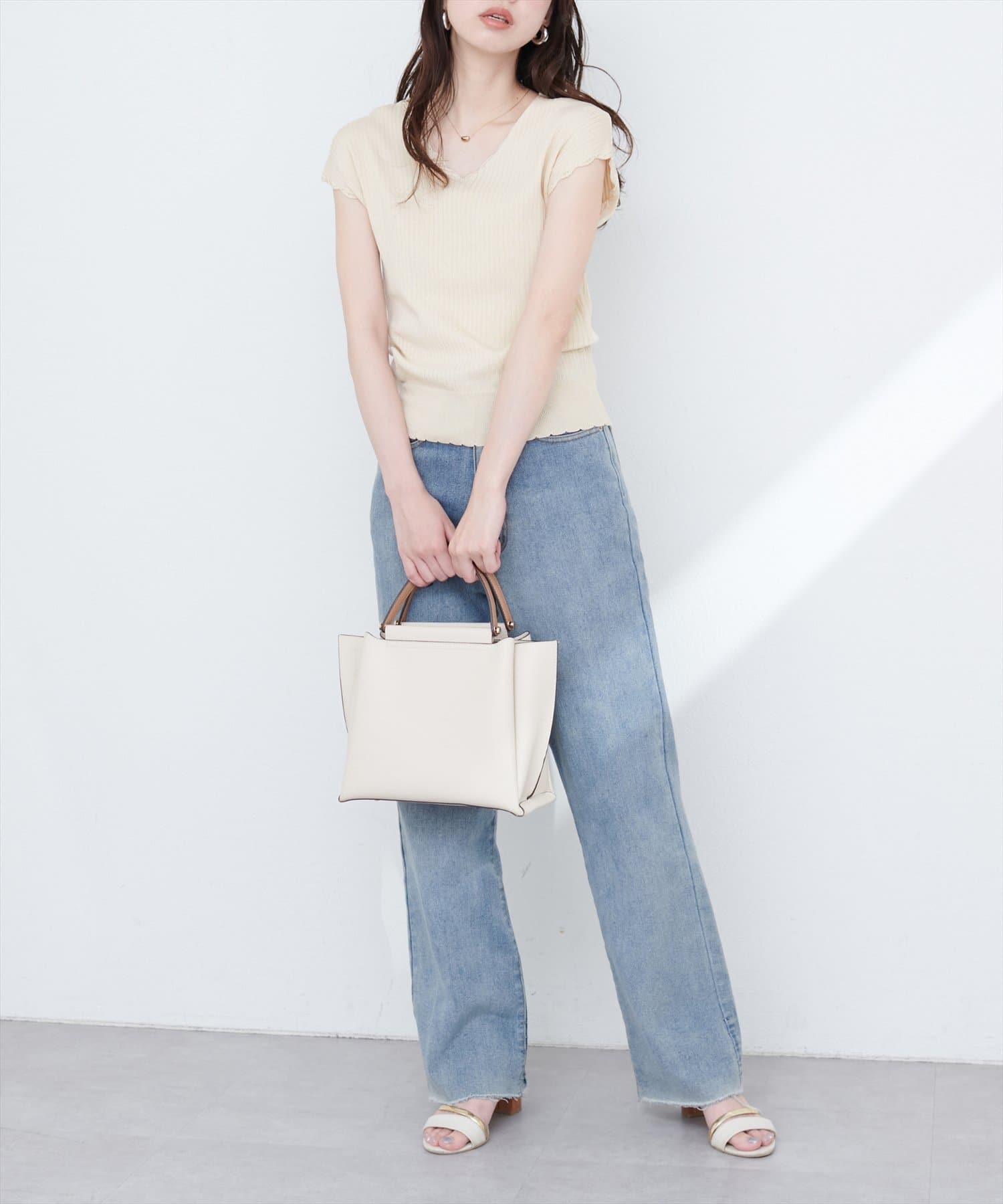 ワイドパンツなどゆったりとしたボトムスを合わせるとメリハリのあるスタイリングに着こなせます。