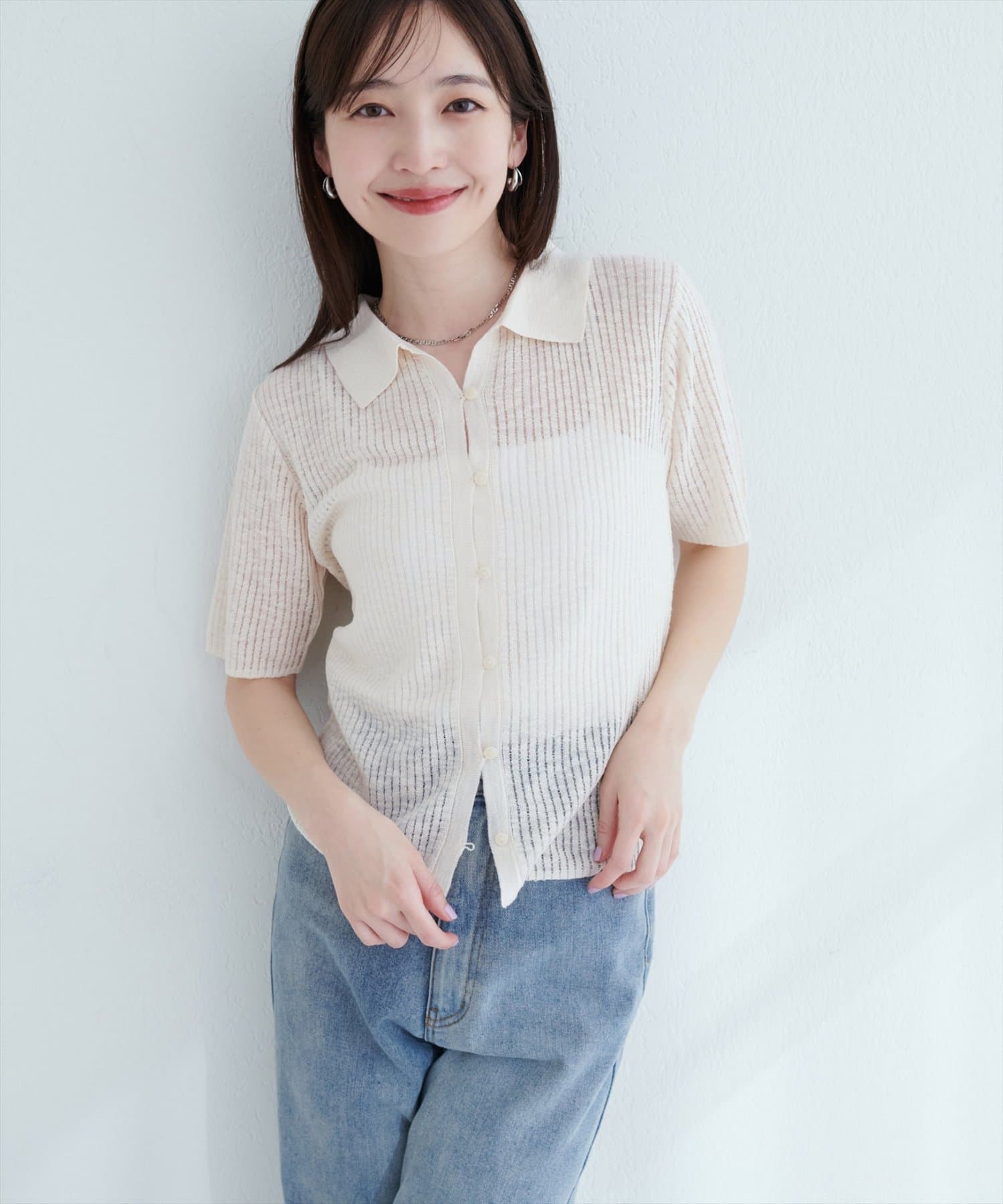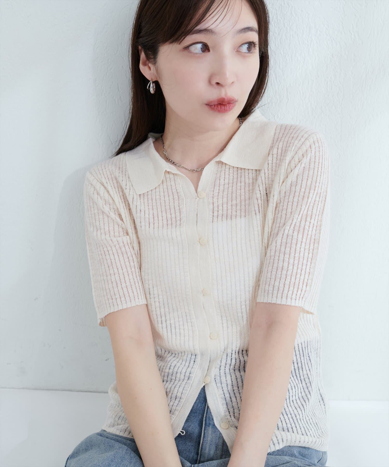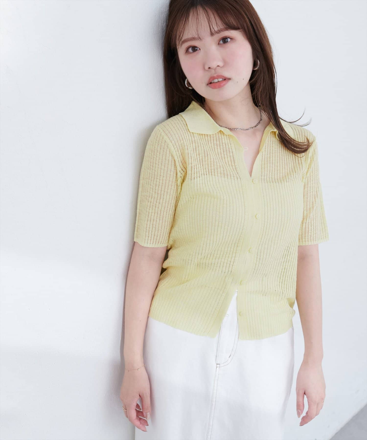 春夏のワードローブに、軽やかな彩りを添えるシアーリブニットカーディガン。