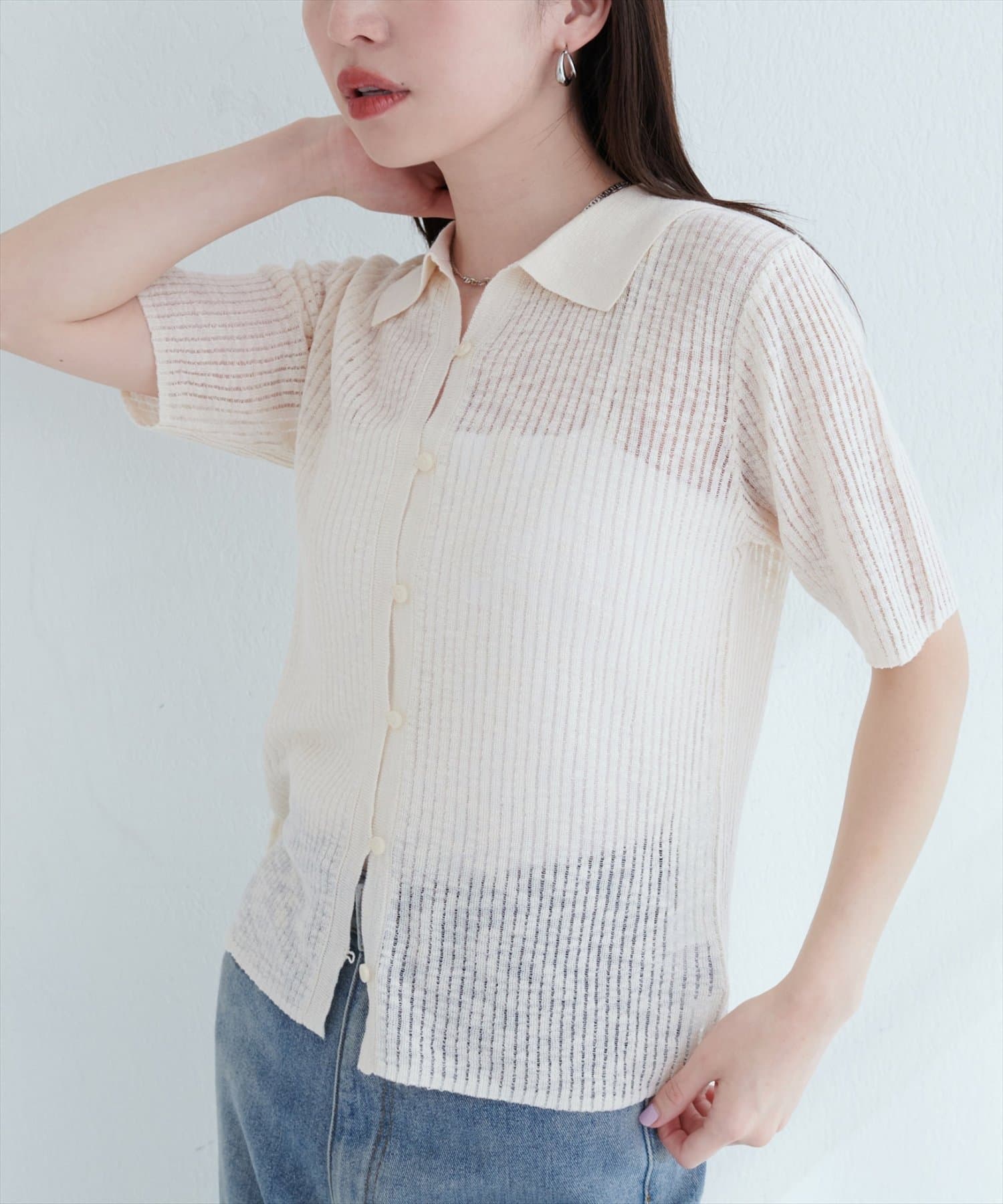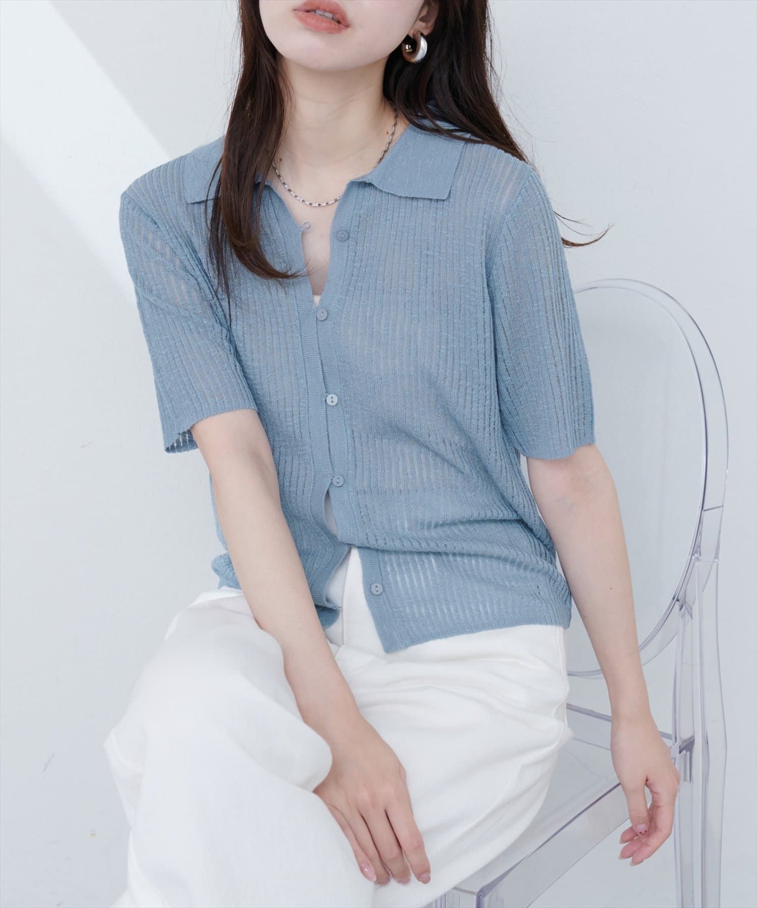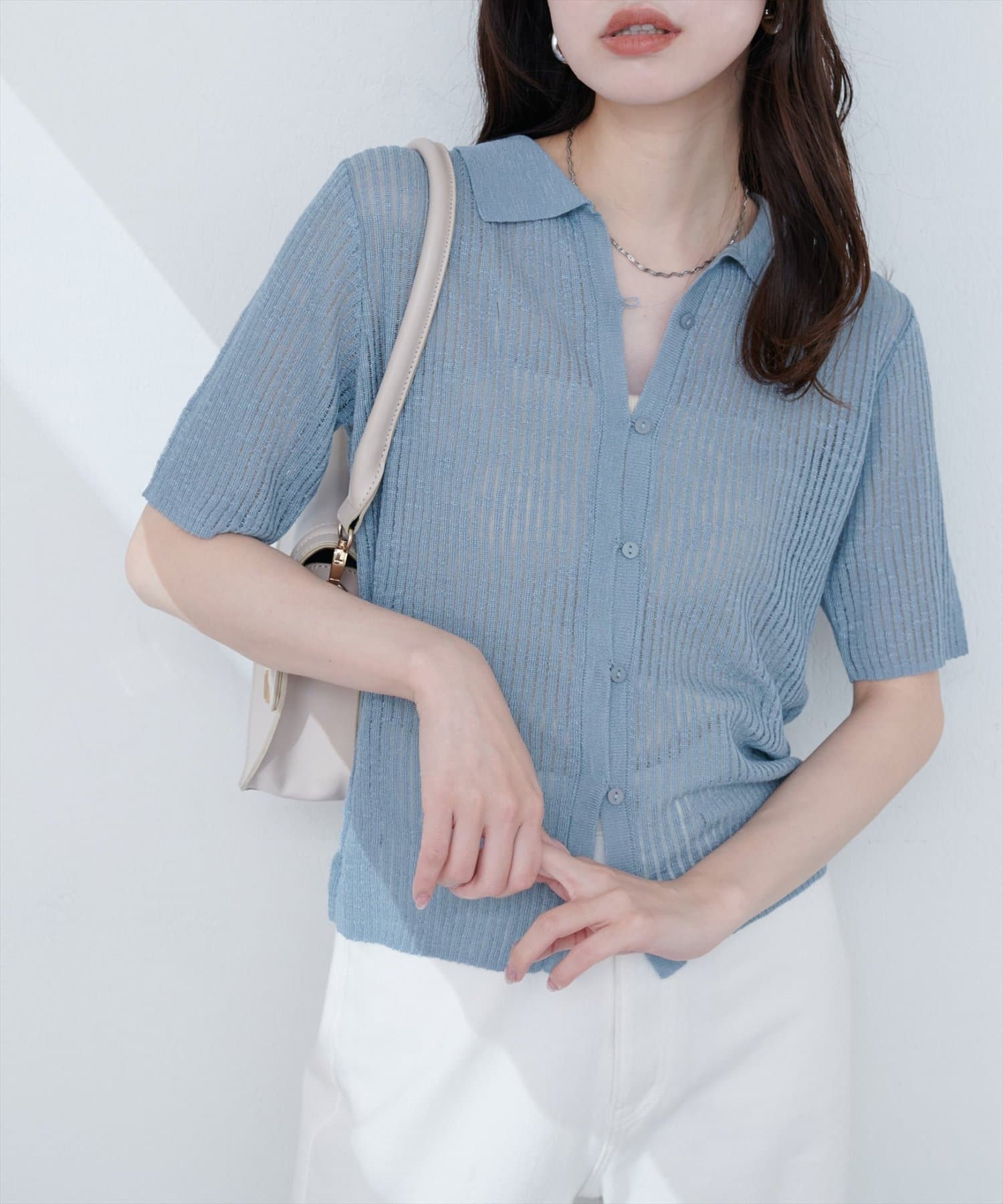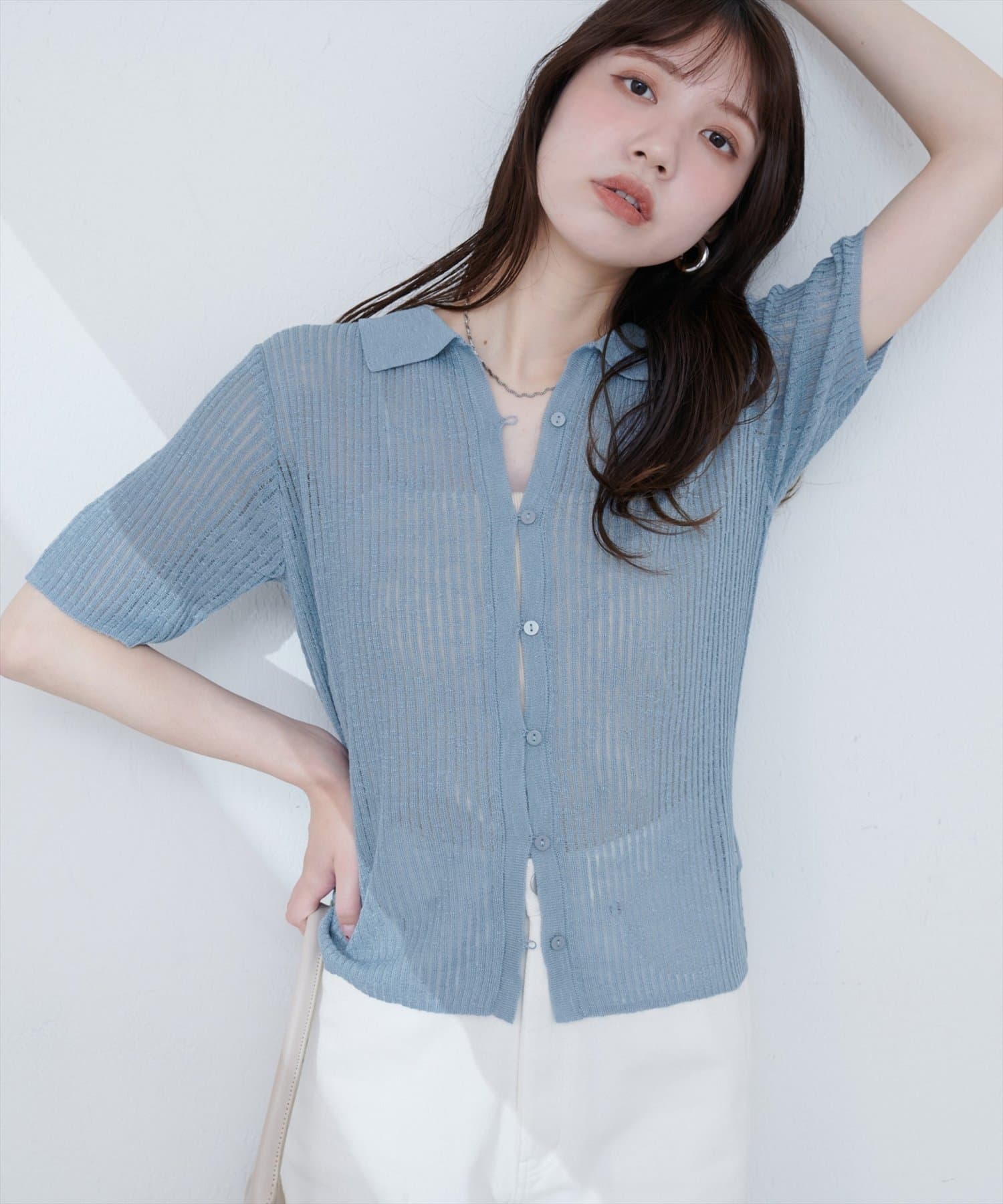 春夏のワードローブに、軽やかな彩りを添えるシアーリブニットカーディガン。