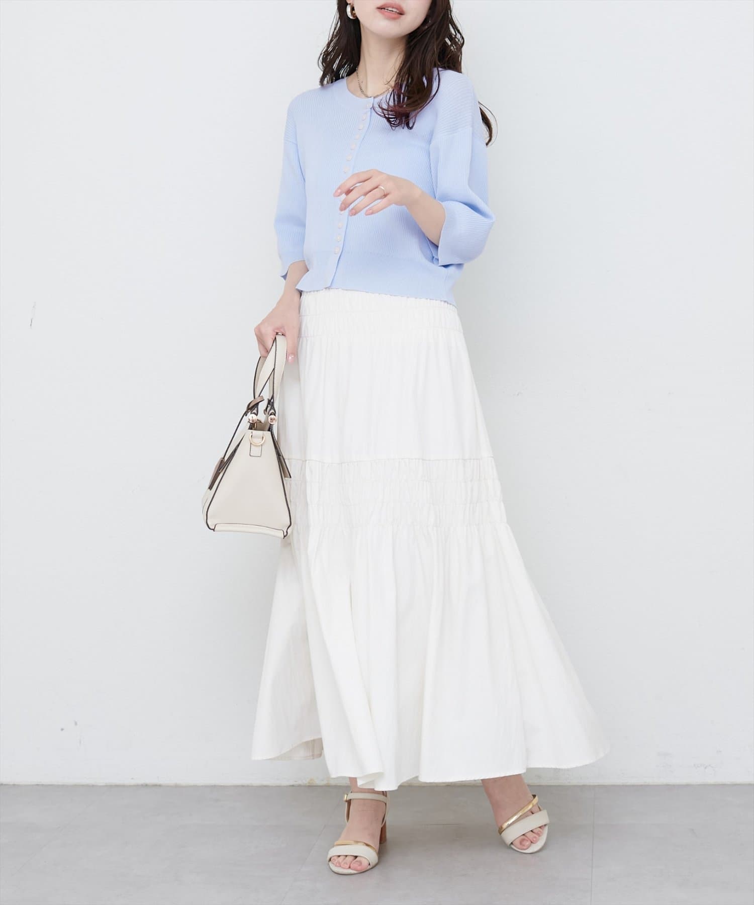 スタイルアップ効果を叶え、ワンピースやスカート、パンツなど、どんなボトムスとも相性抜群です。