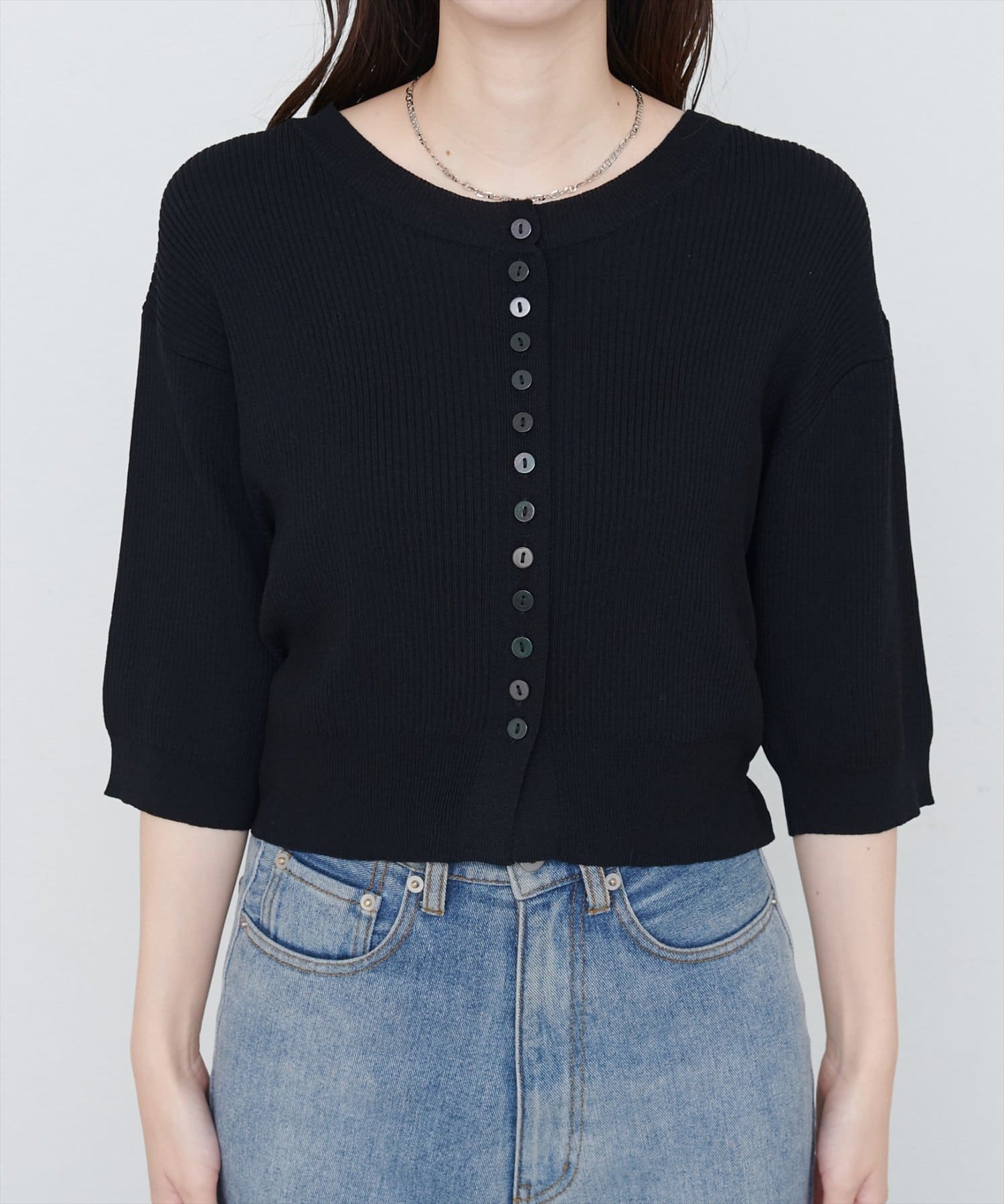 多釦片畦編みカーデ