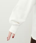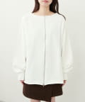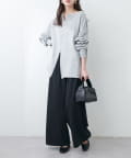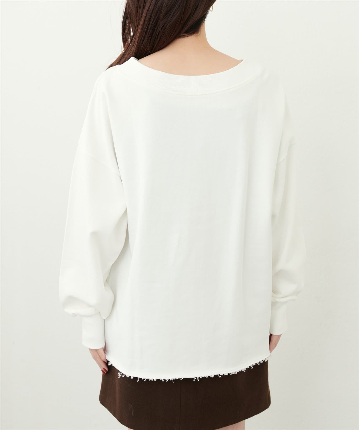 ボートネックの襟ぐりは太めのリブでやわらかな印象をプラス。