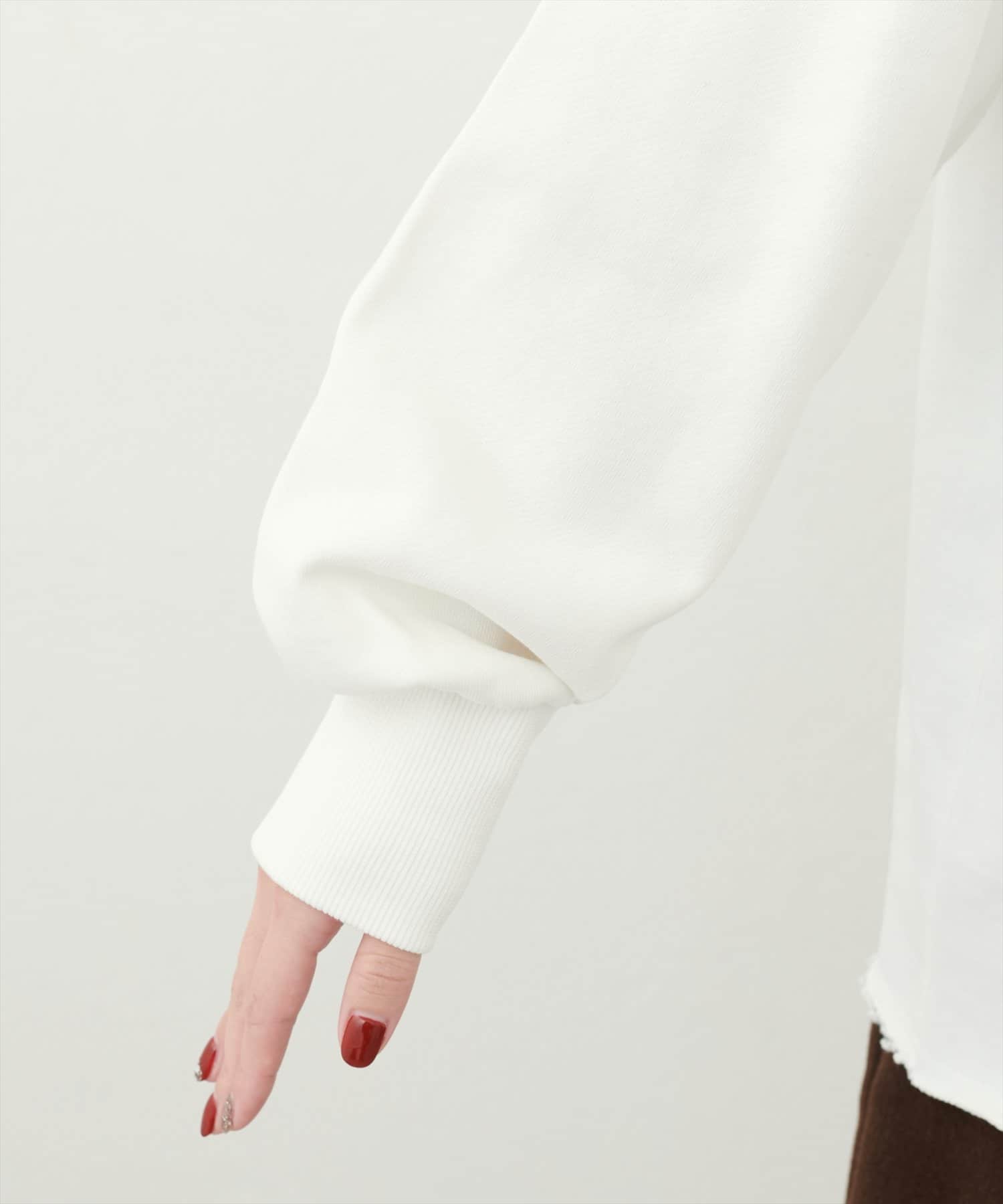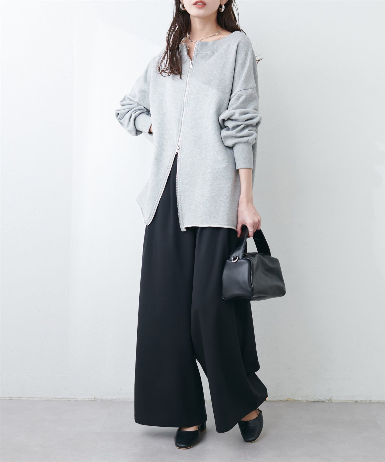 裏毛で軽やかな素材を使用し、カジュアルながらも上品な雰囲気を与えてくれるこだわりの一着。