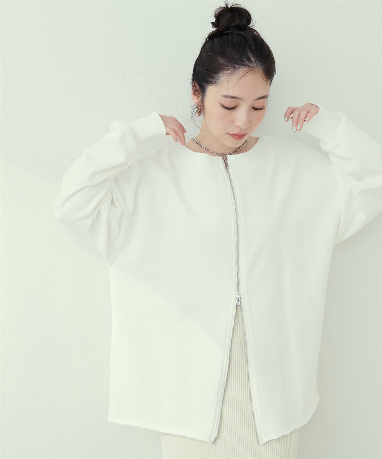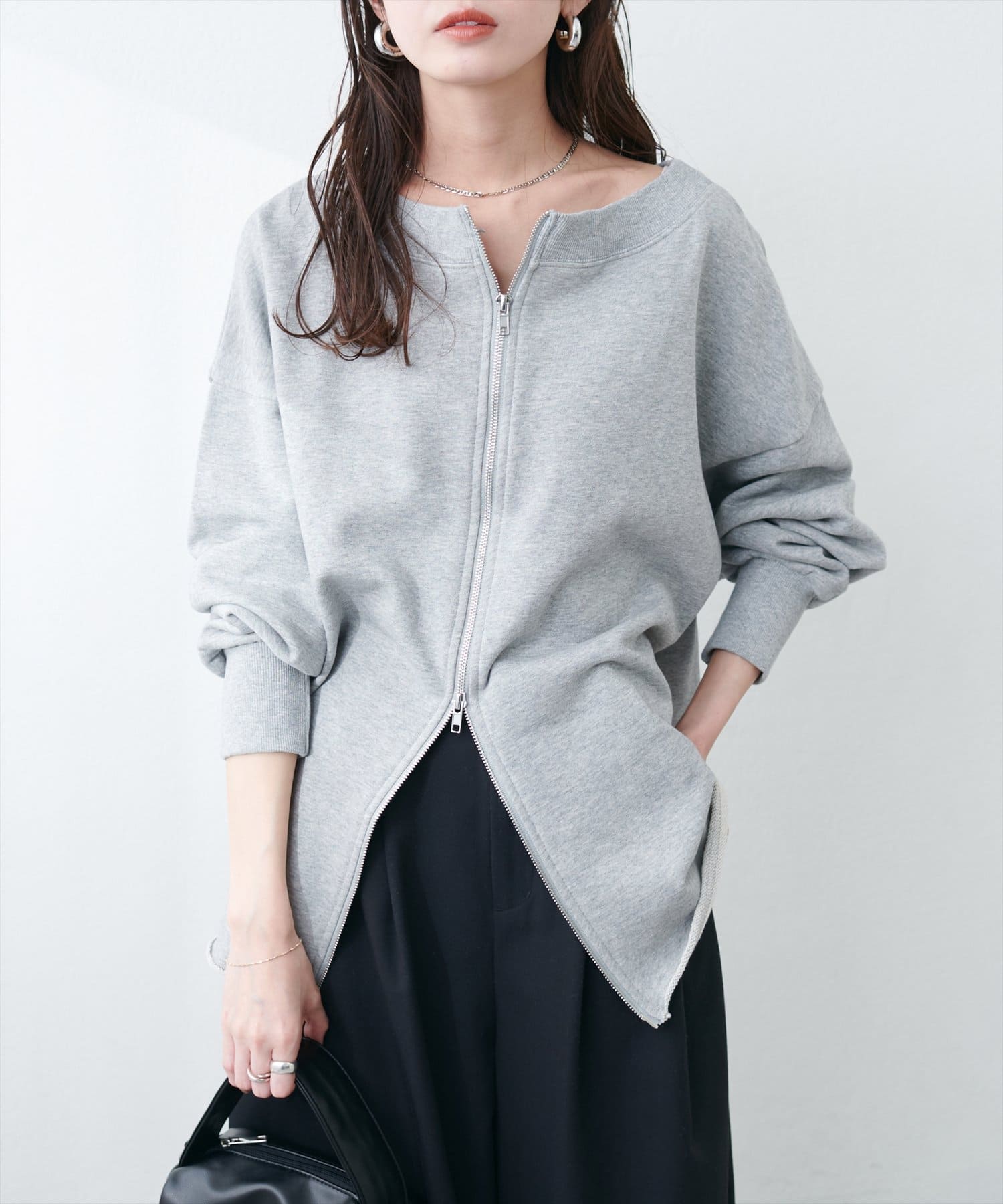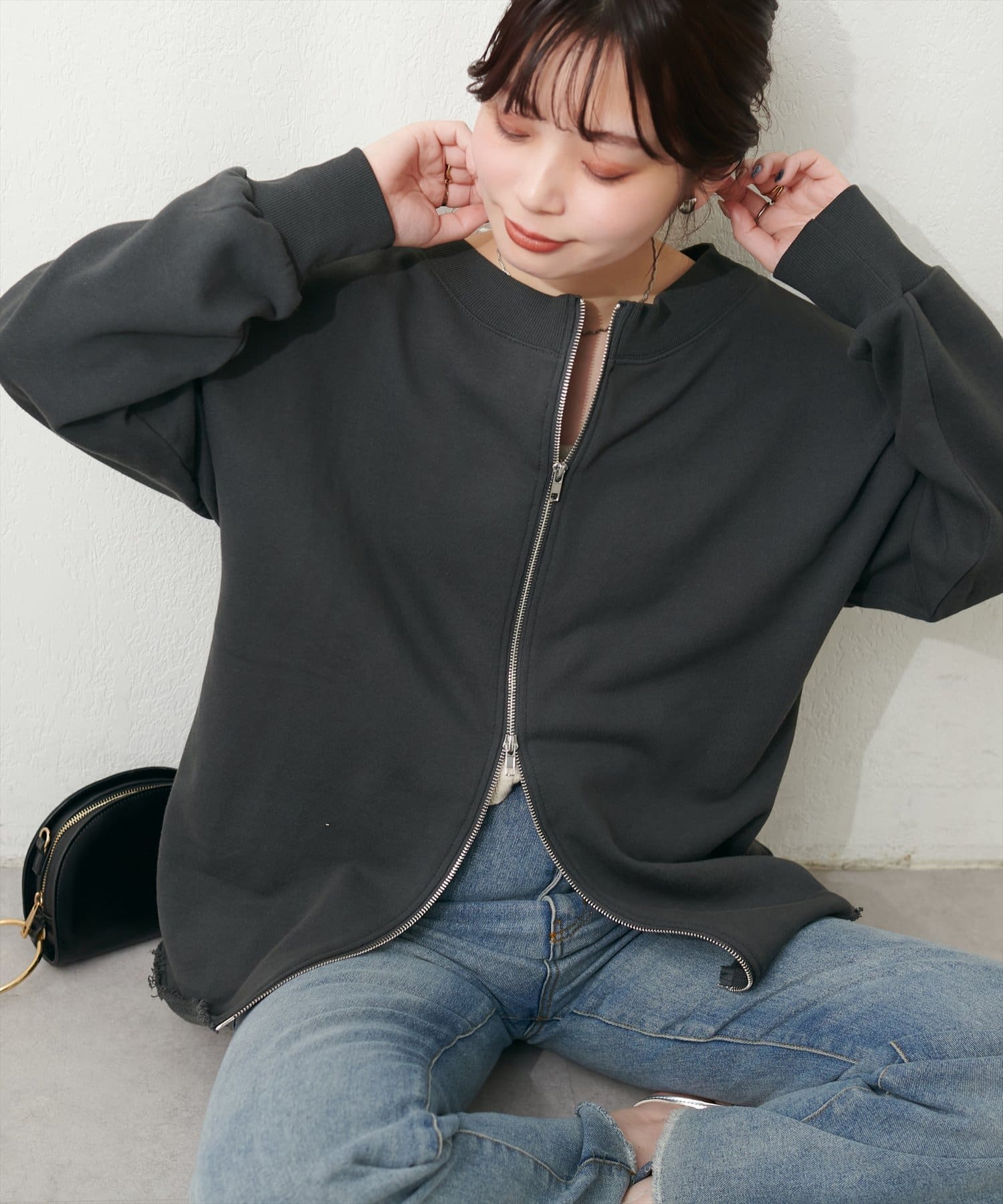 ZIPデザインでトレンド感があり、様々な着こなしができ、これからの時期のスタイリングを楽しくしてくれるアイテムです。