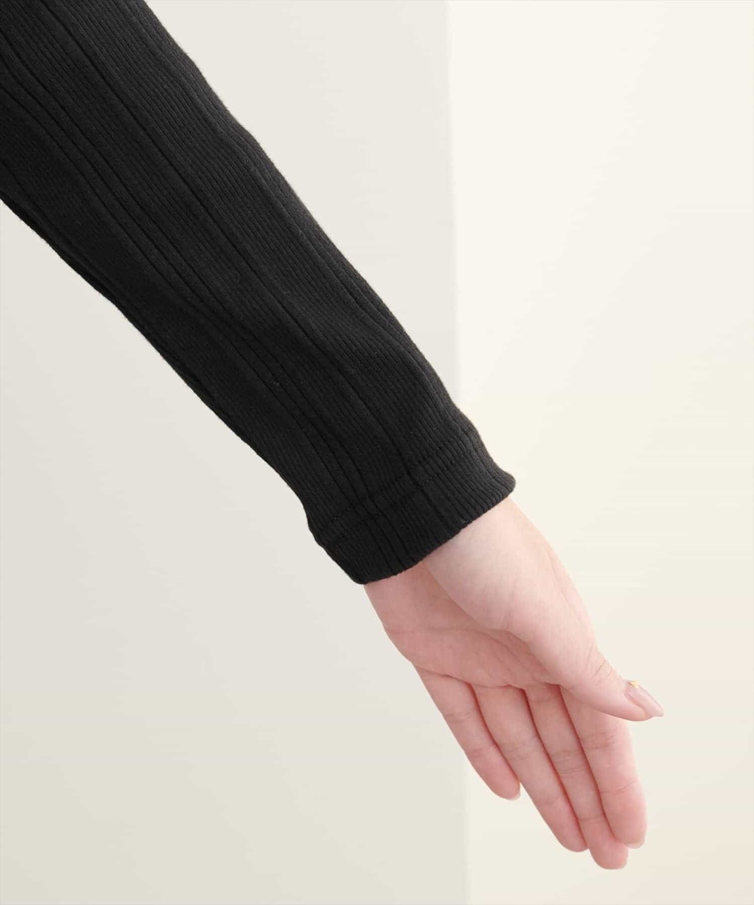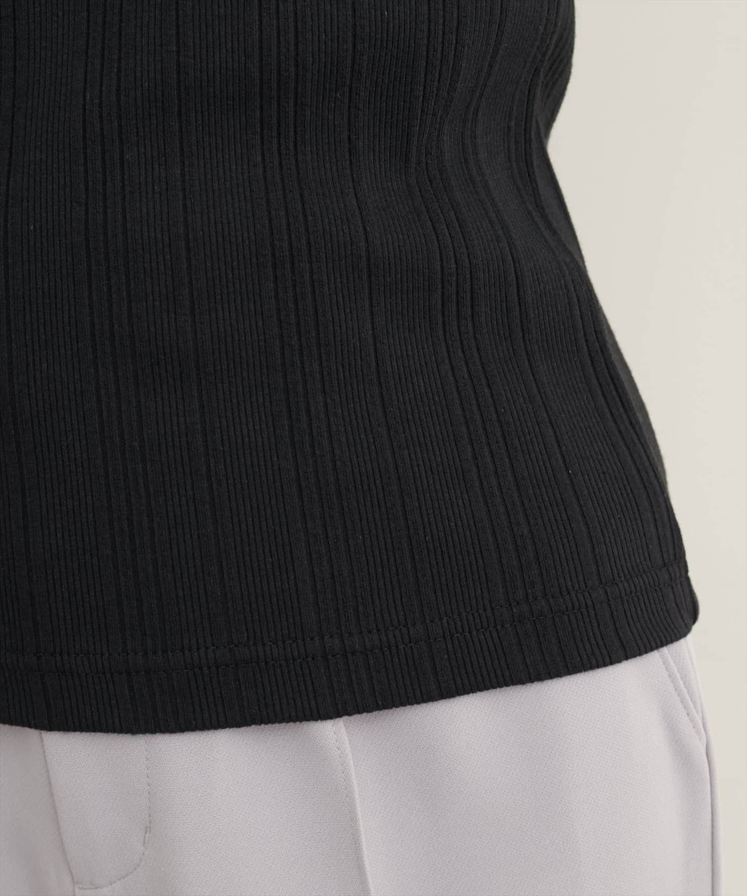 縦に凸凹の筋が入ったストライプ模様のリブカットソー。
