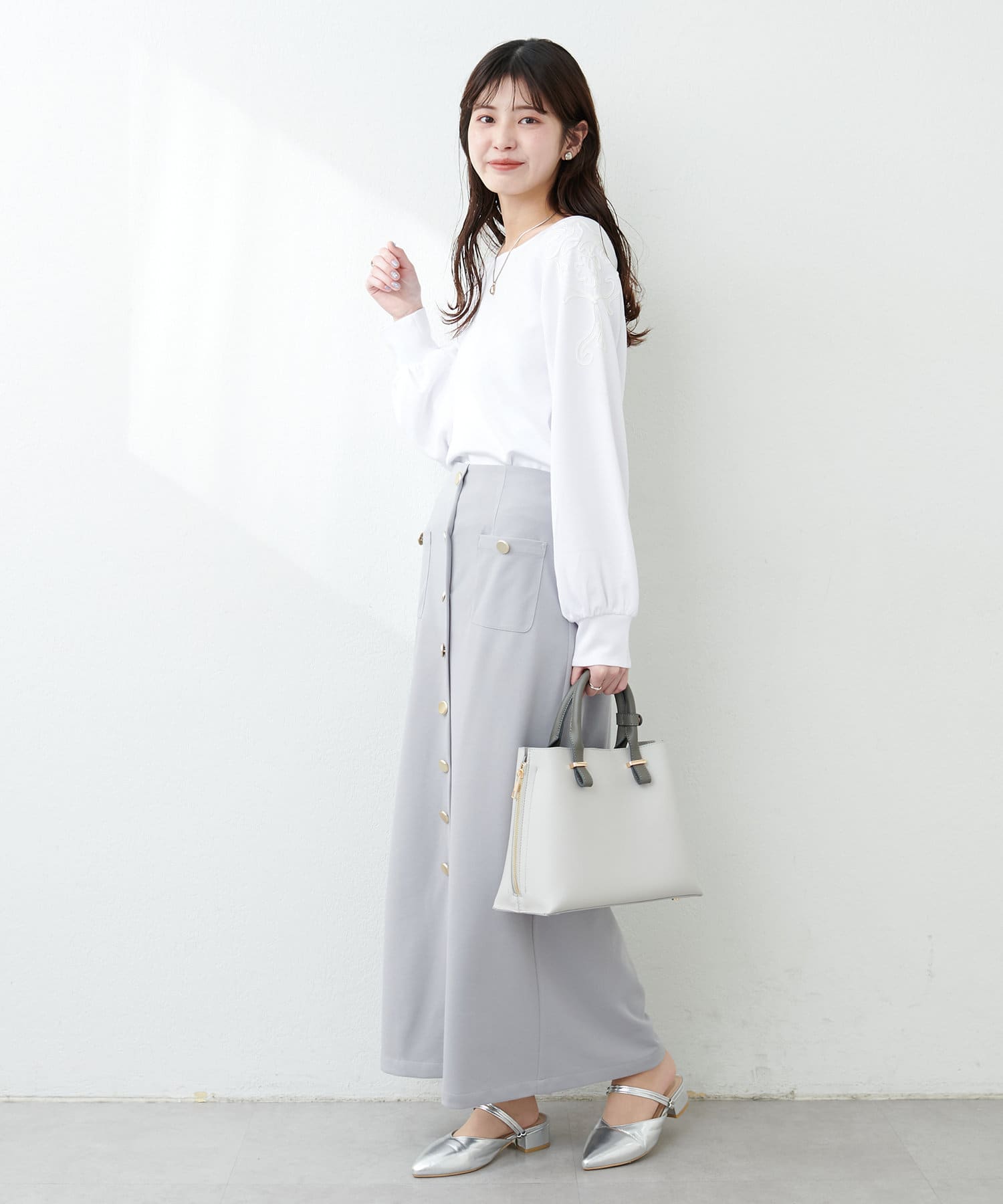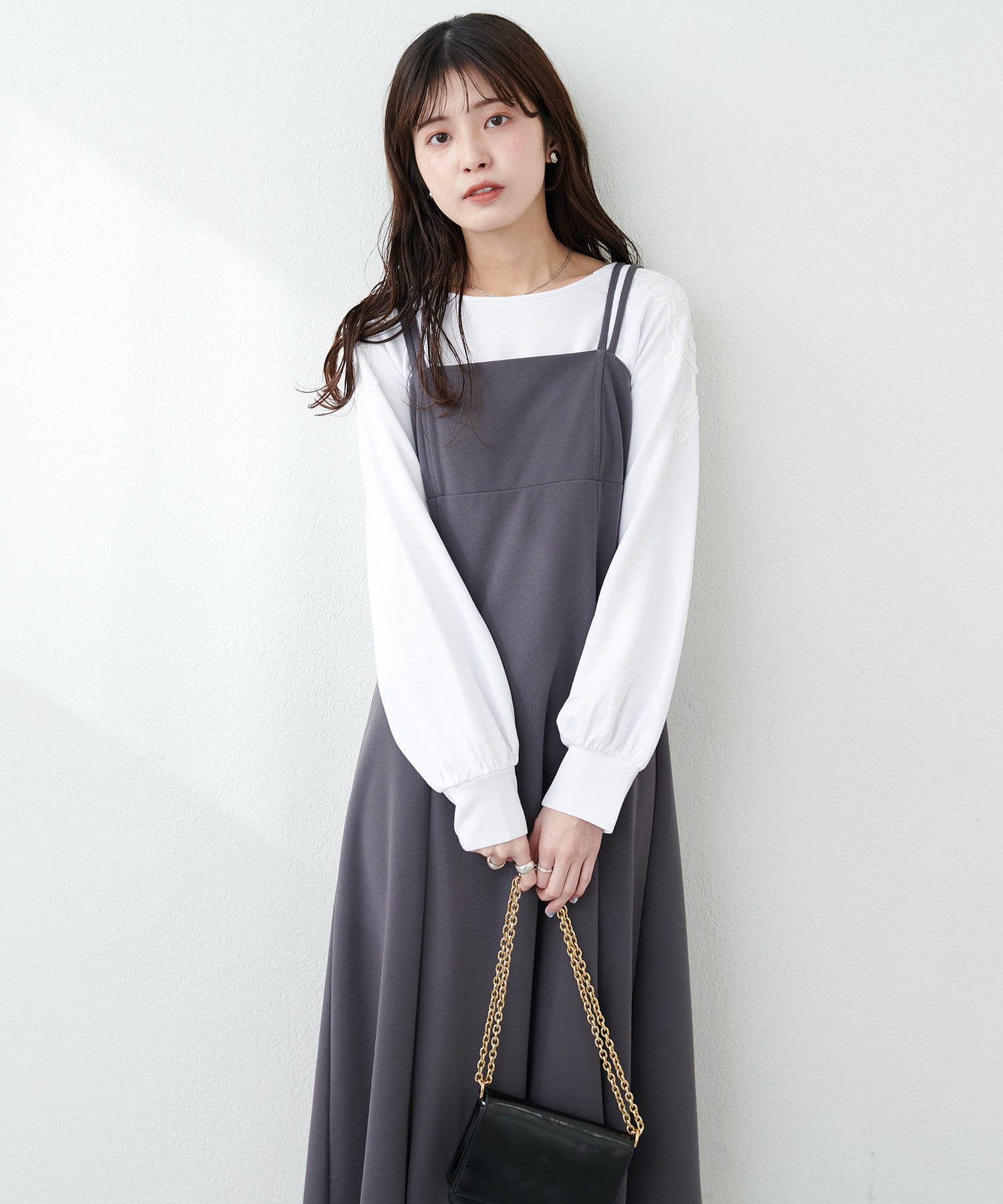 シンプルながらも肩にコード刺繍を施し、さりげない上品さが特徴のデザイン。