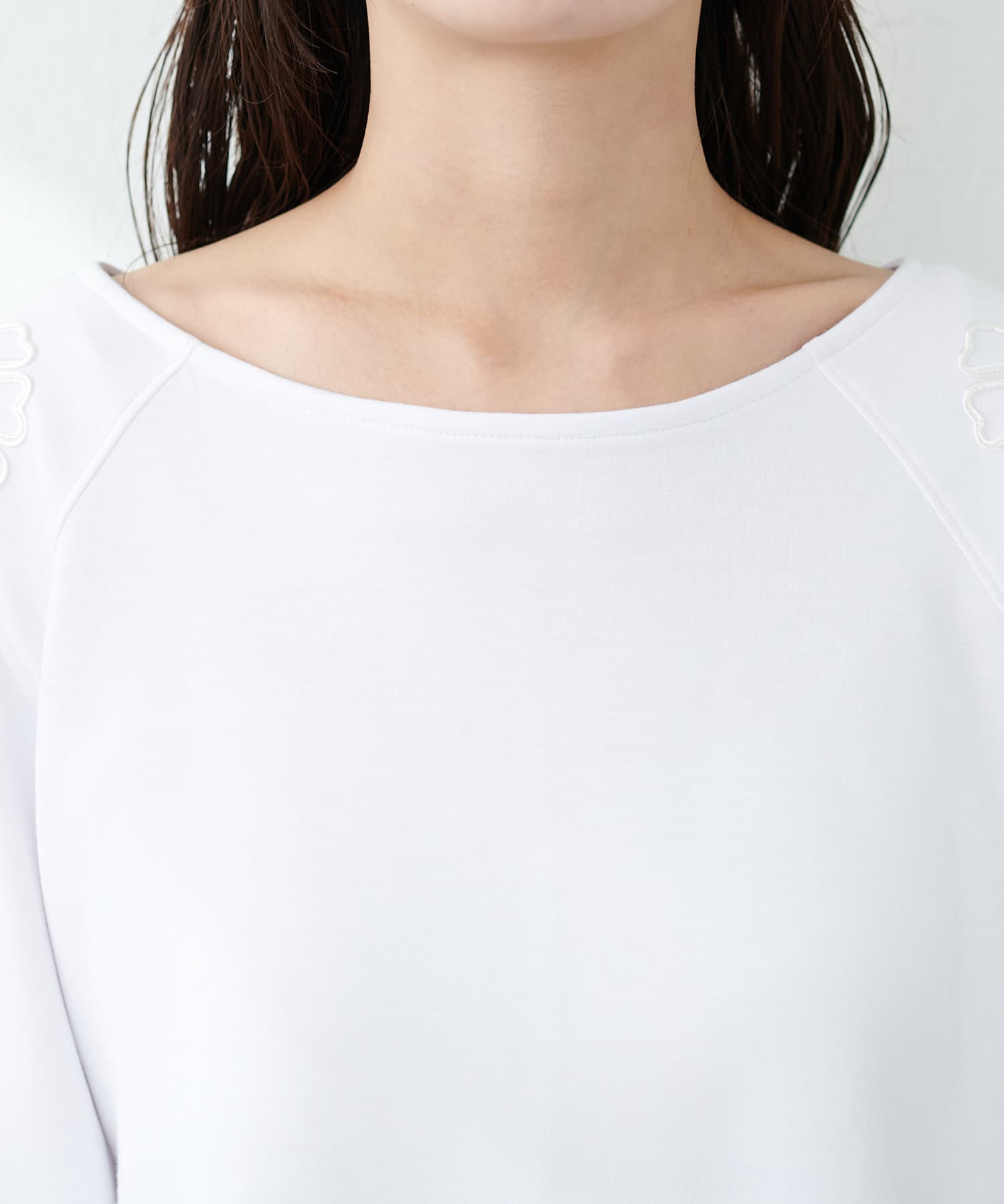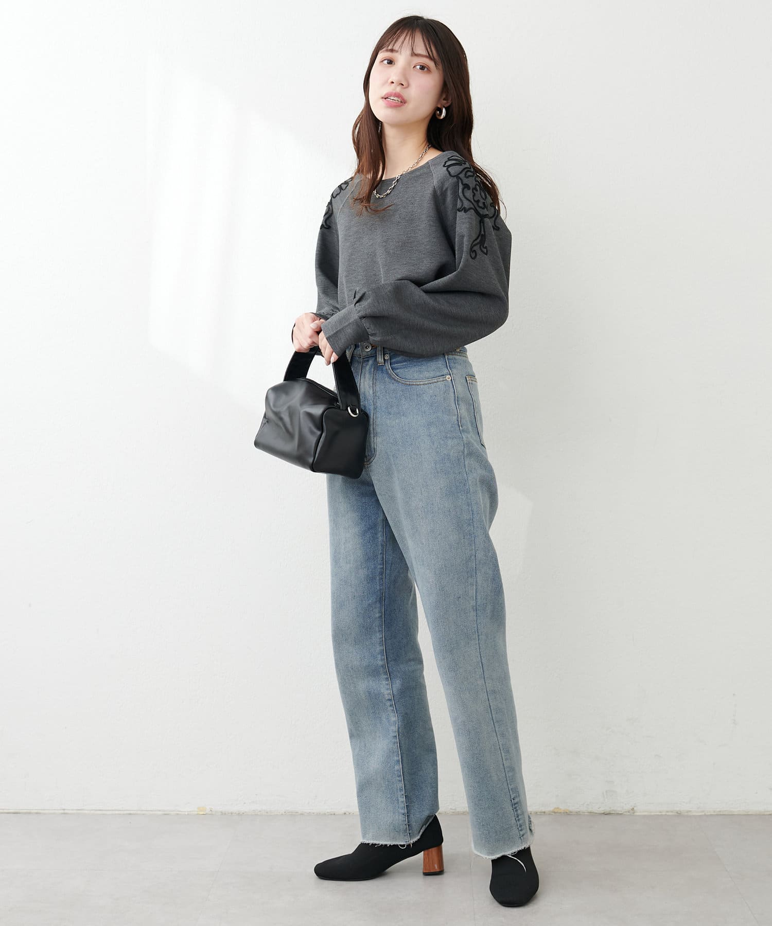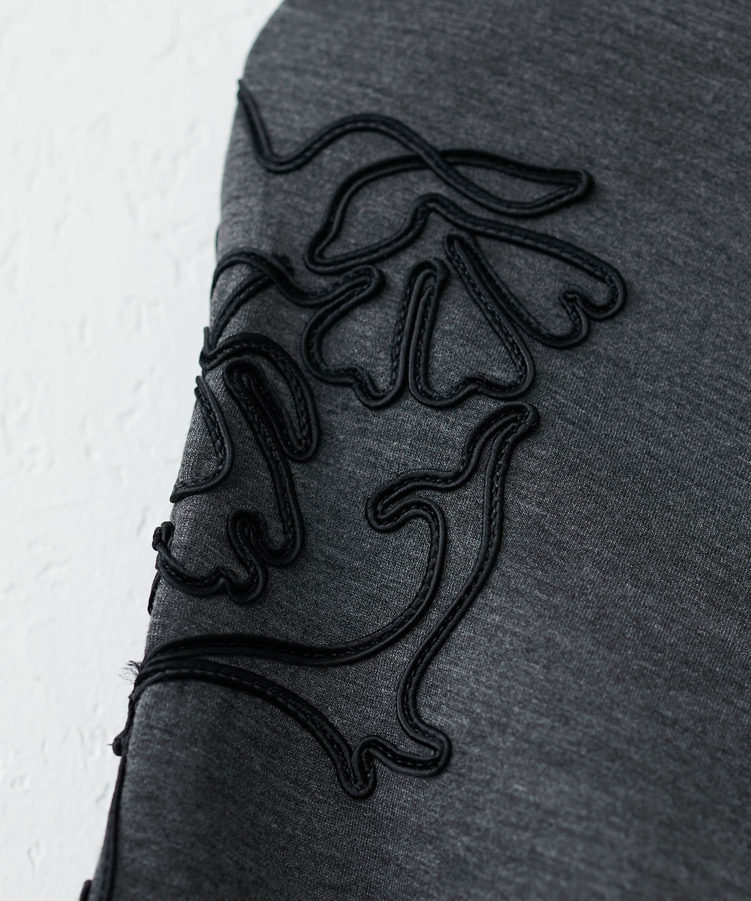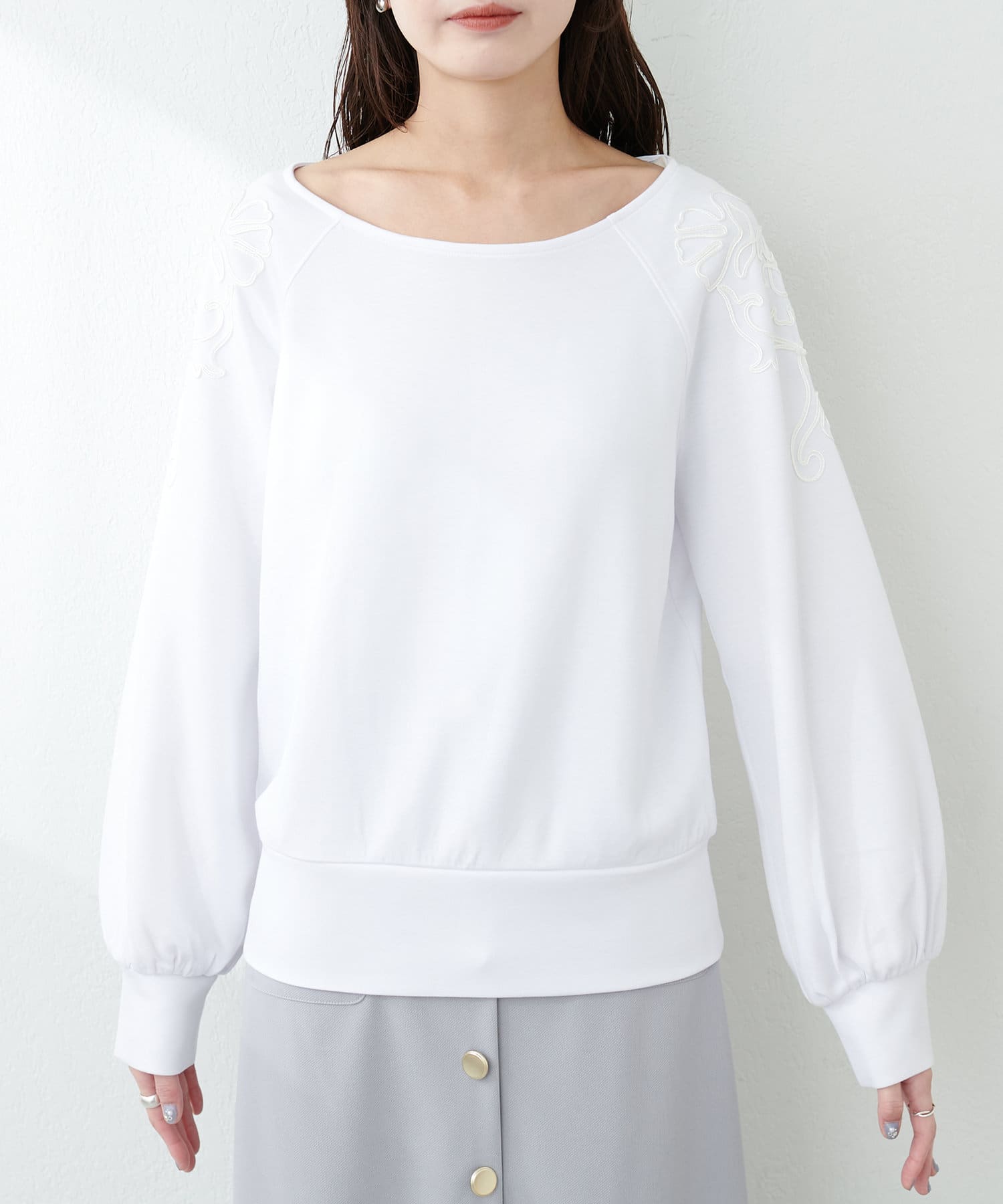 シンプルながらも肩にコード刺繍を施し、さりげない上品さが特徴のデザイン。