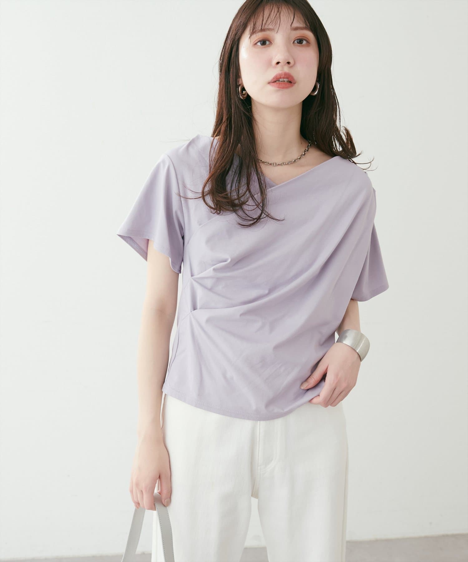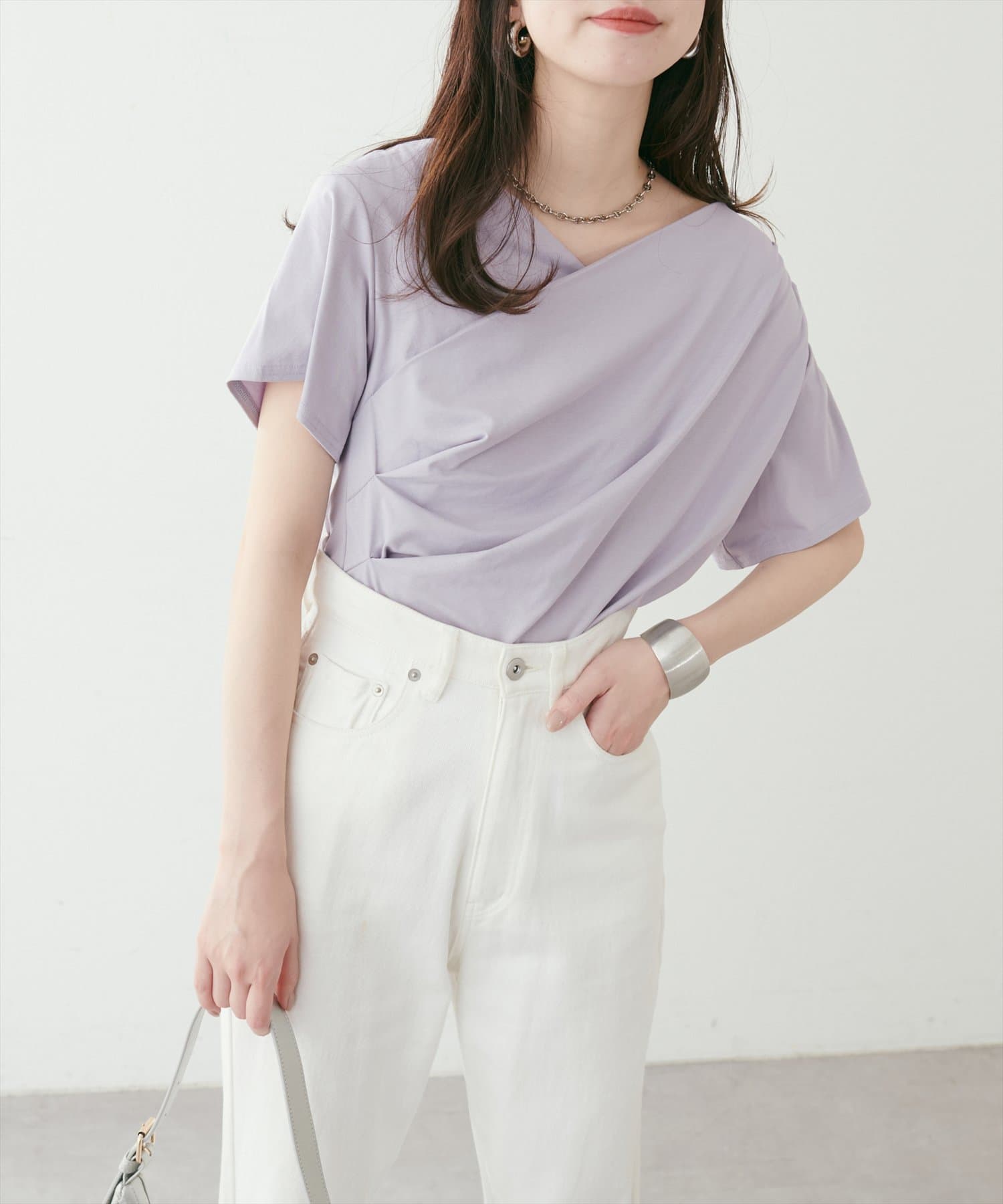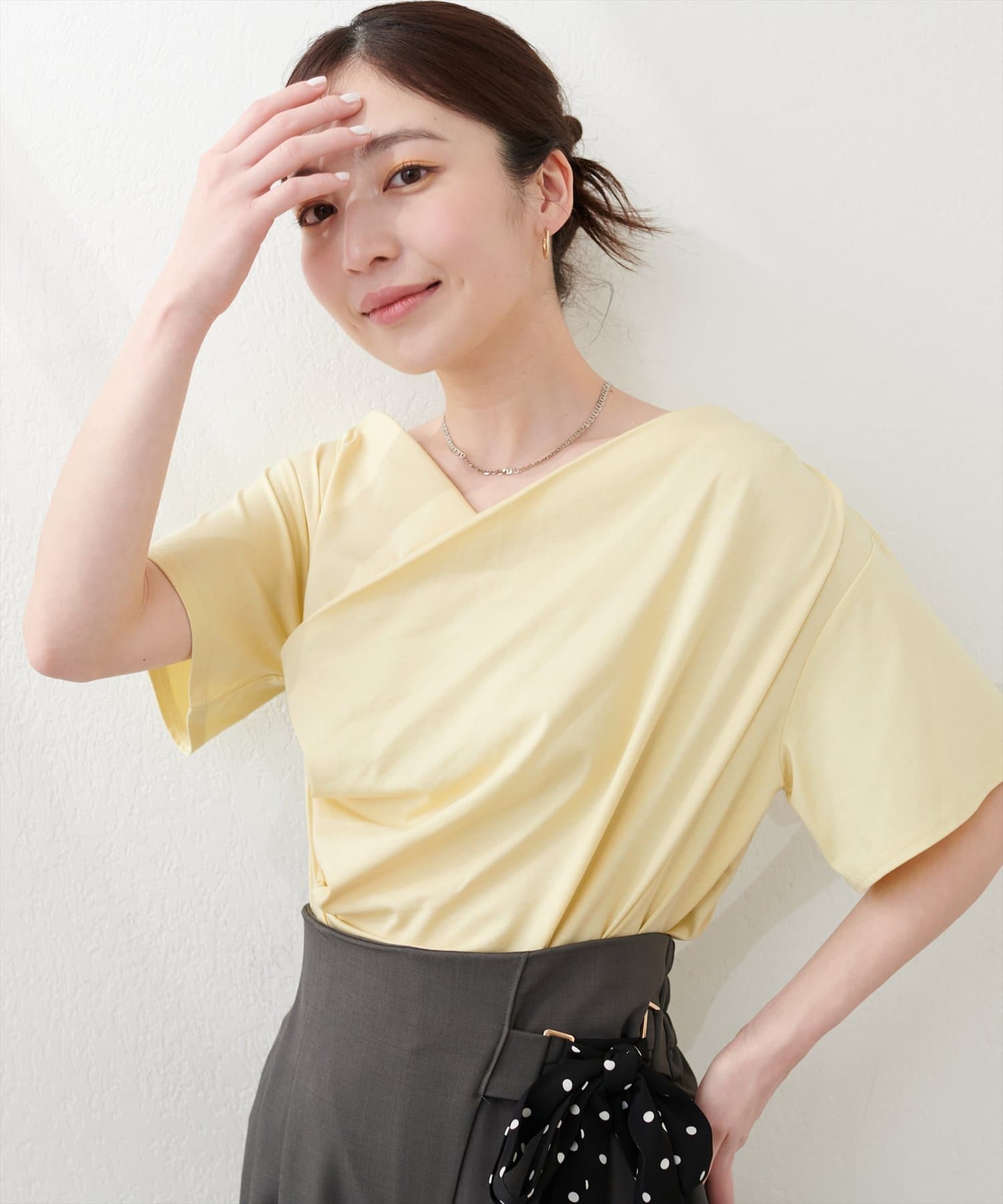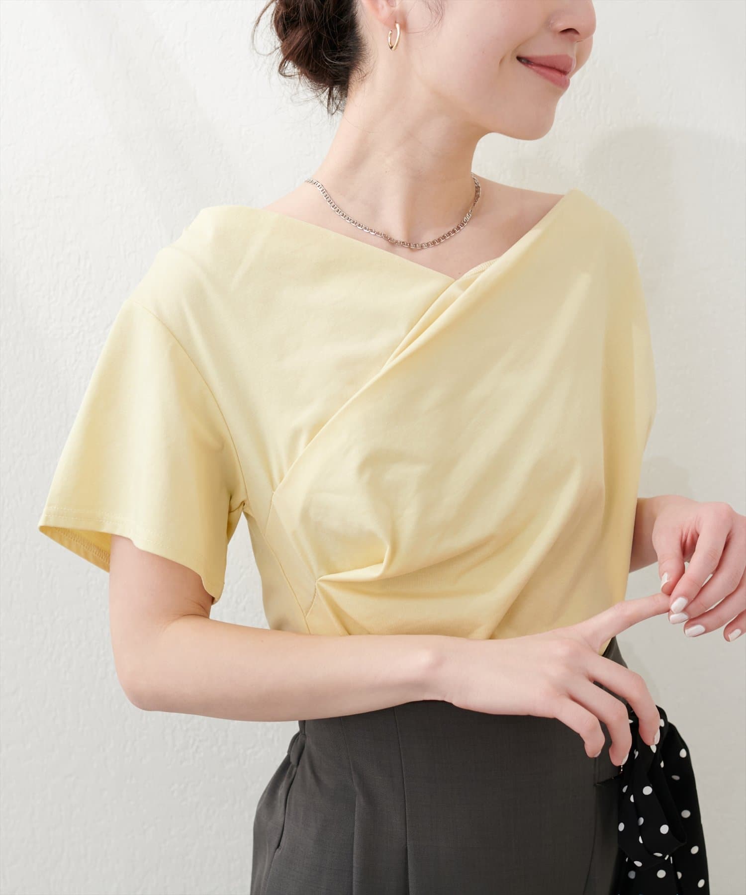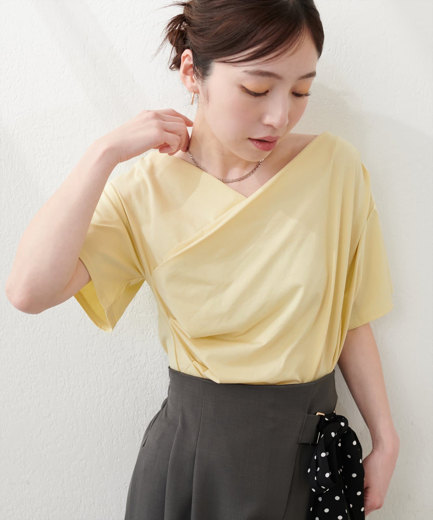 シンプルなカットソーに女性らしいドレープを施して上品に仕上げた1着。