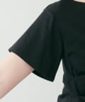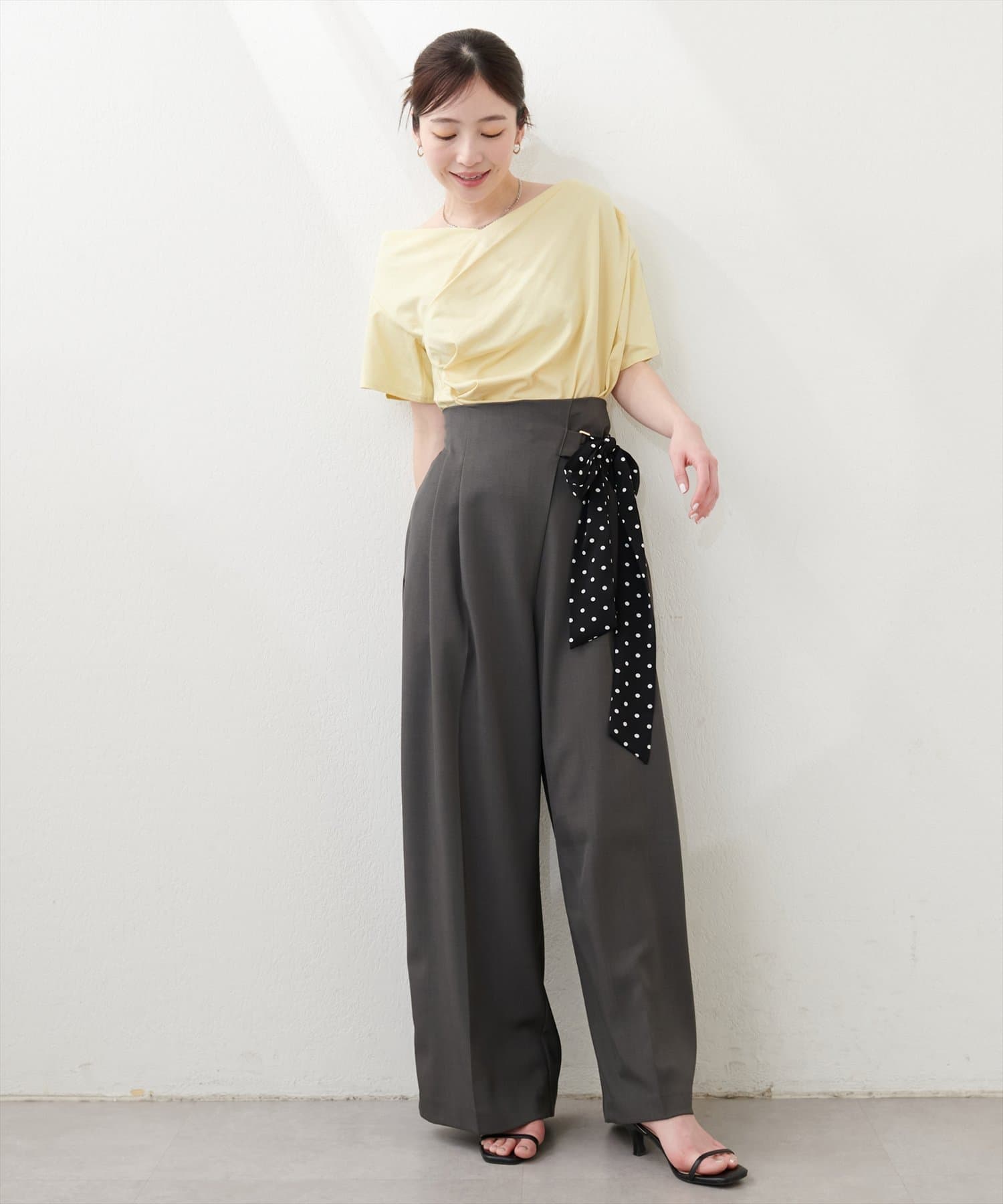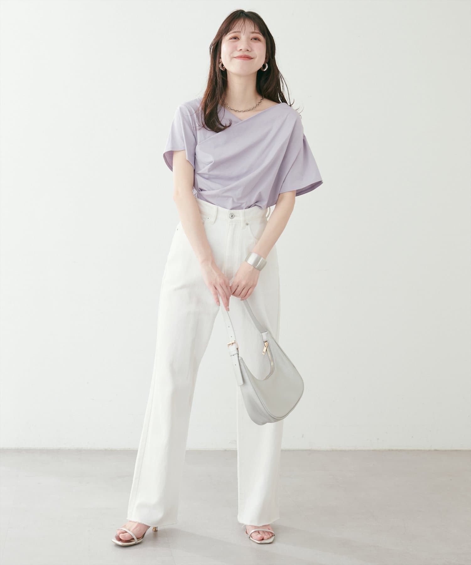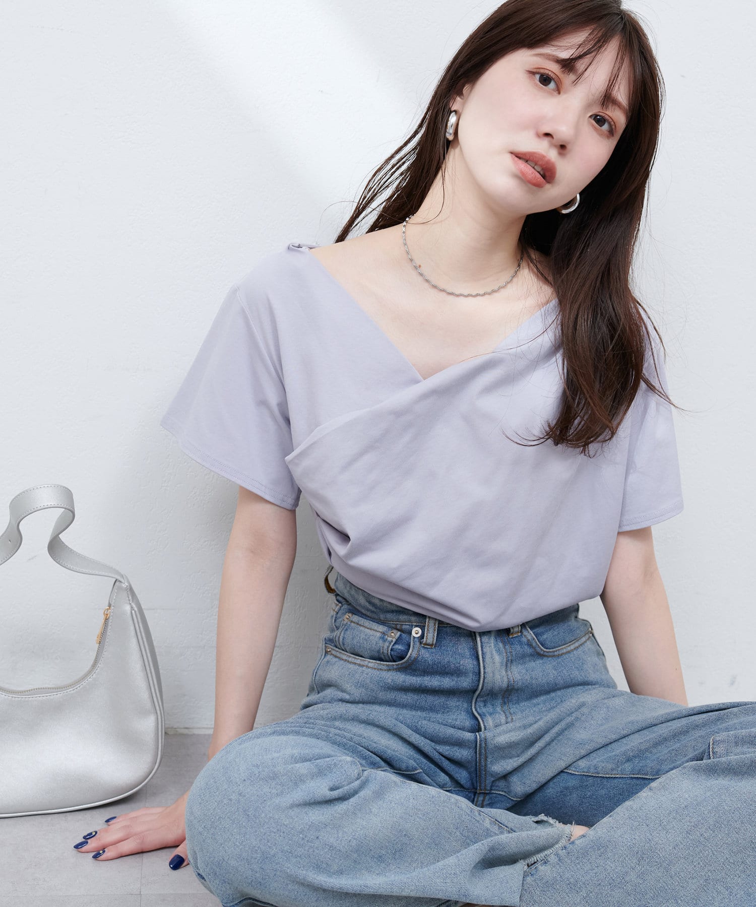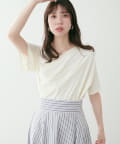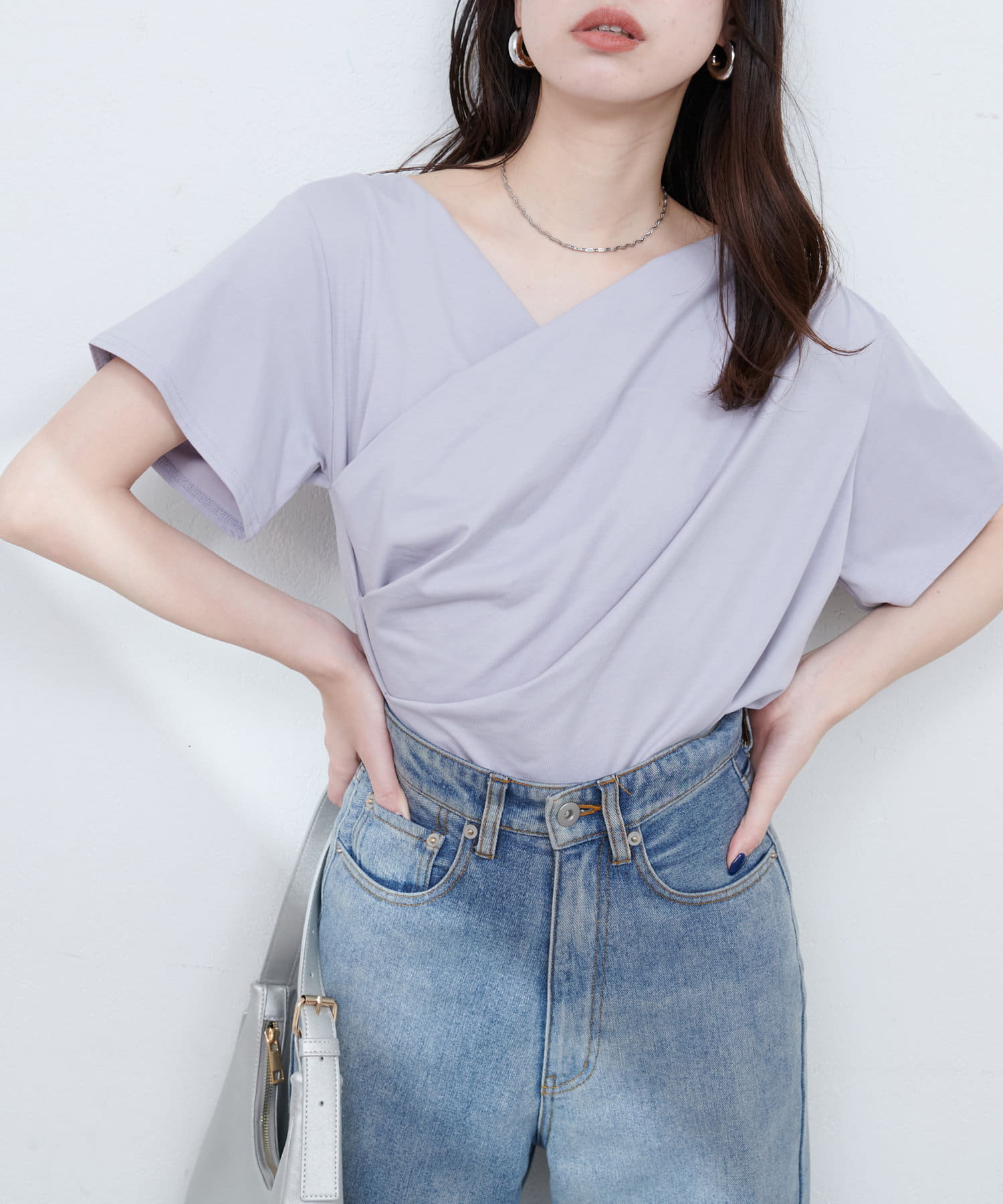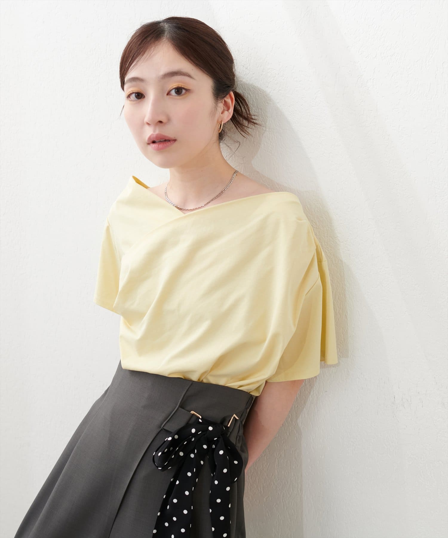 シンプルなカットソーに女性らしいドレープを施して上品に仕上げた1着。