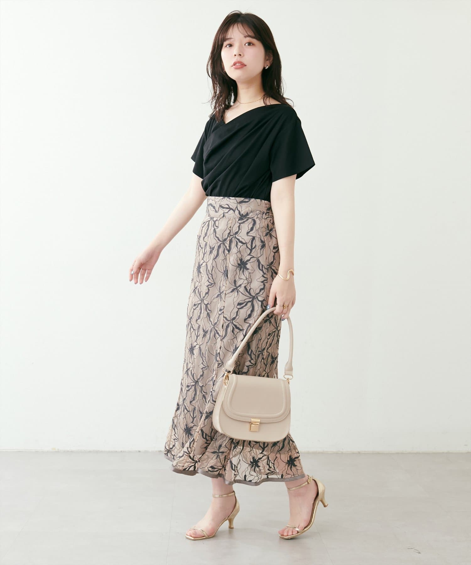 シンプルになりがちなTシャツコーデをフェミニンにアップデートしてくれる1着です。