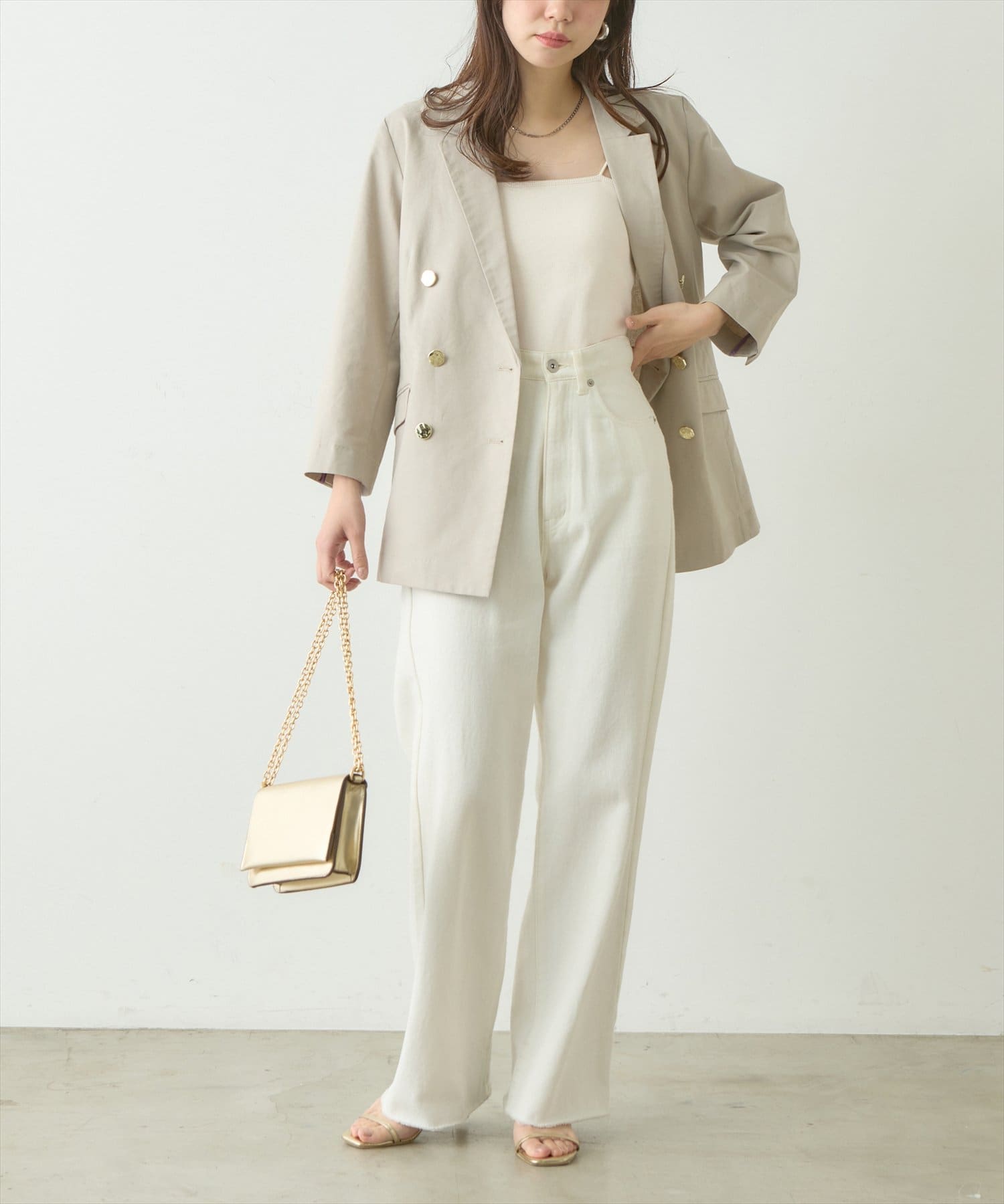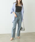 コンパクトな着丈なのであえて大きめのシャツを合わせ、ルーズかつヘルシーに着こなすのもおすすめ。