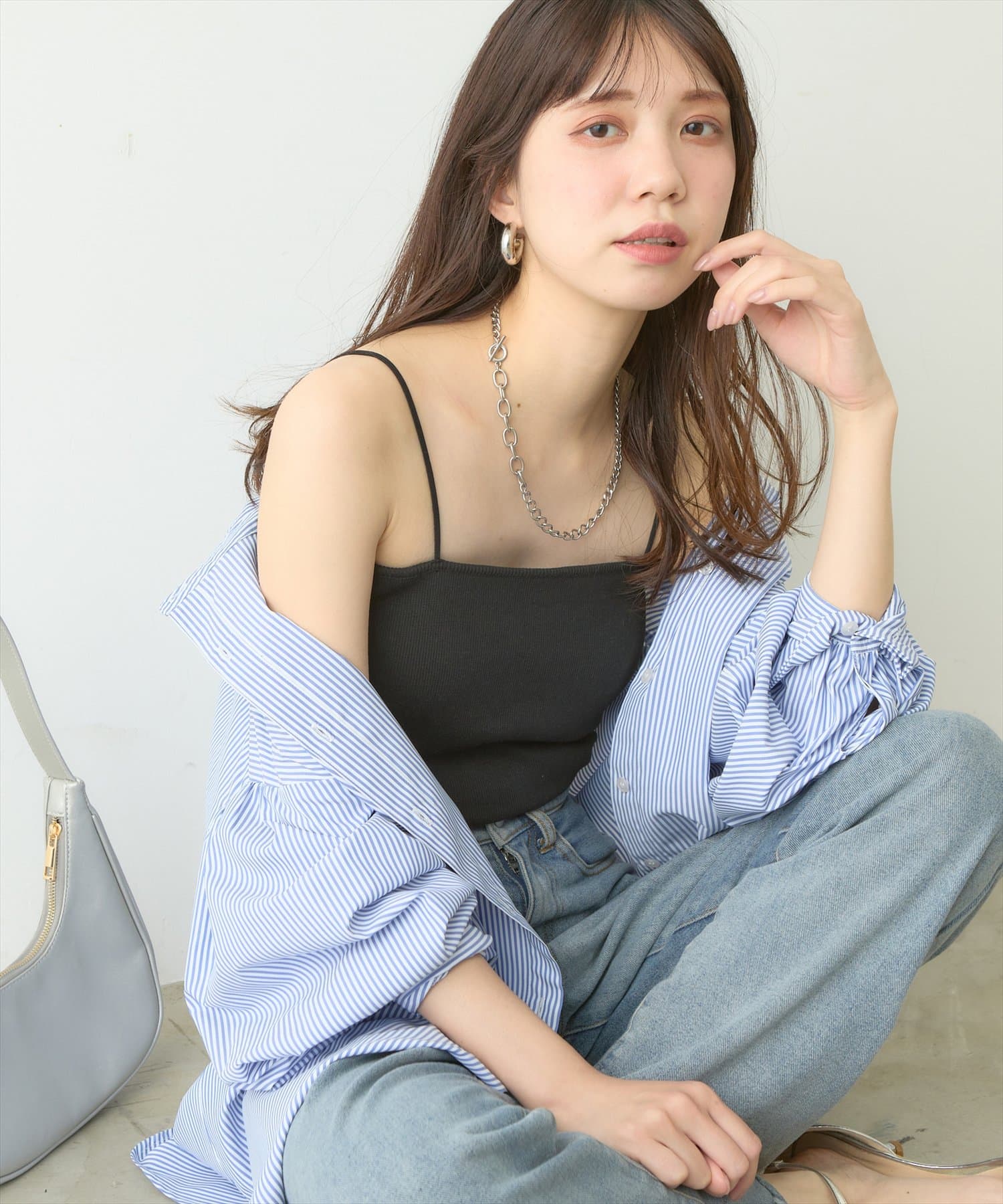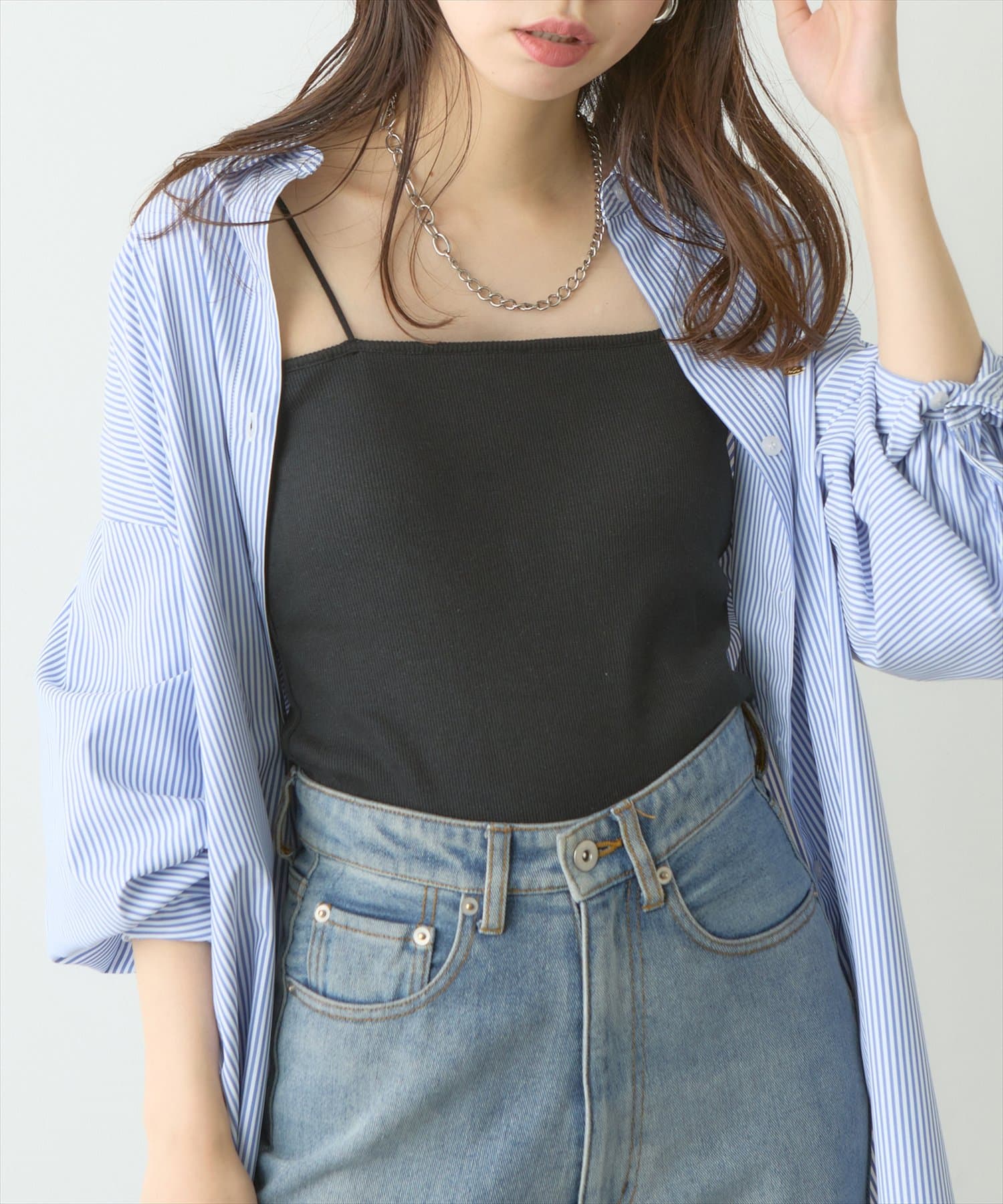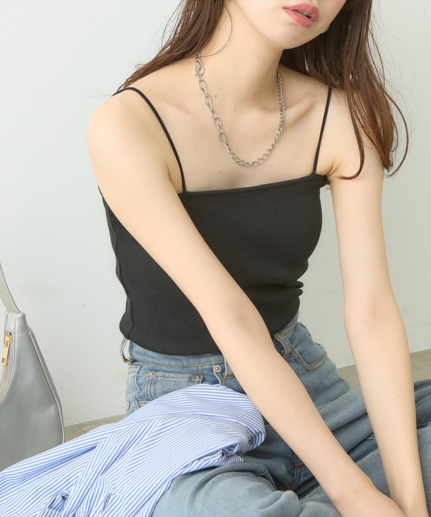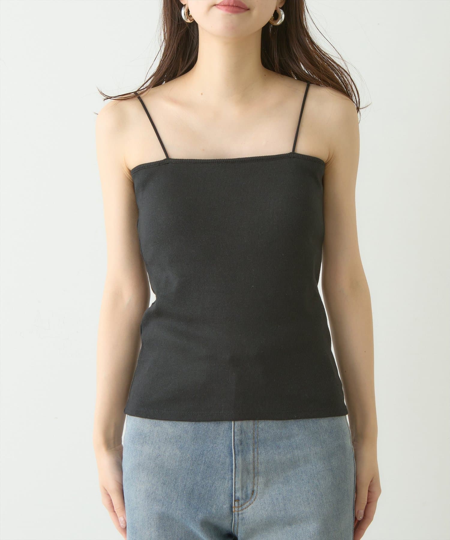 シンプルで使い勝手の良いカップ付きフライスキャミ。