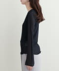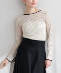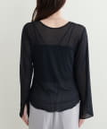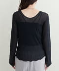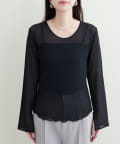 ネックラインと袖口にパイピングを施した、コーディネートにそっと華を添えてくれるチュールトップス。