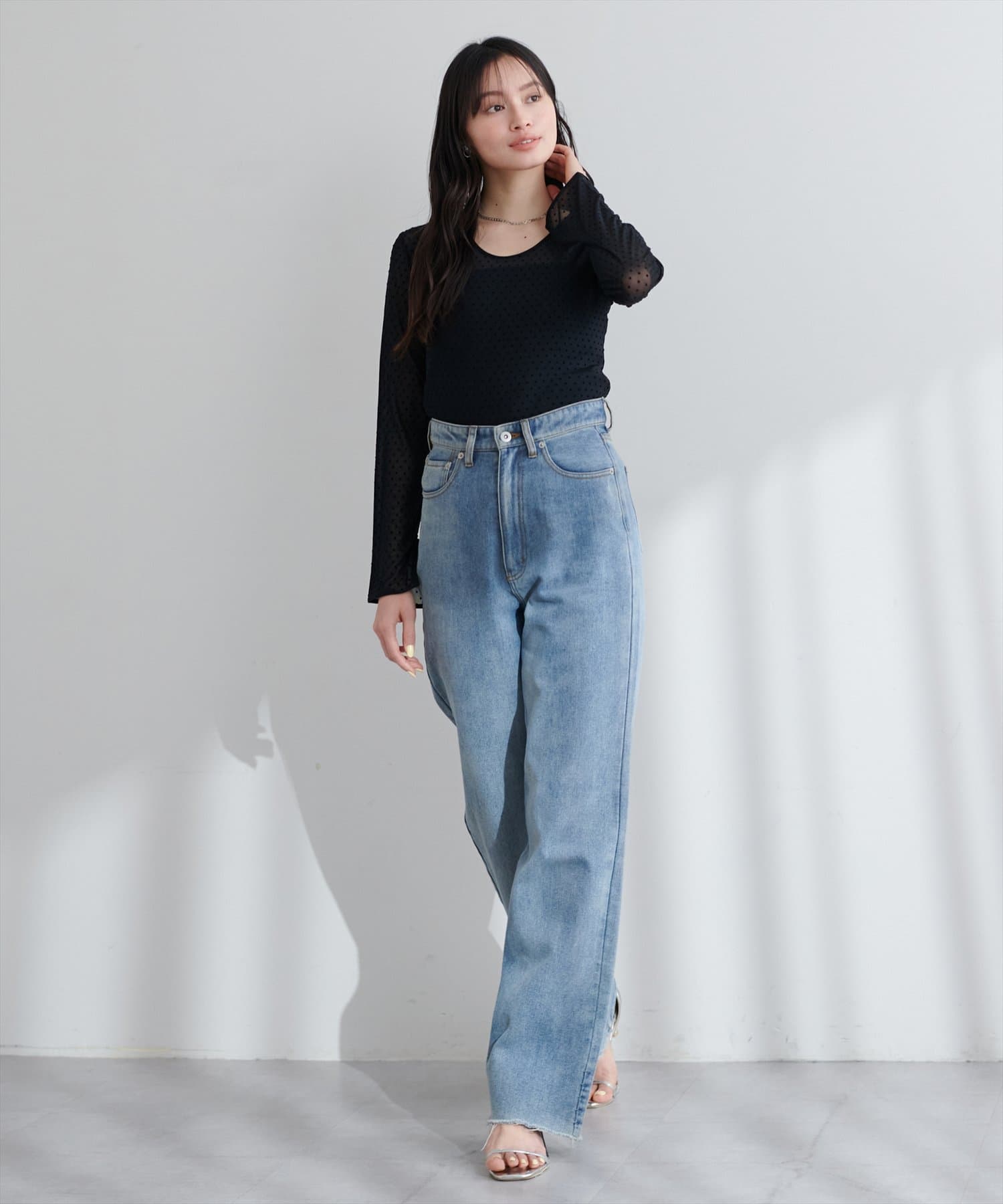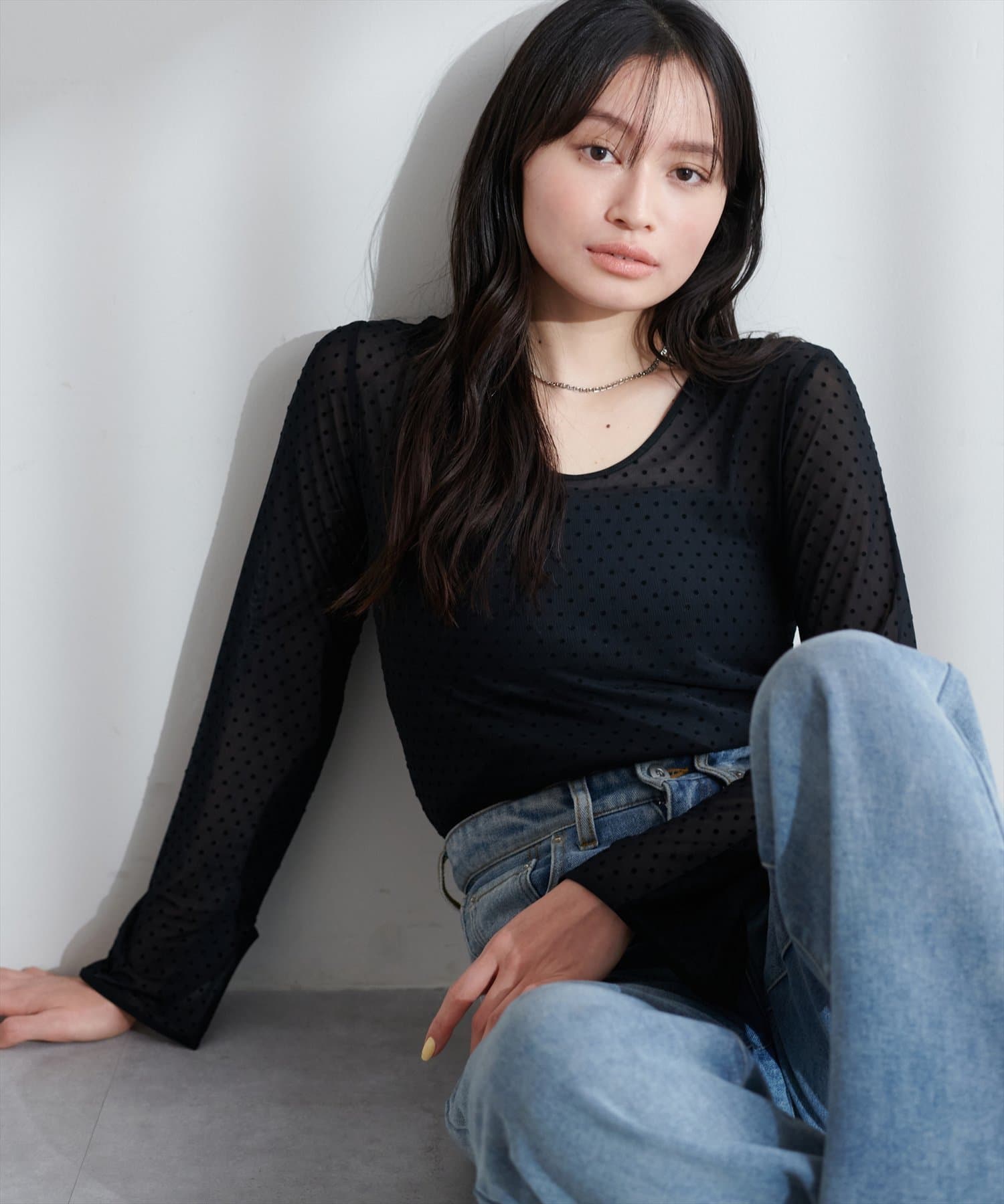 上品な透け感で春のレイヤードスタイルに欠かせない、1枚持っていると重宝するアイテムです。