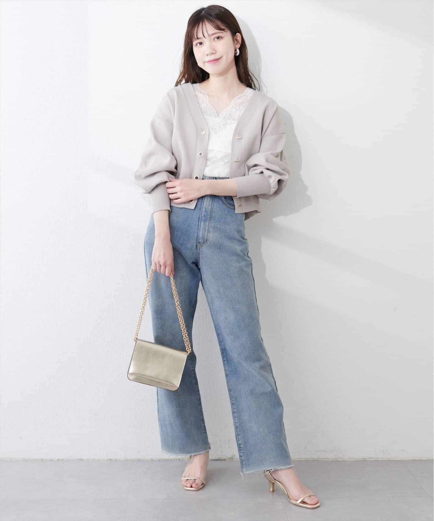 シャツやカーディガンをさらっと羽織るだけで華やかなコーディネートが完成します。