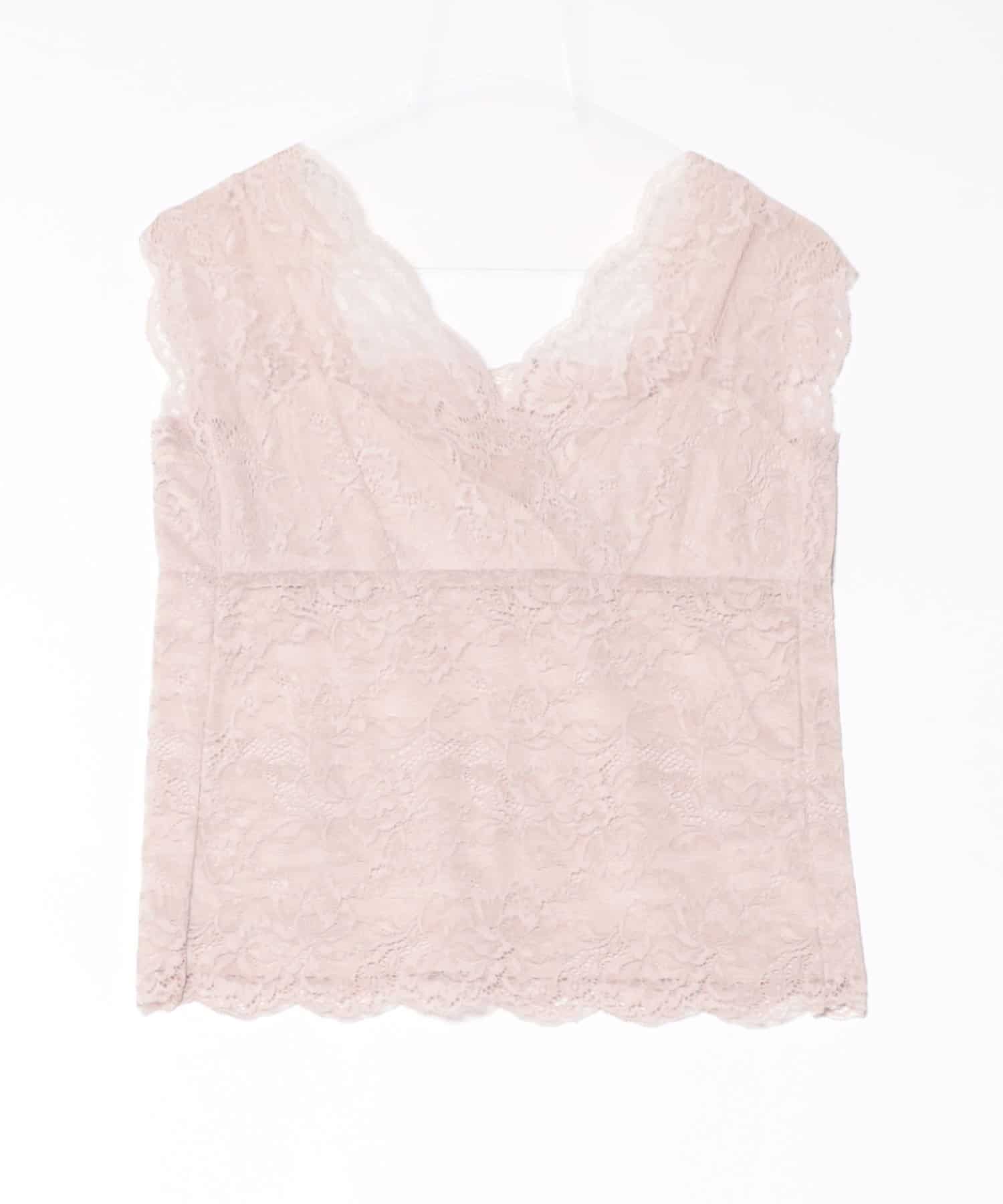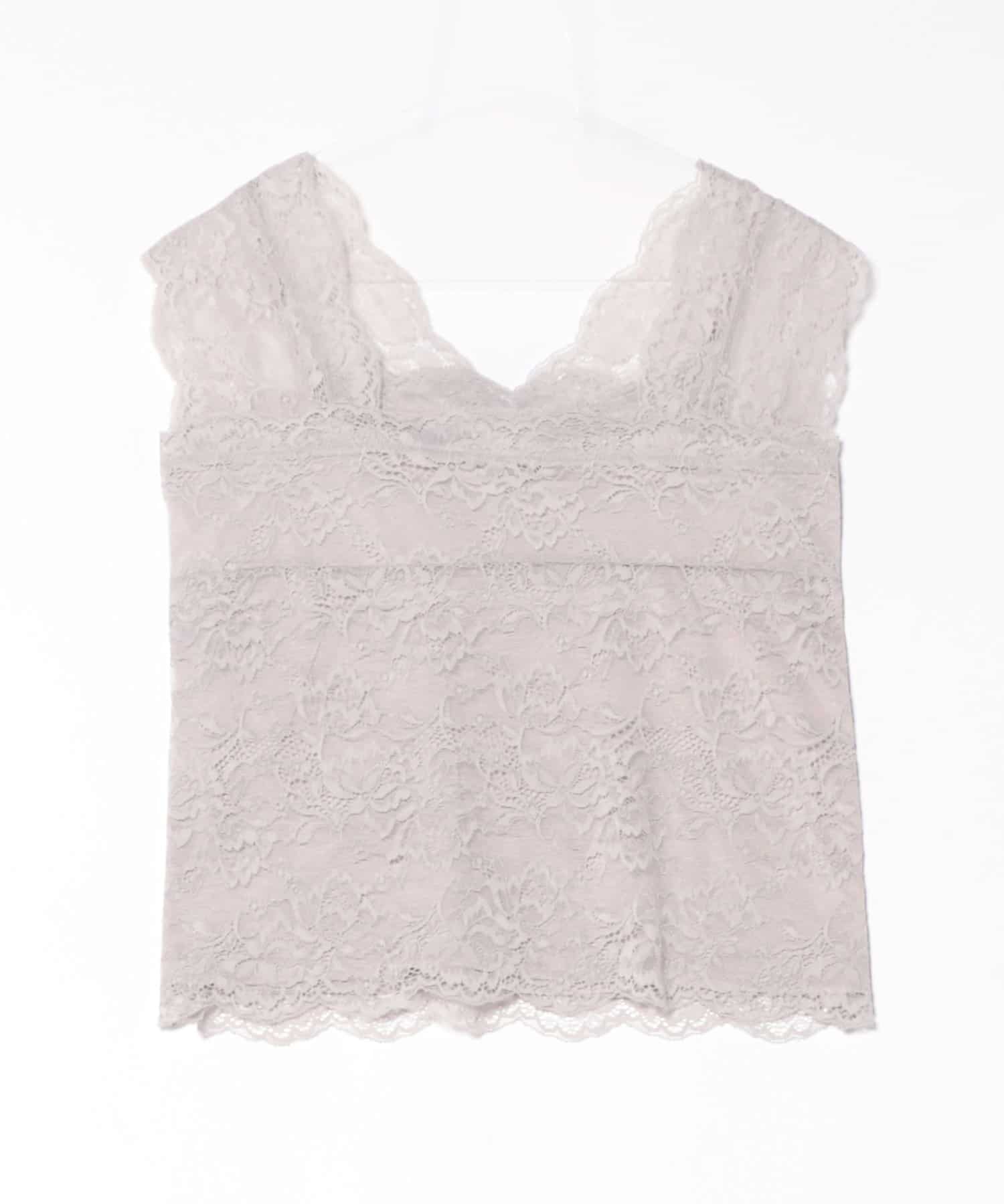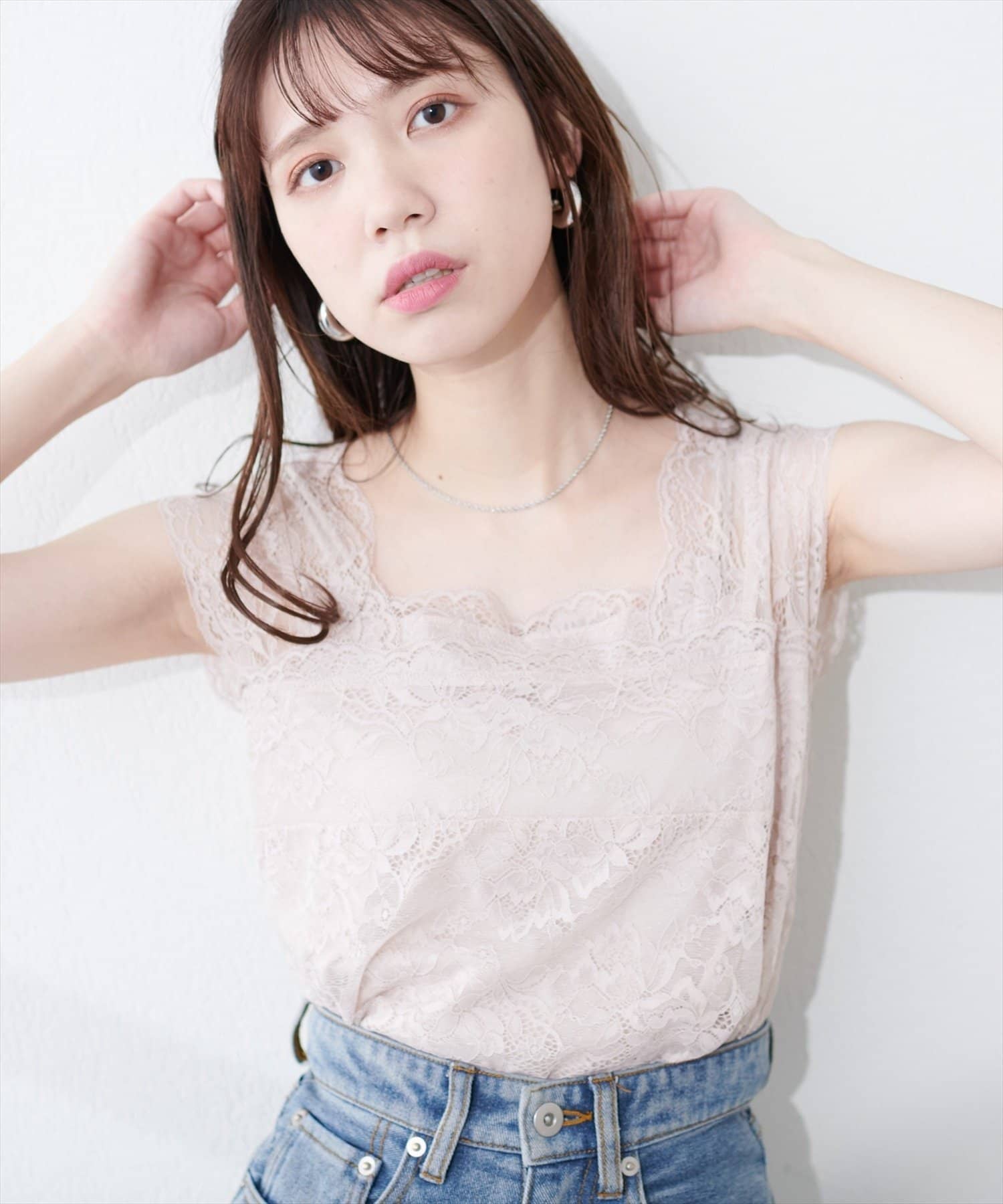 レイヤードスタイルに嬉しいすっきり見えの総レースインナー。