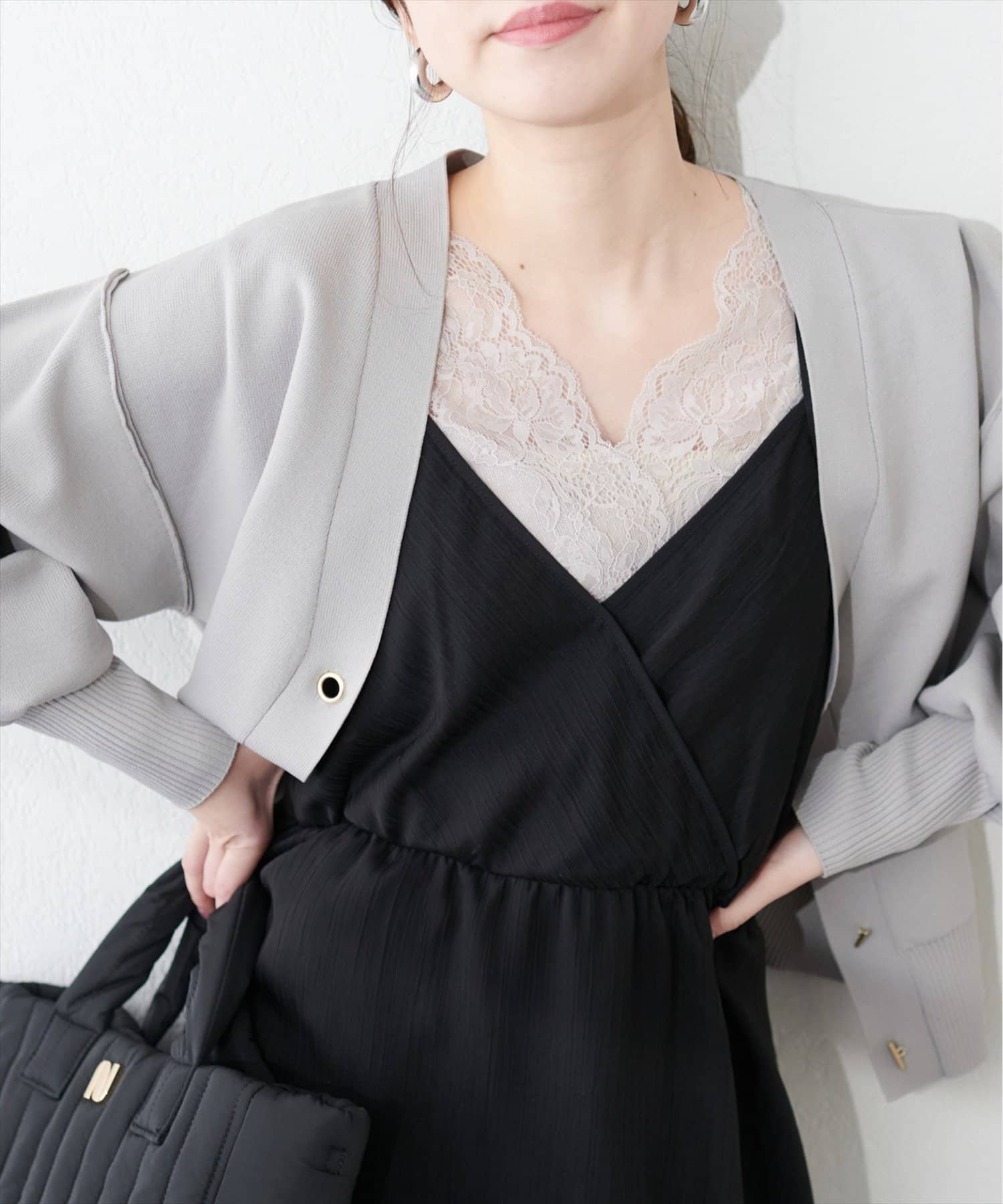 胸元が開いたワンピースやカシュクールブラウスのインナーにするのもおすすめです。