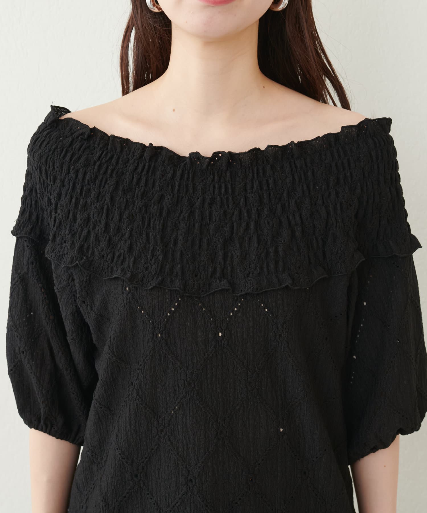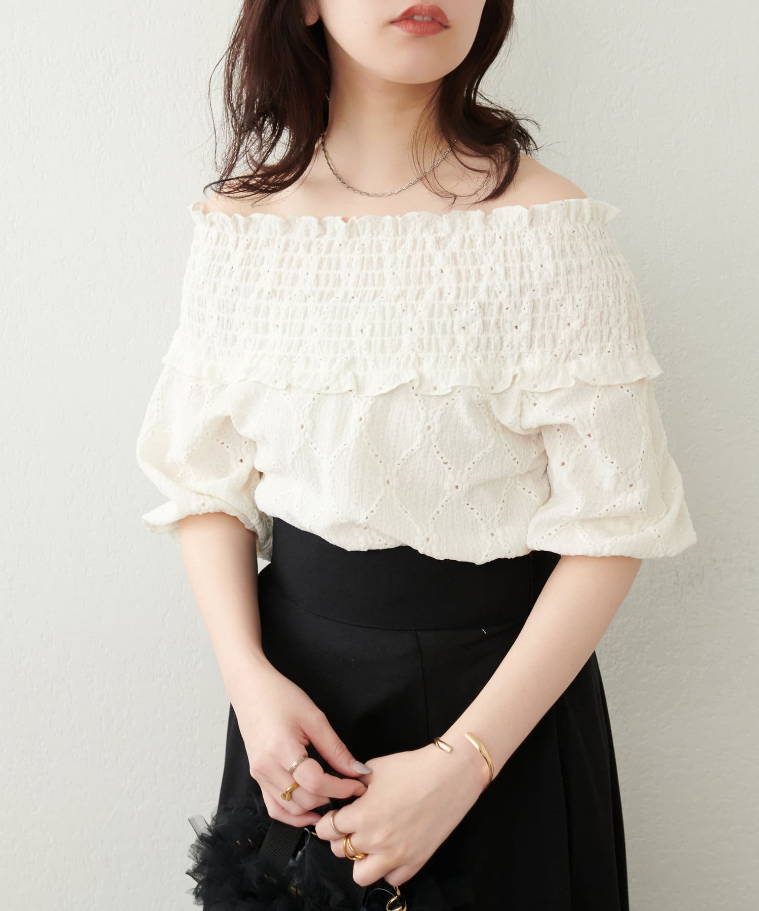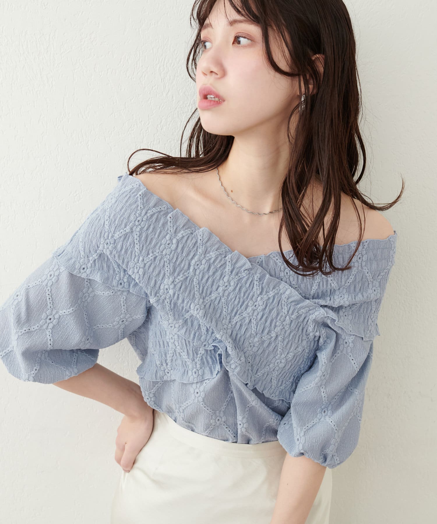 【WEB限定】アイレットカットレースクロスオフショルプルオーバー