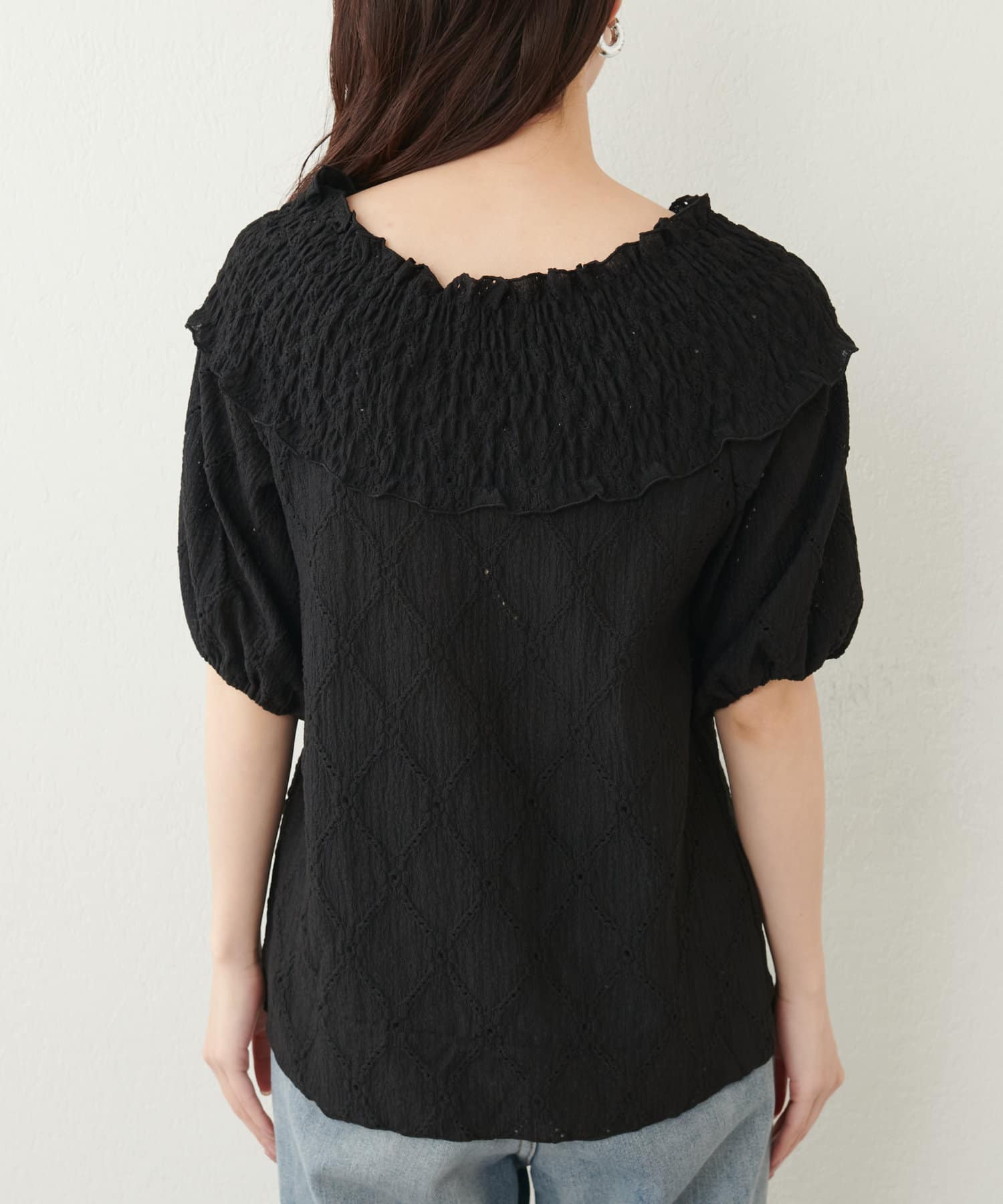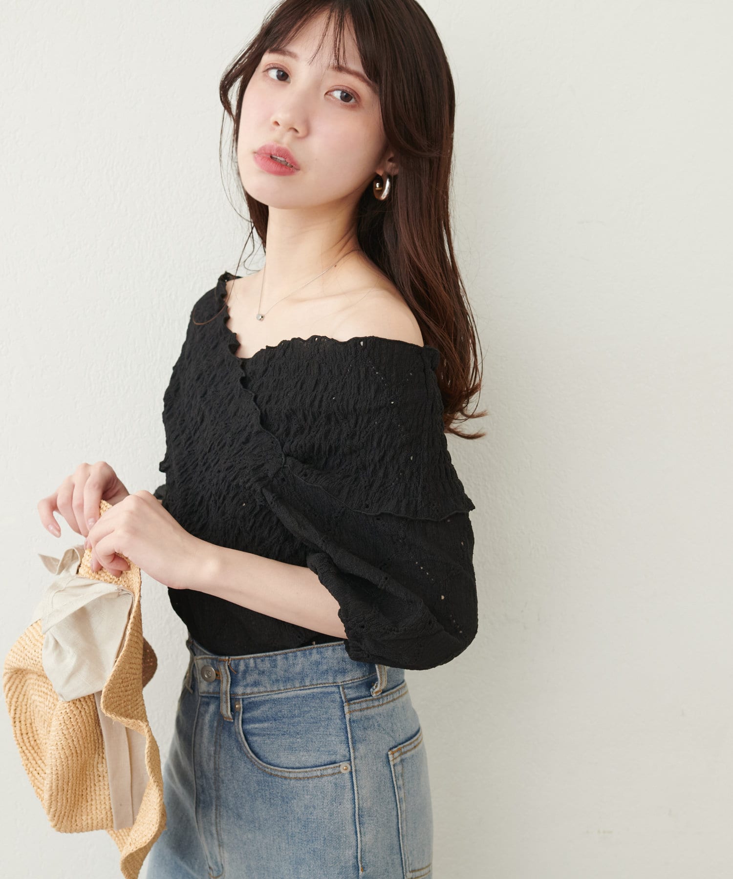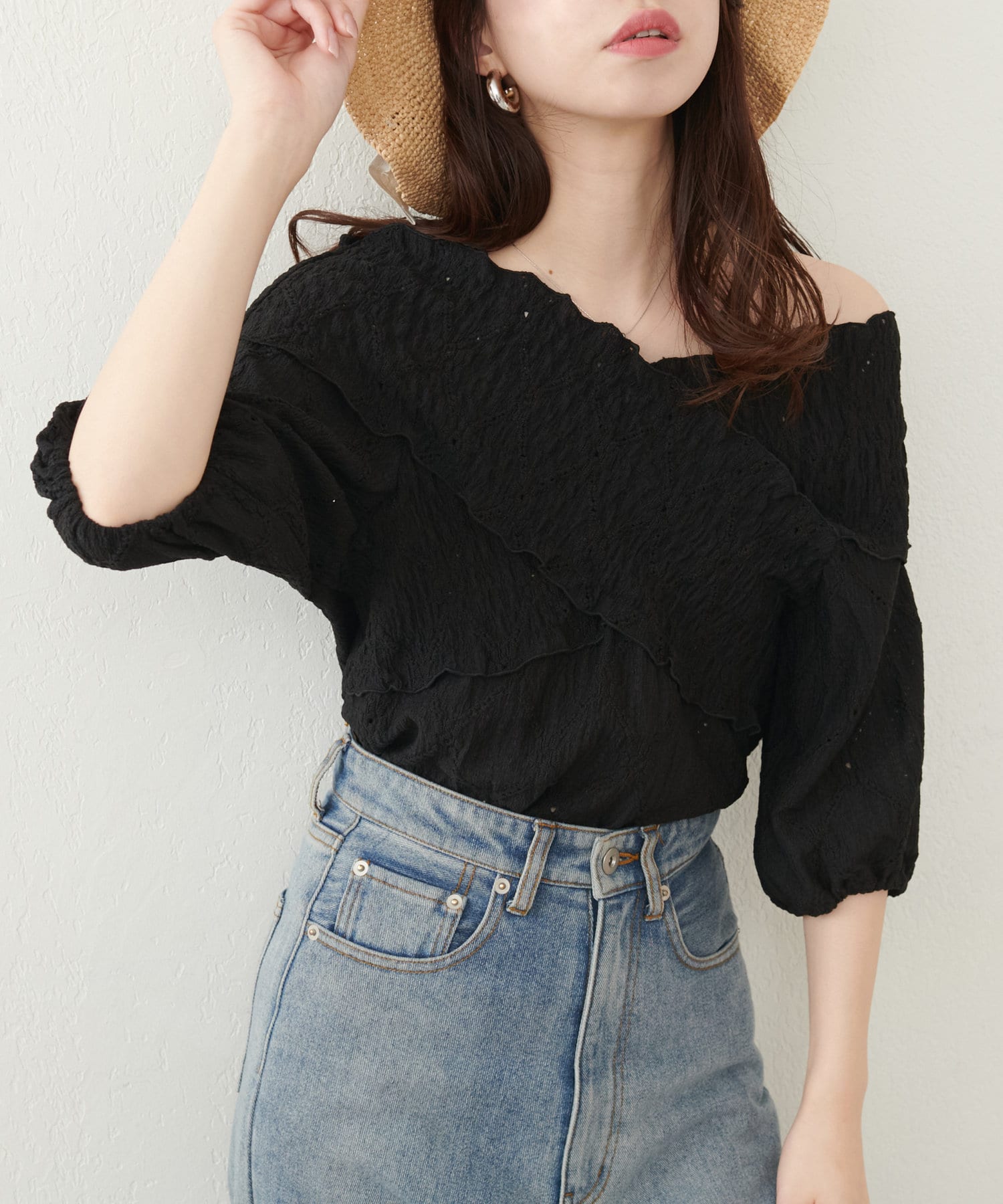 【WEB限定】アイレットカットレースクロスオフショルプルオーバー