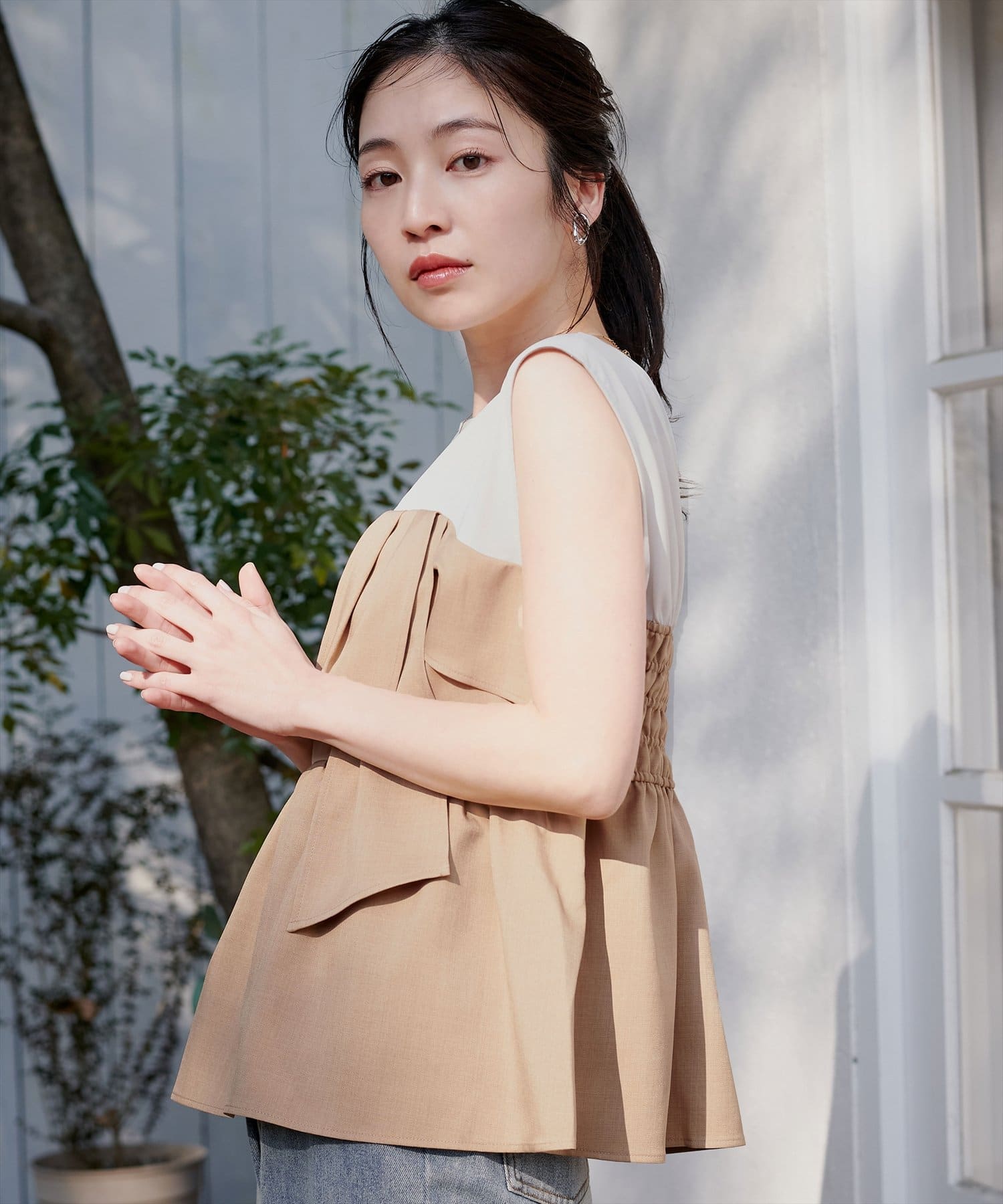 すっきりとしたネックラインは、ヘルシーかつ女性らしい上品な印象に仕上げました。