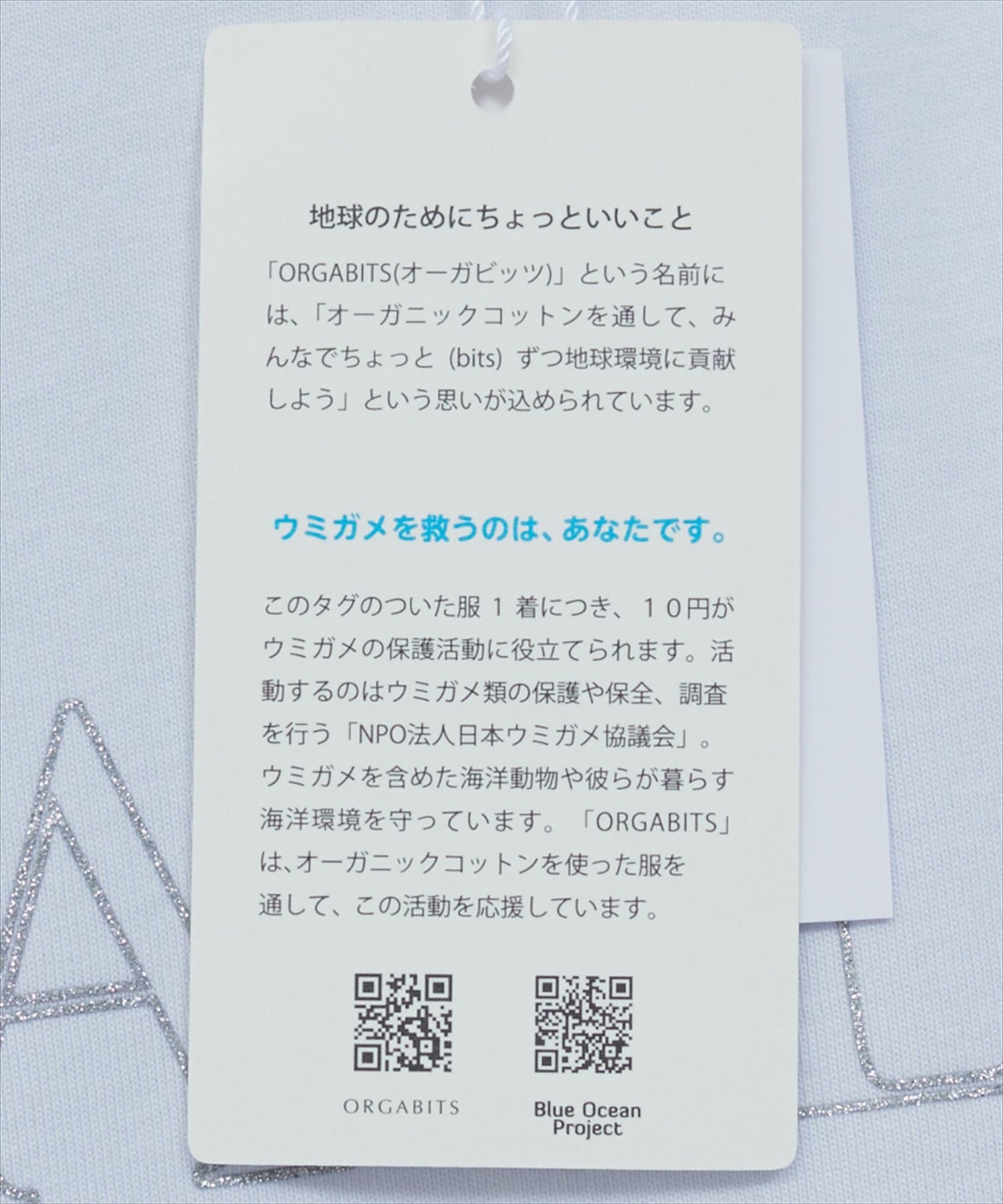 こちらの洋服1着につき、10円がウミガメの保護活動に役立てられます。