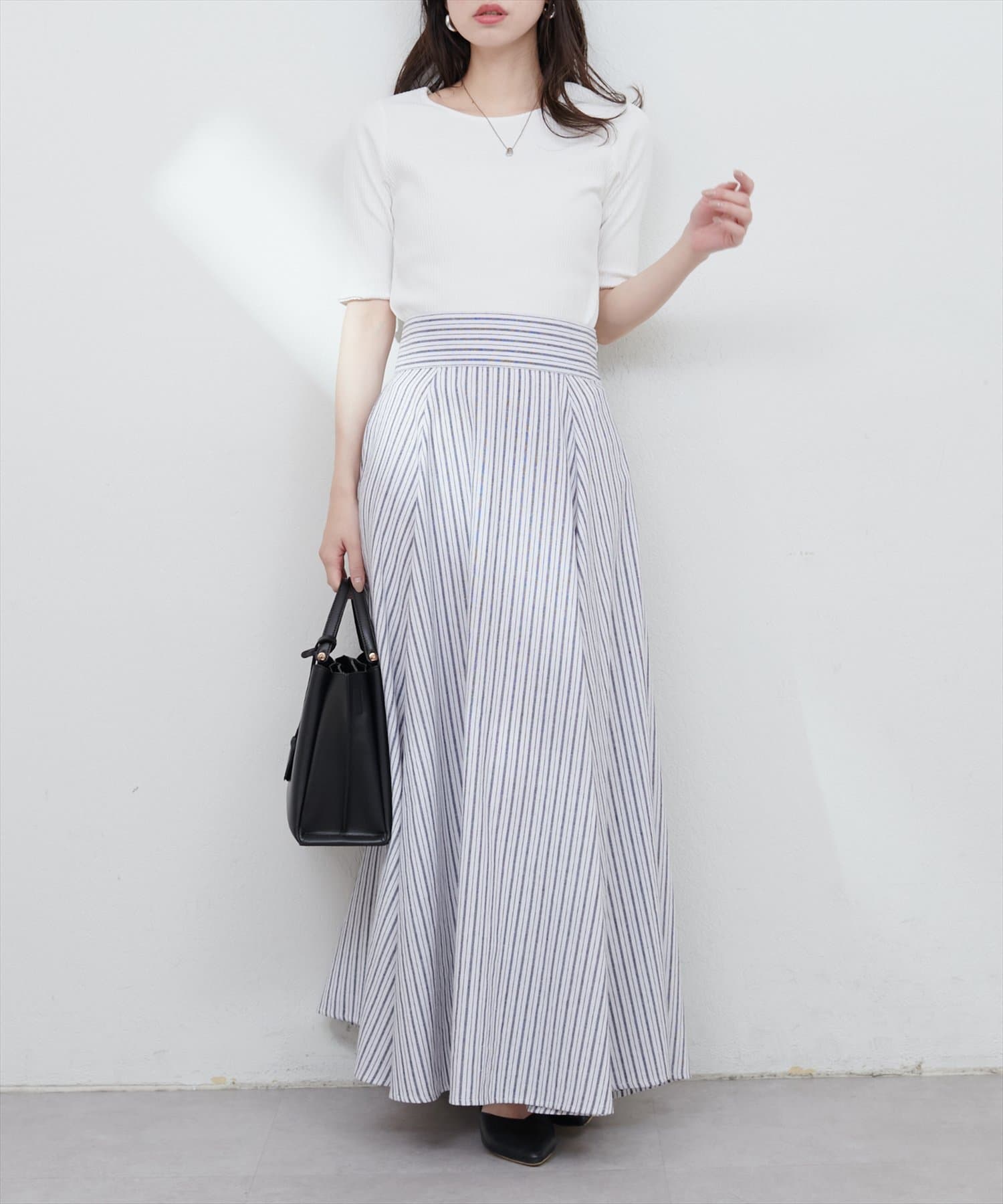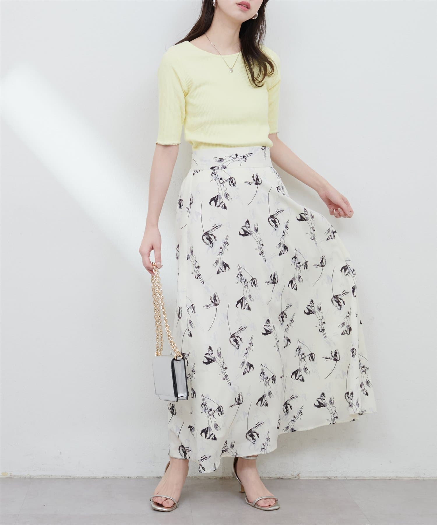 Aラインのスカートやシフォンスカートを合わせるとフェミニンな着こなしに。