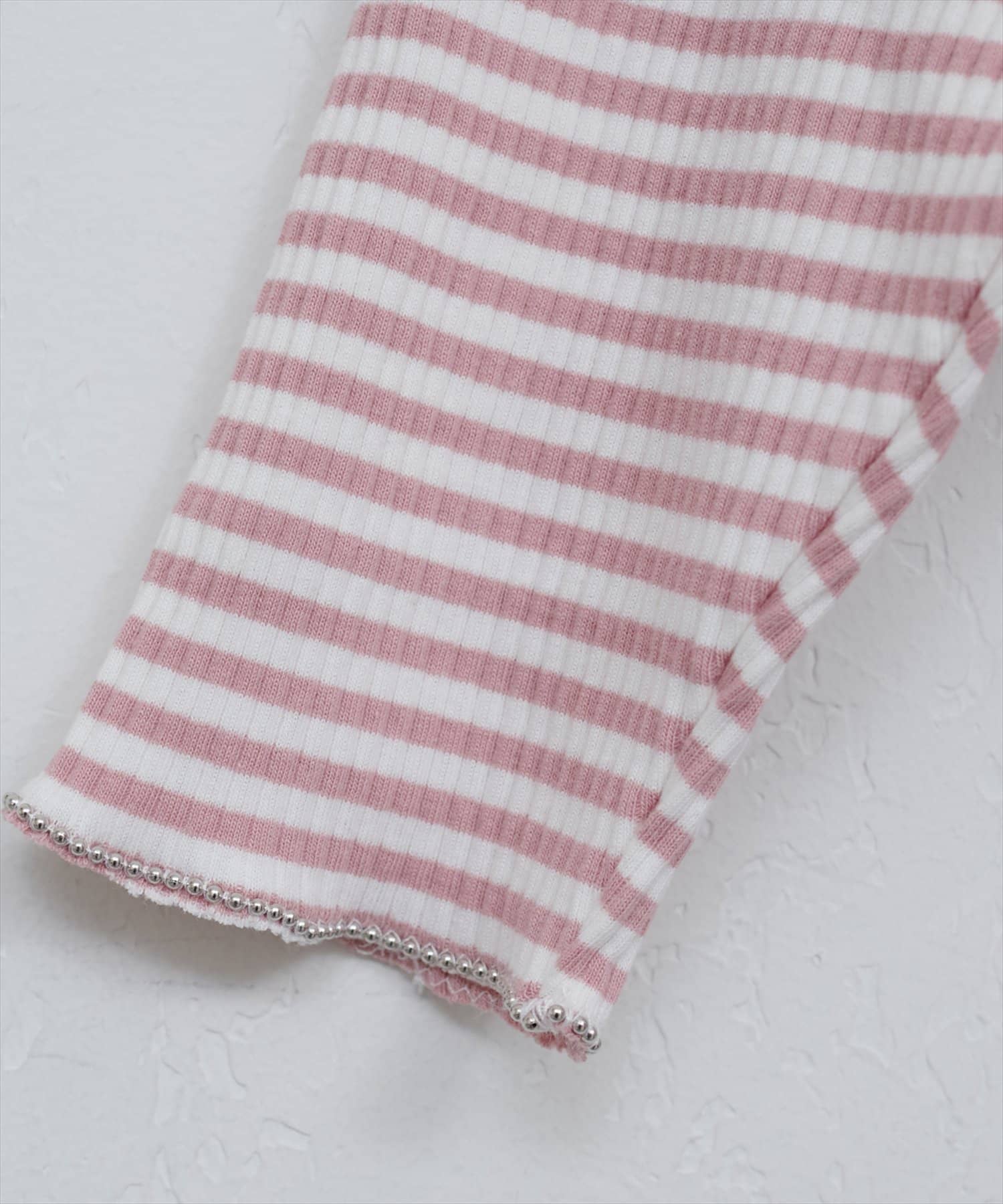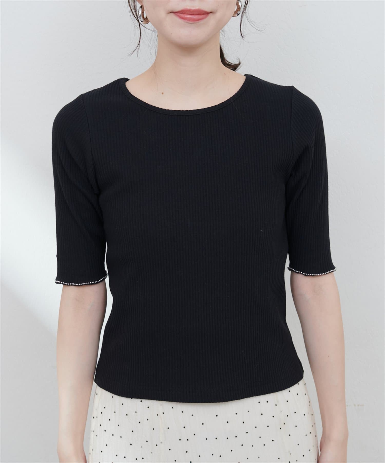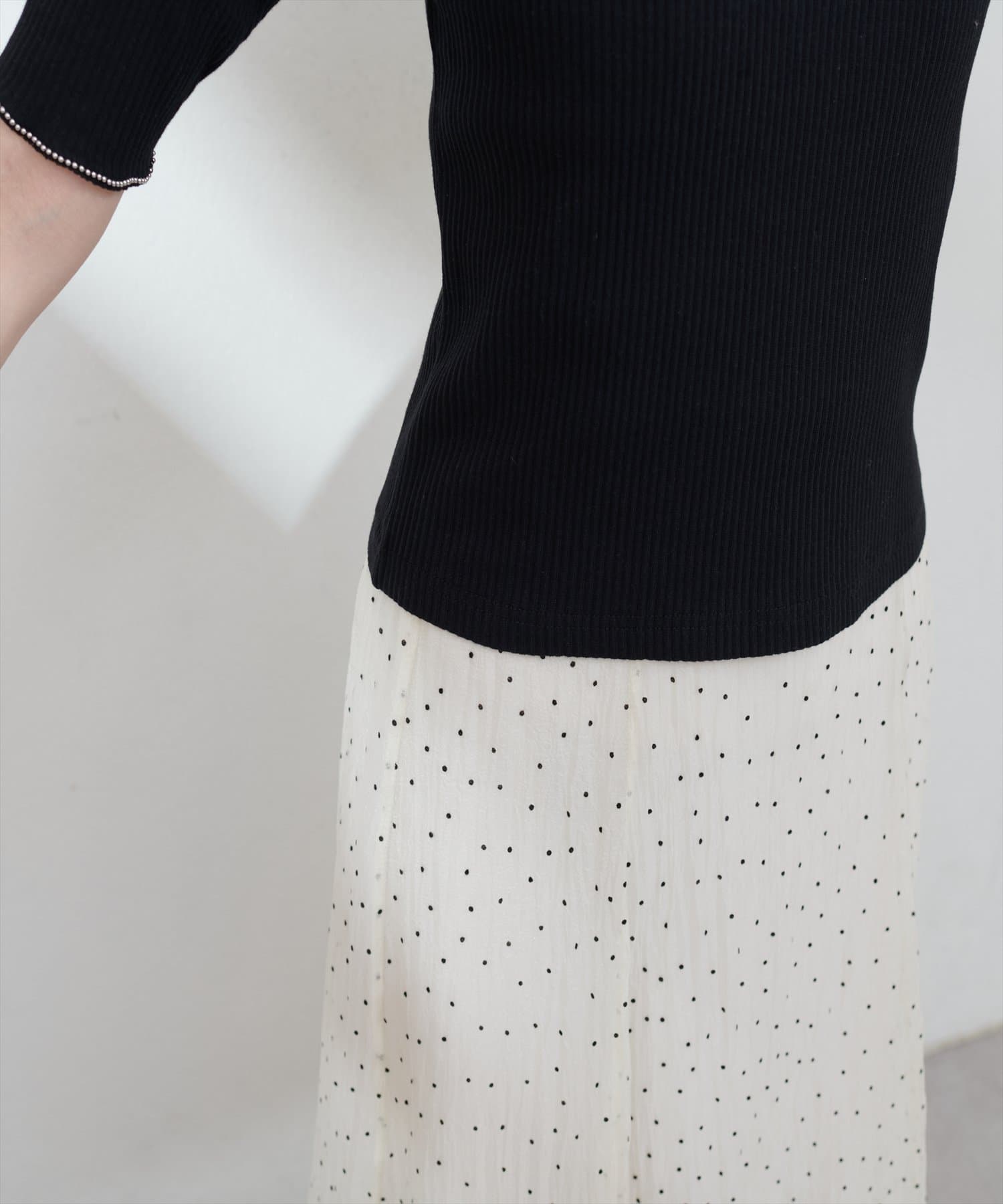 袖の先端にメタルボールチェーンのついた繊細なデザインのカットトップス。