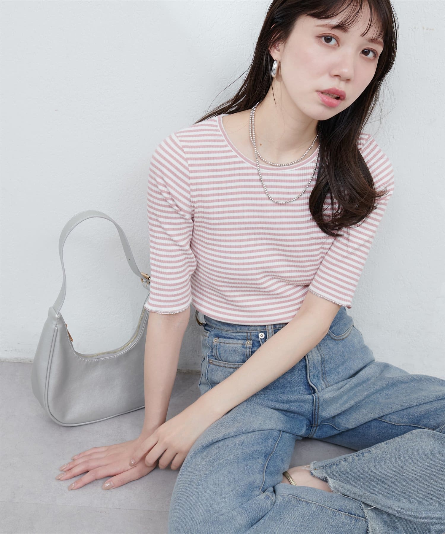 コンパクトなサイズ感のトップスなので合わせやすいのが嬉しいポイント。