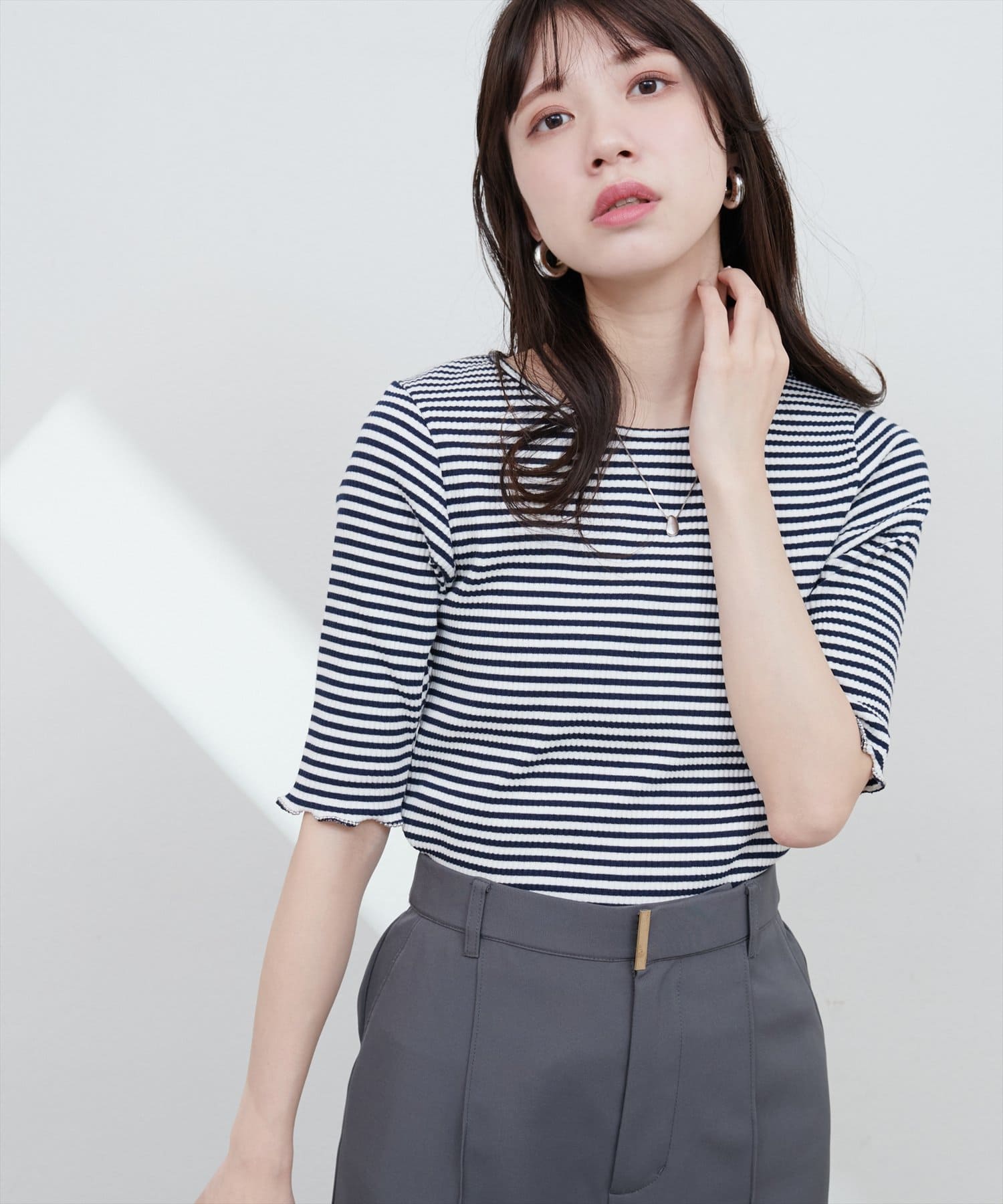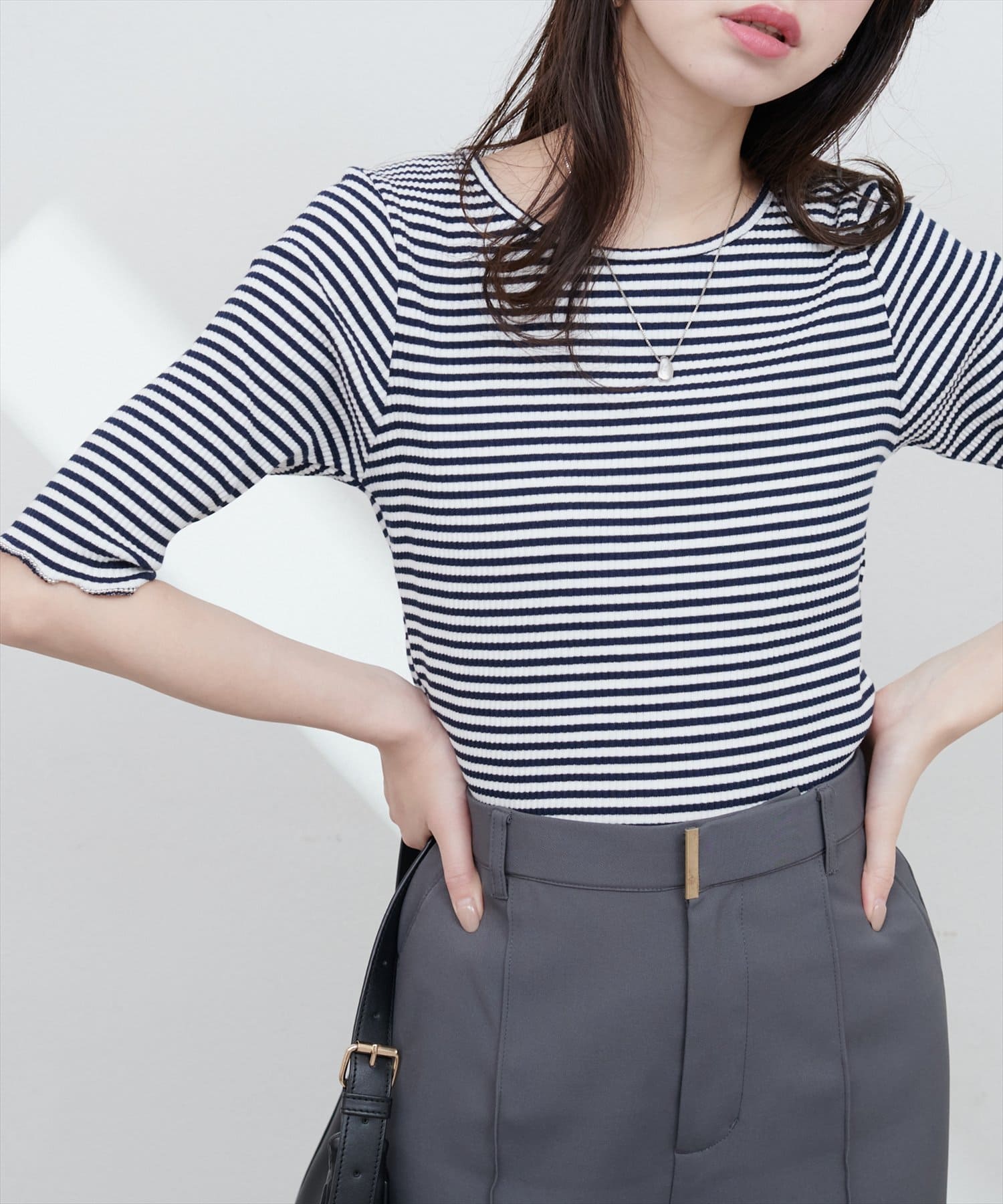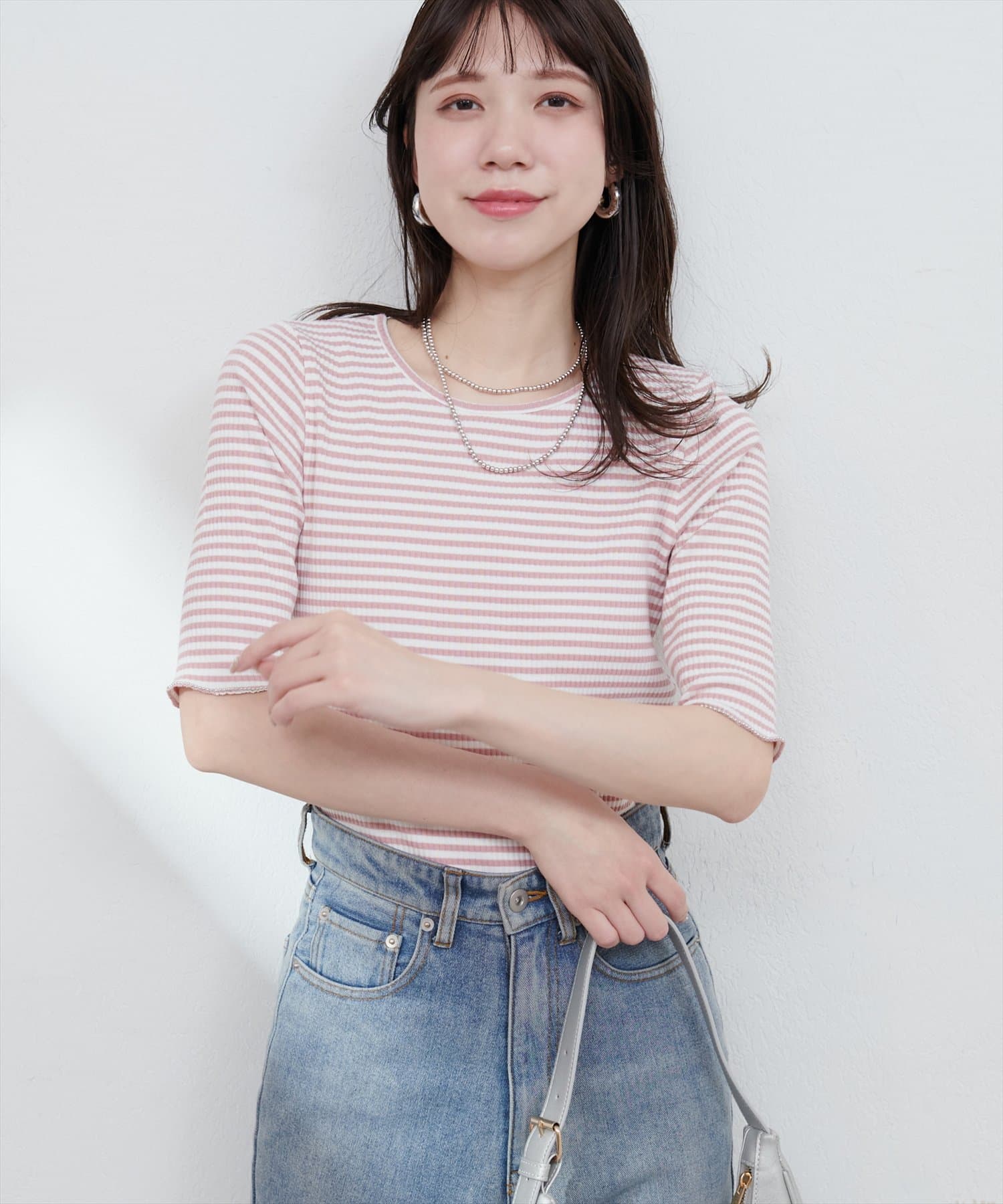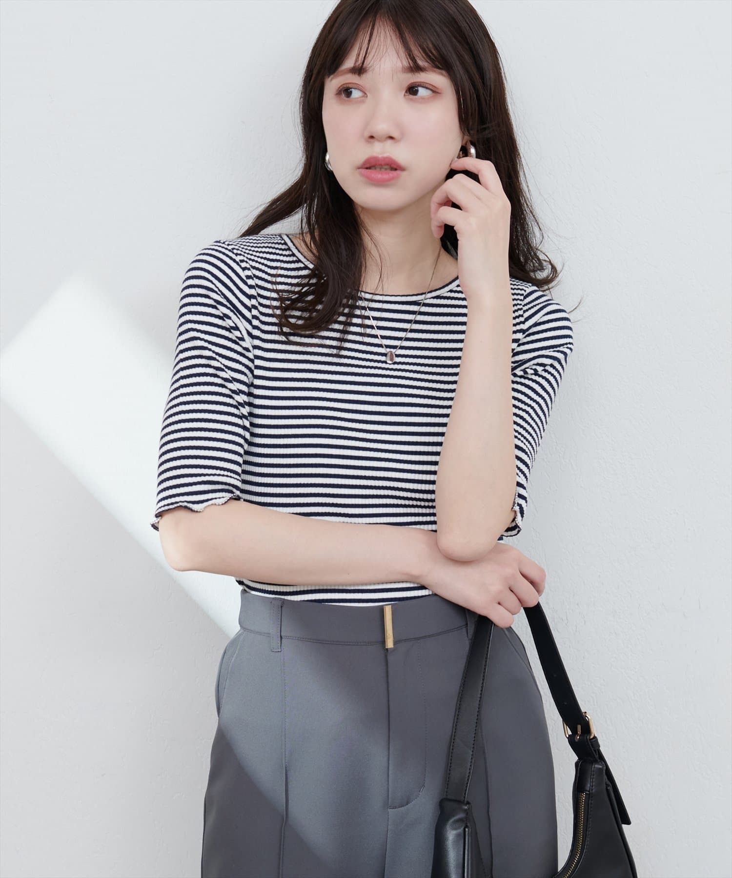 コンパクトな丈感とスッキリとした印象のクルーネックが程よく上品にお召頂けます。