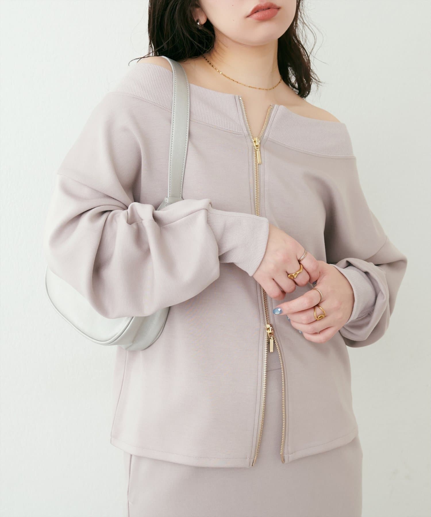 ZIPデザインでトレンド感があり、様々な着こなしができ、これからの時期のスタイリングを楽しくしてくれるアイテムです。