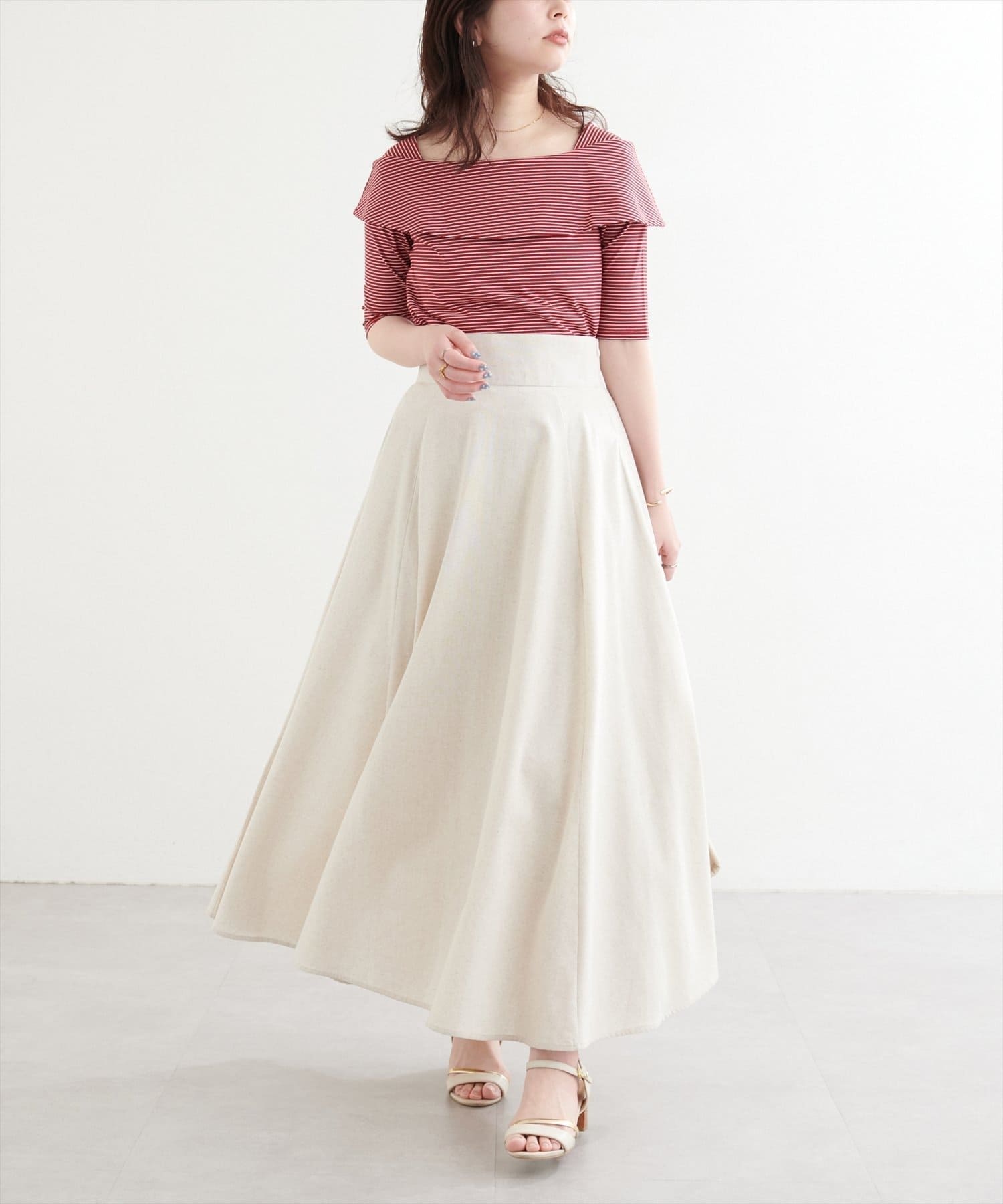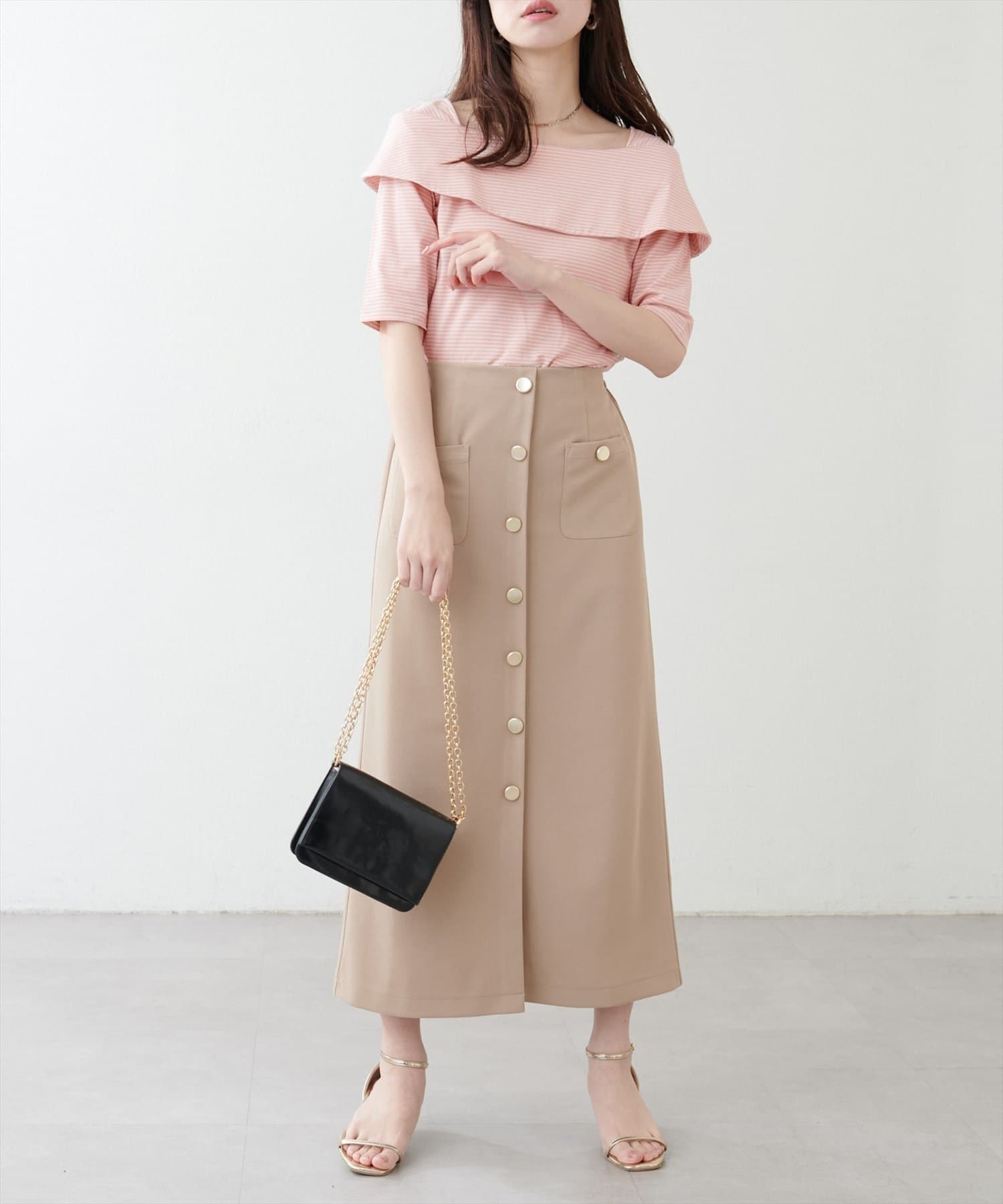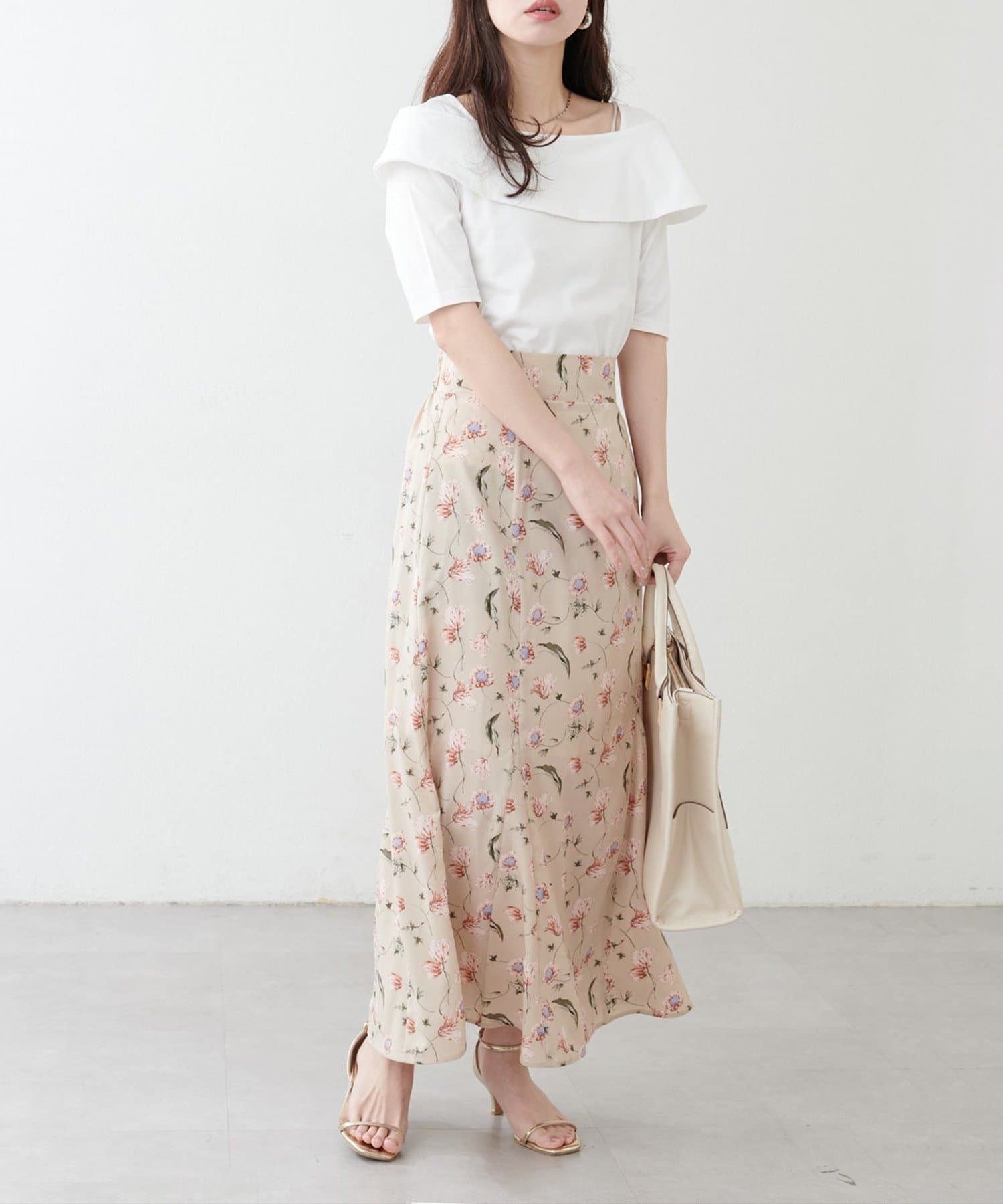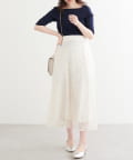 落ち感のあるナロースカートやマーメイドシルエットのスカートを合わせると、落ち着いた大人の雰囲気に。
