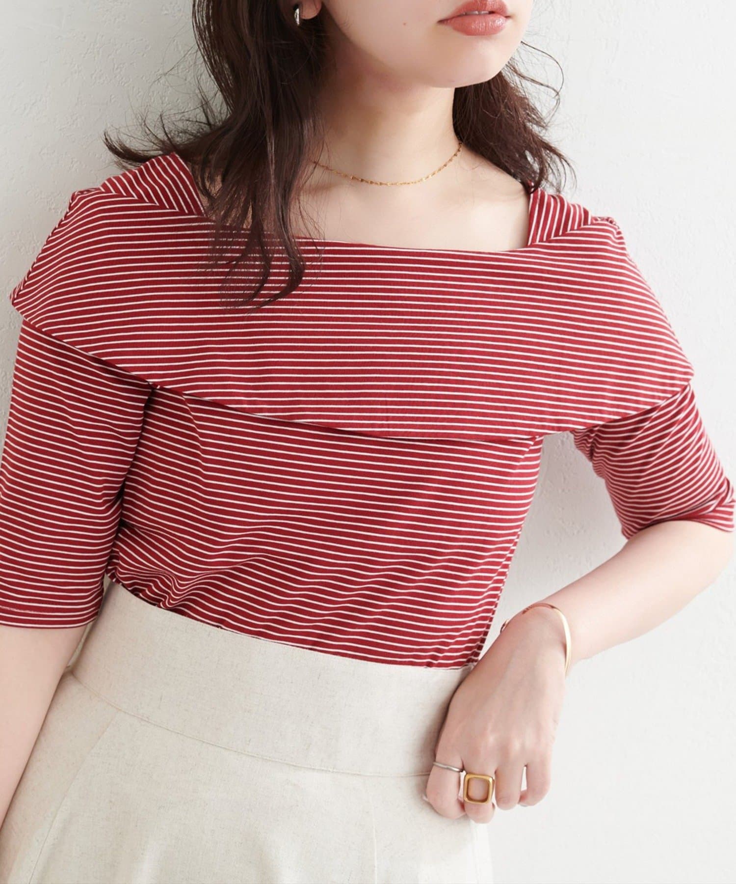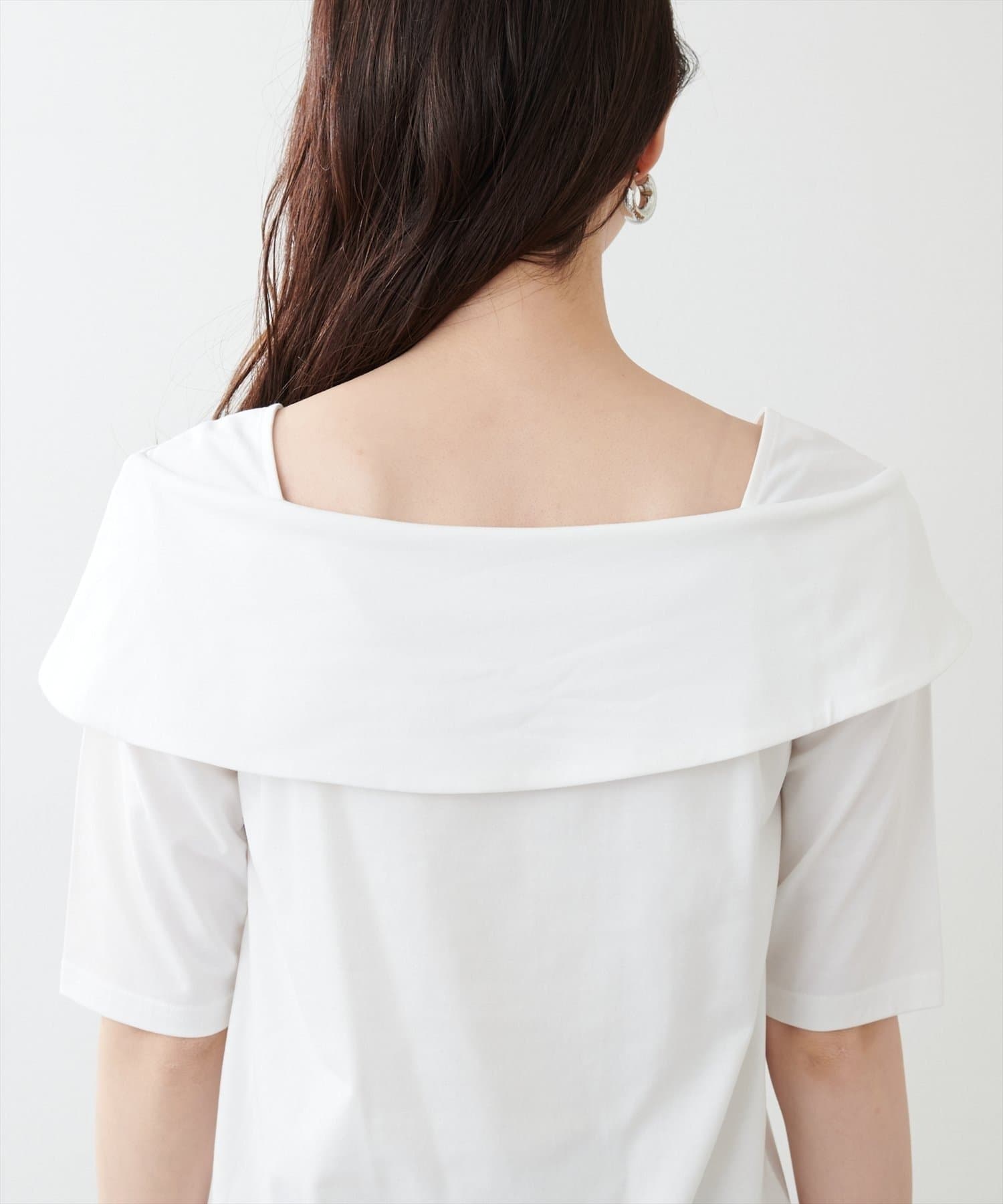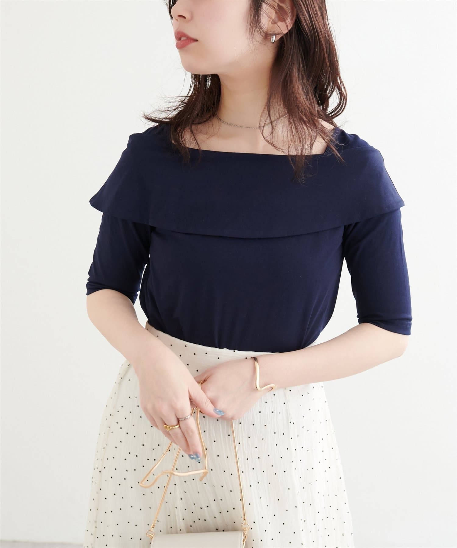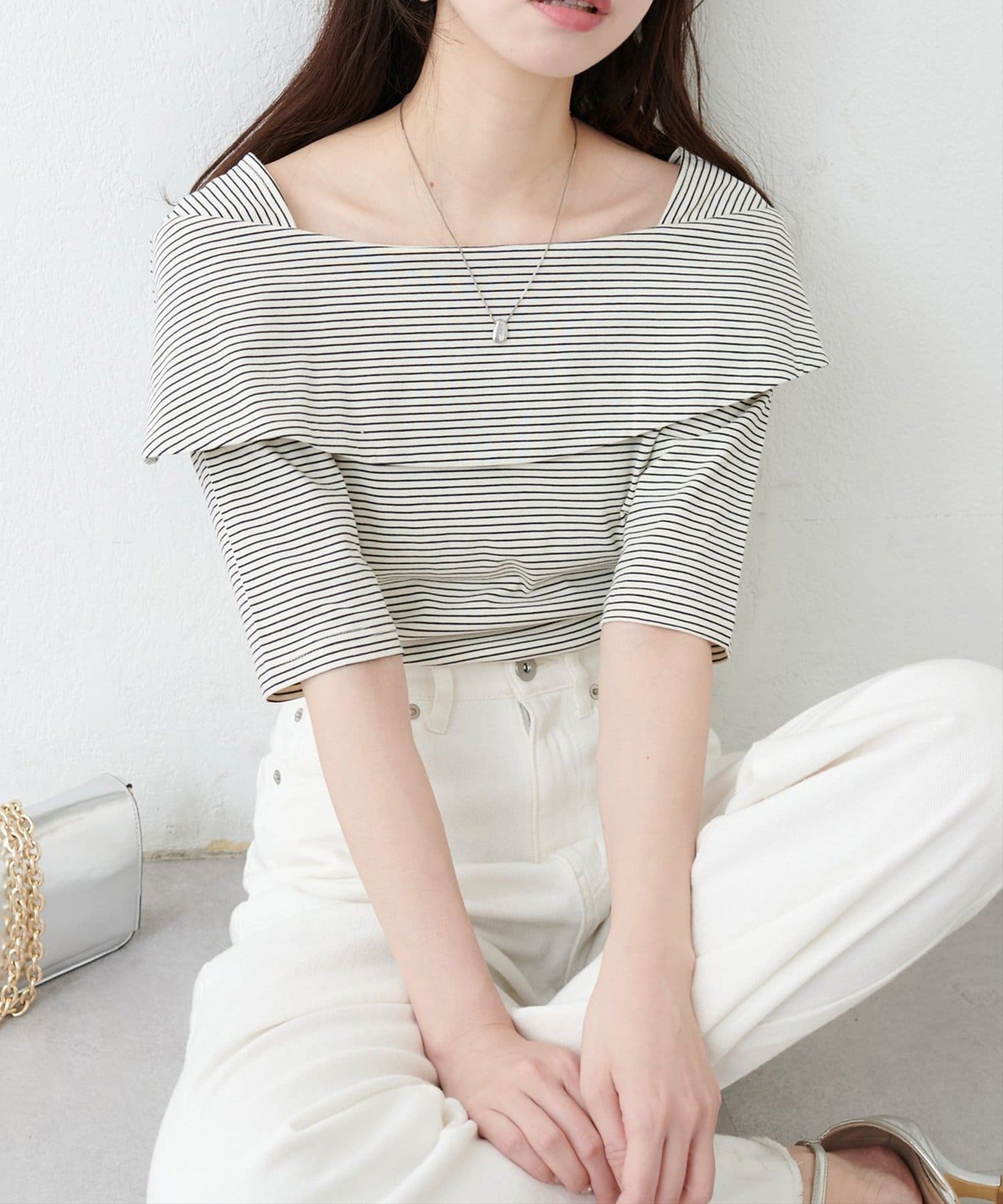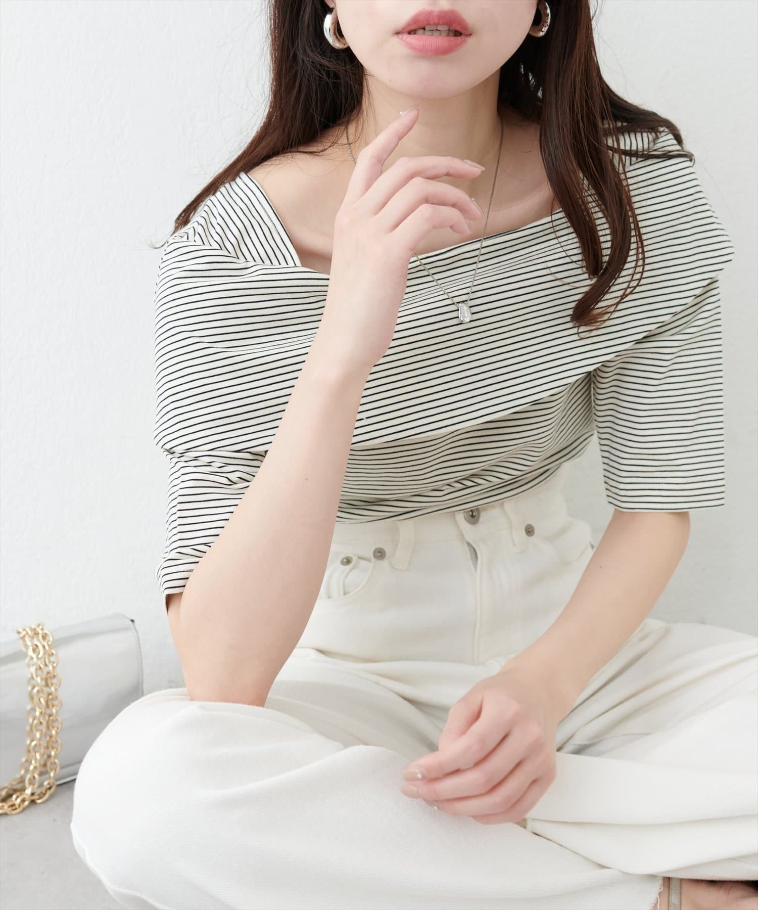 オフショルが苦手な人でも着やすいオフショル風トップス。