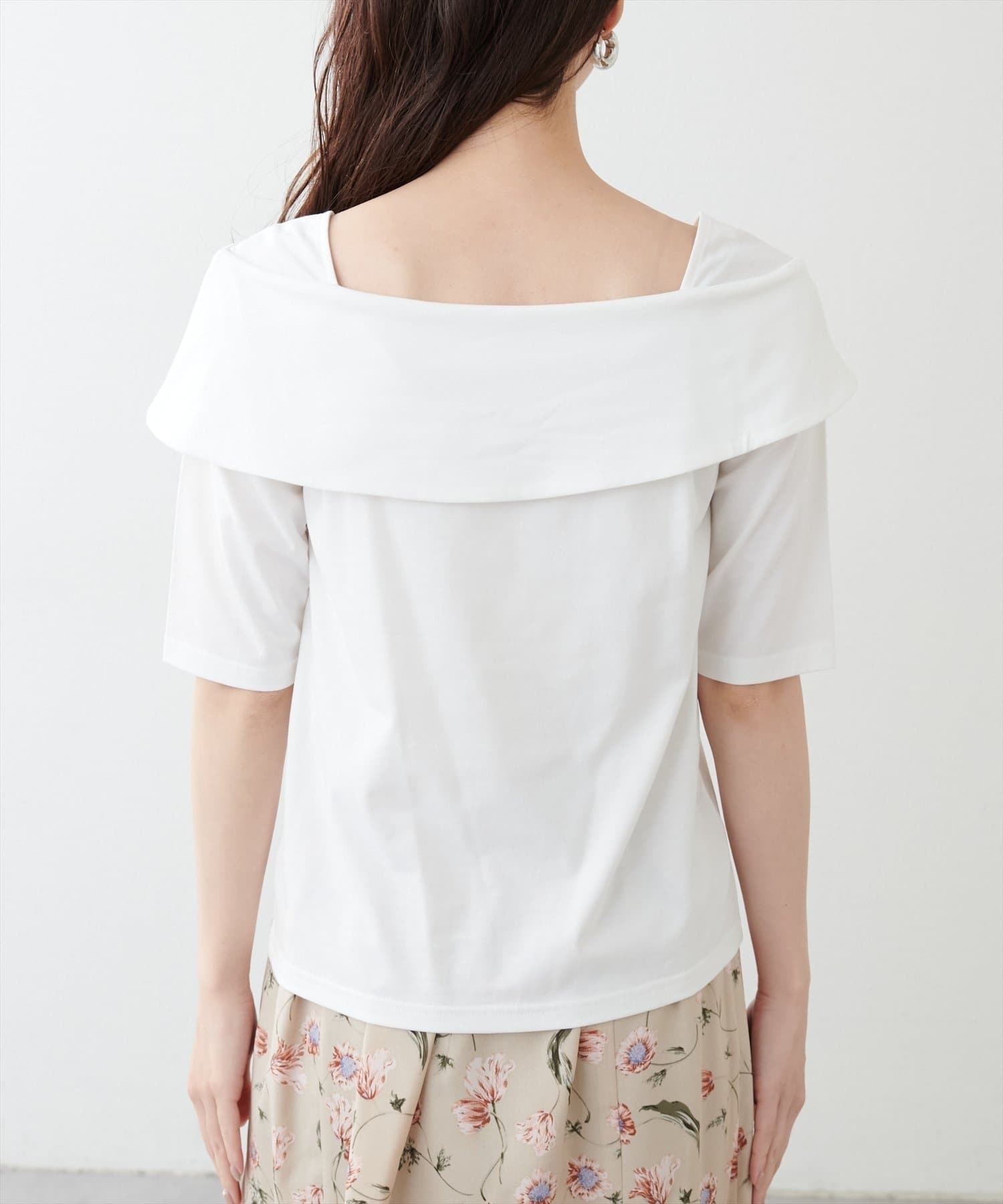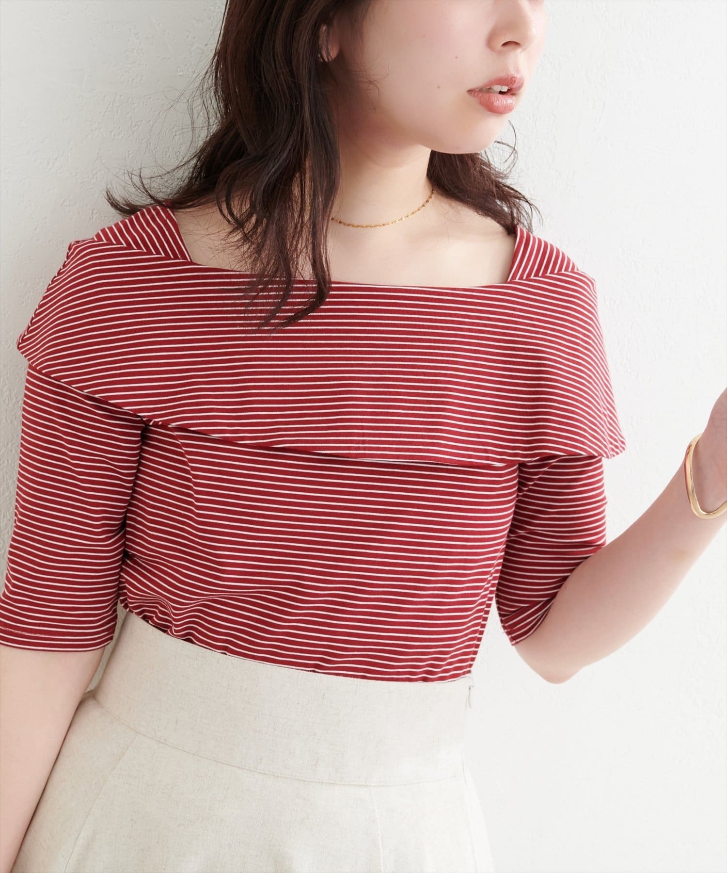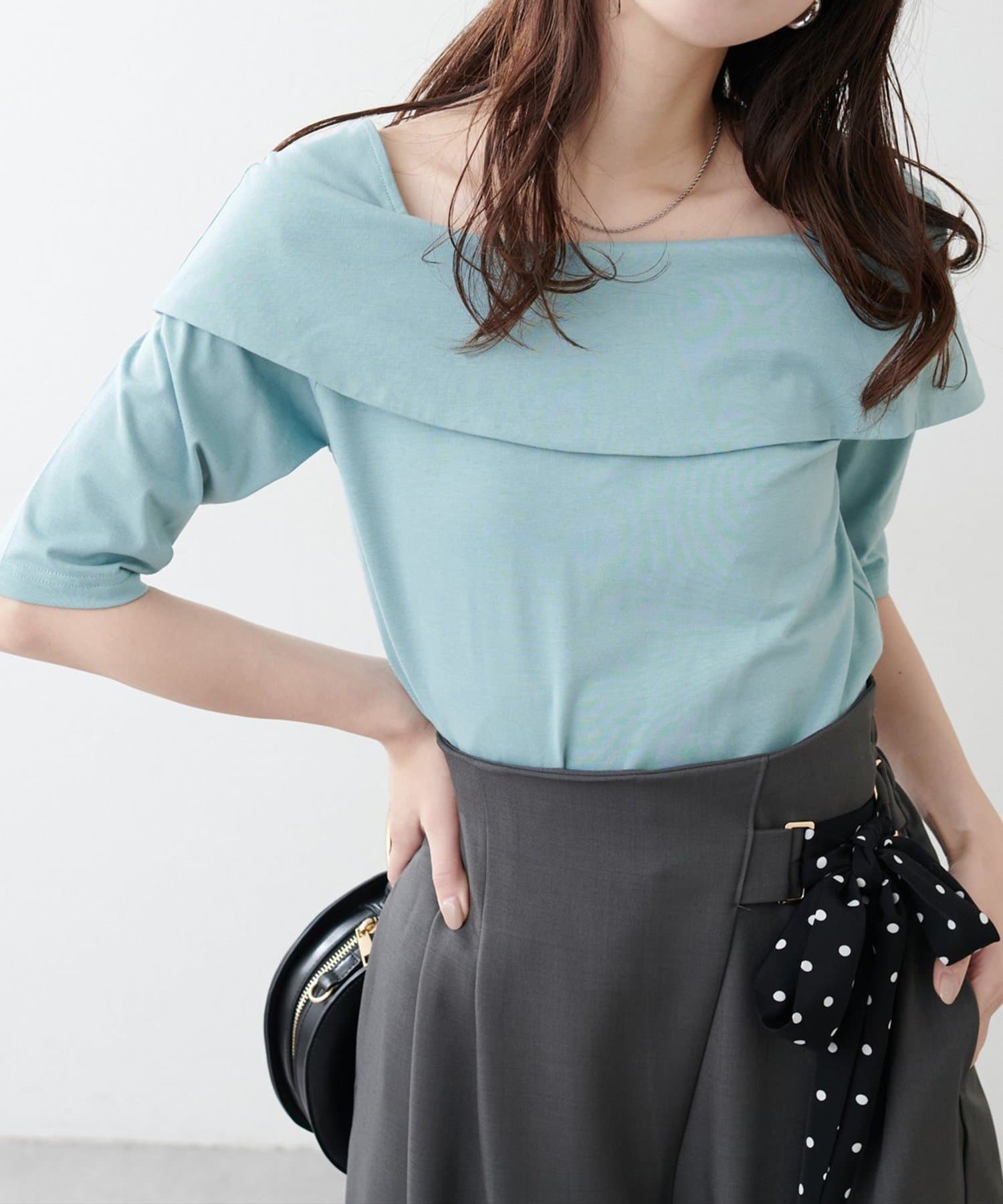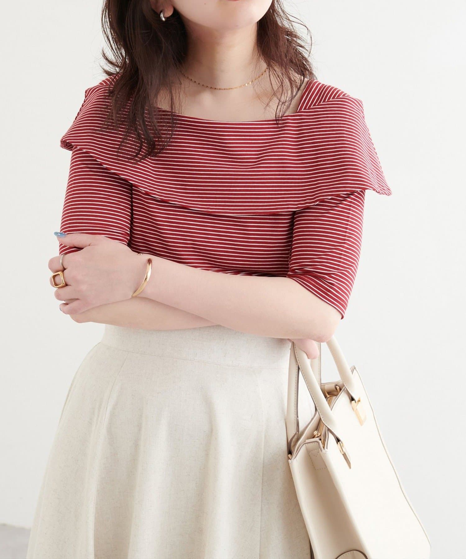 オフショルが苦手な人でも着やすいオフショル風トップス。