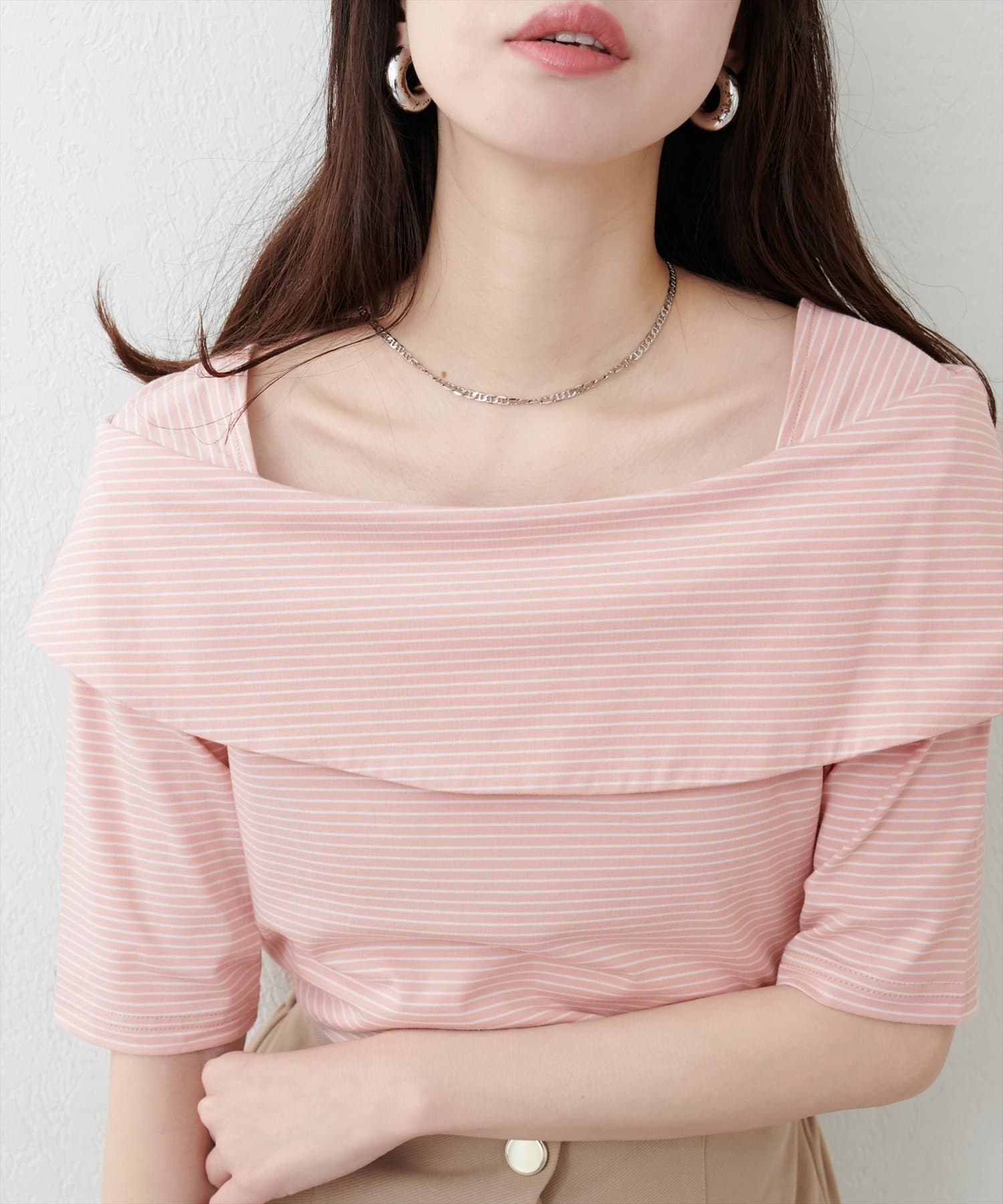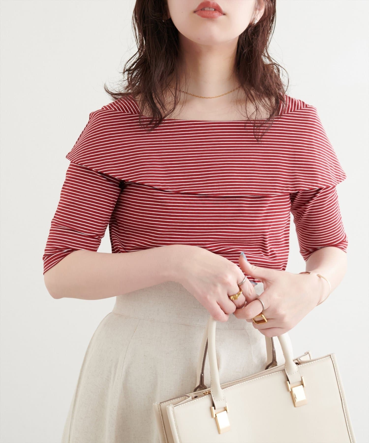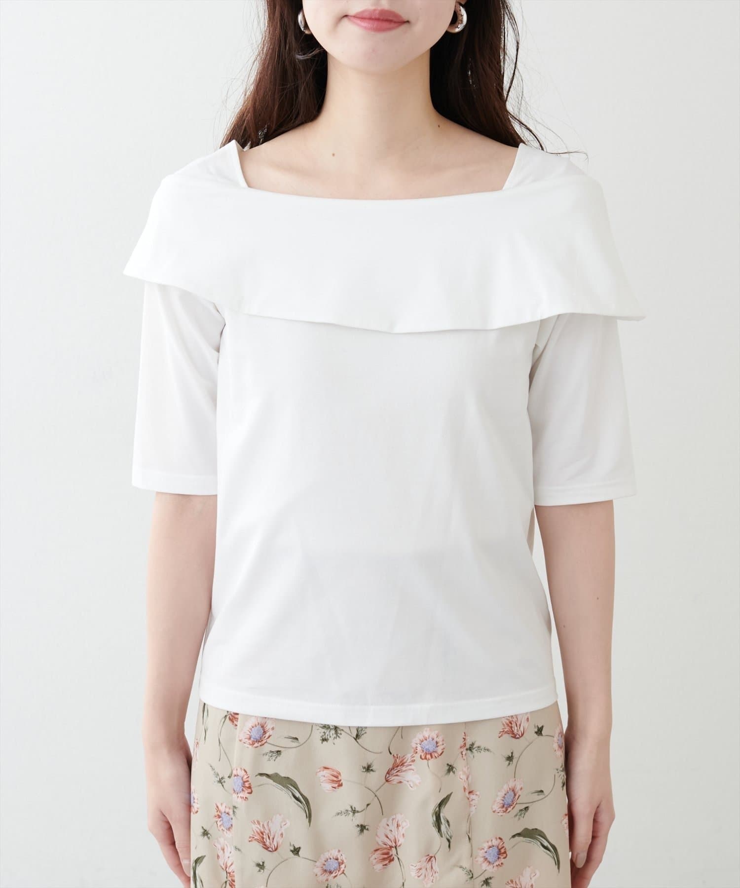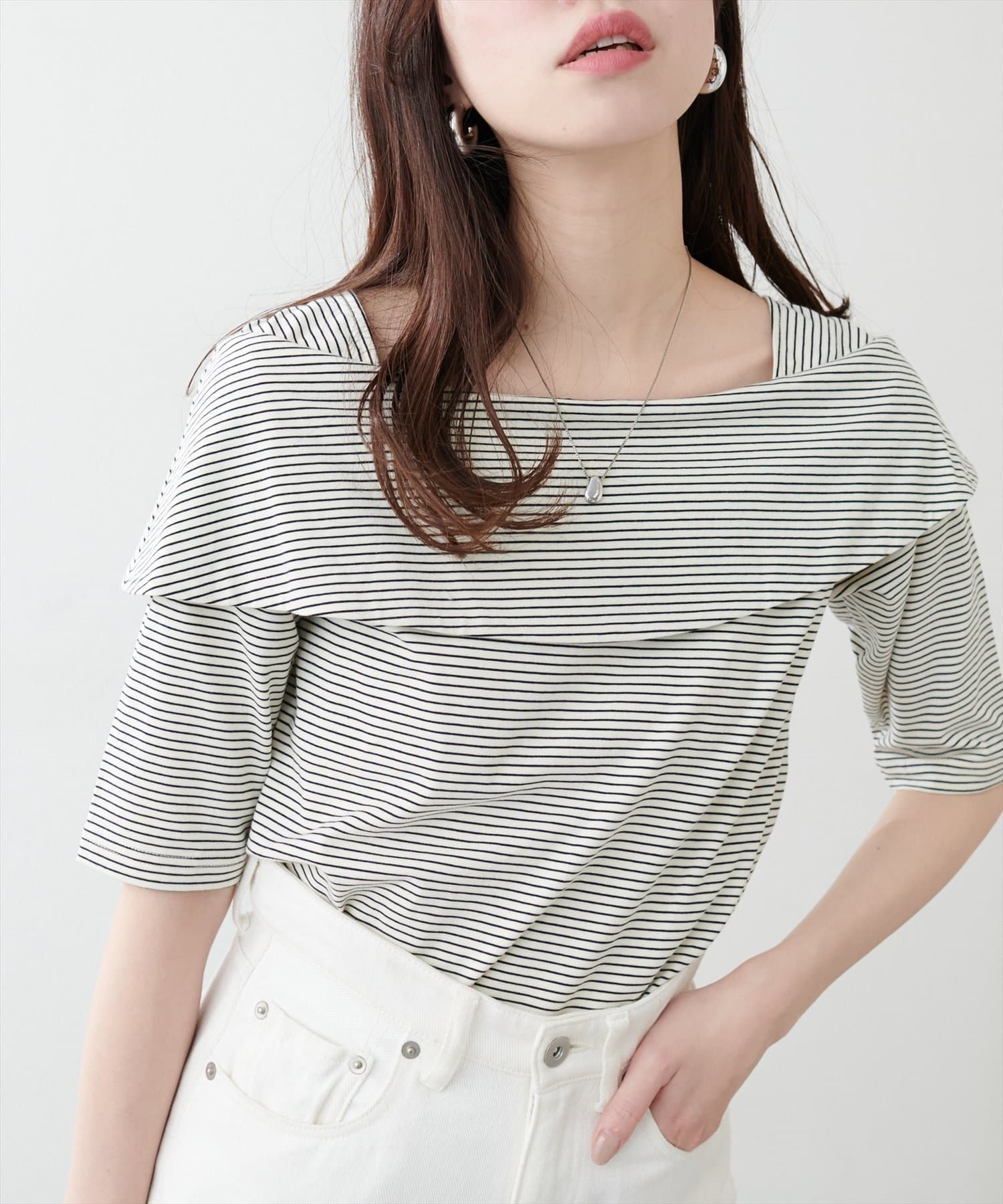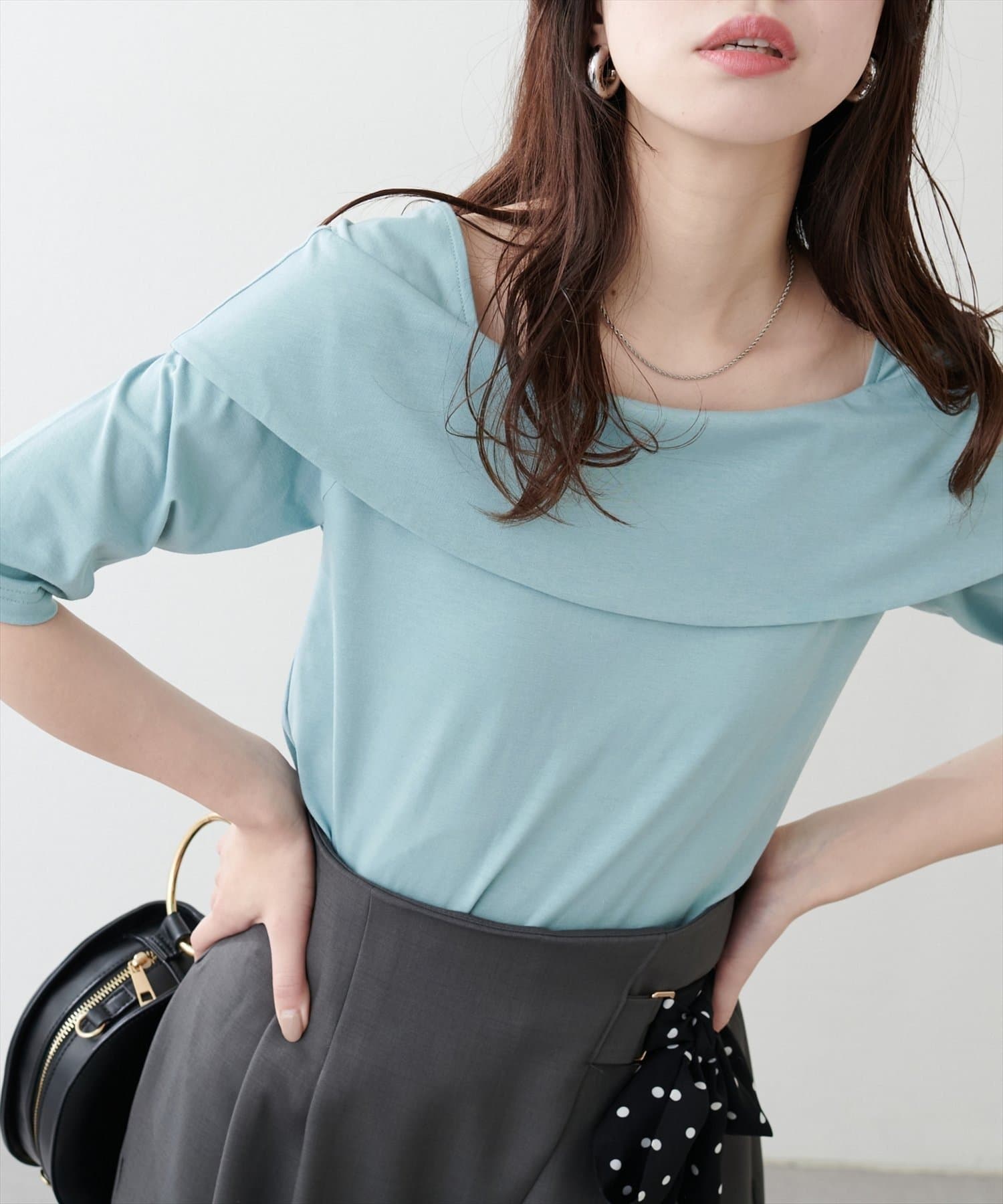 オフショルが苦手な人でも着やすいオフショル風トップス。