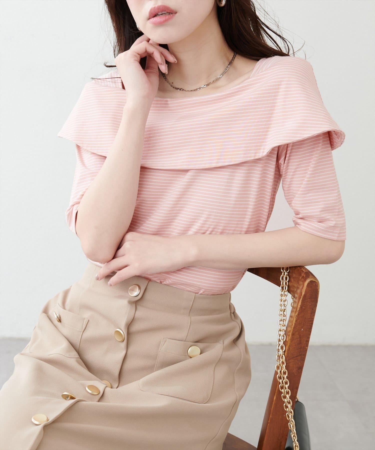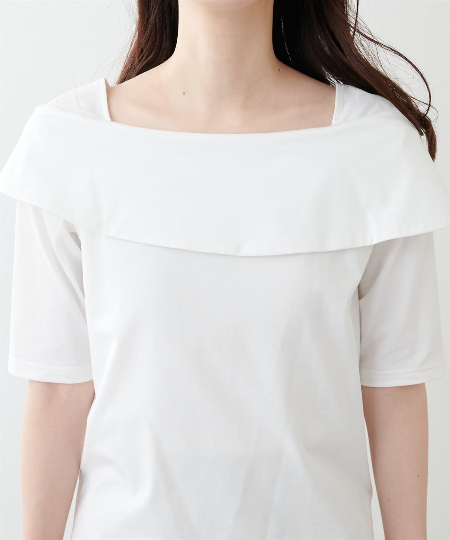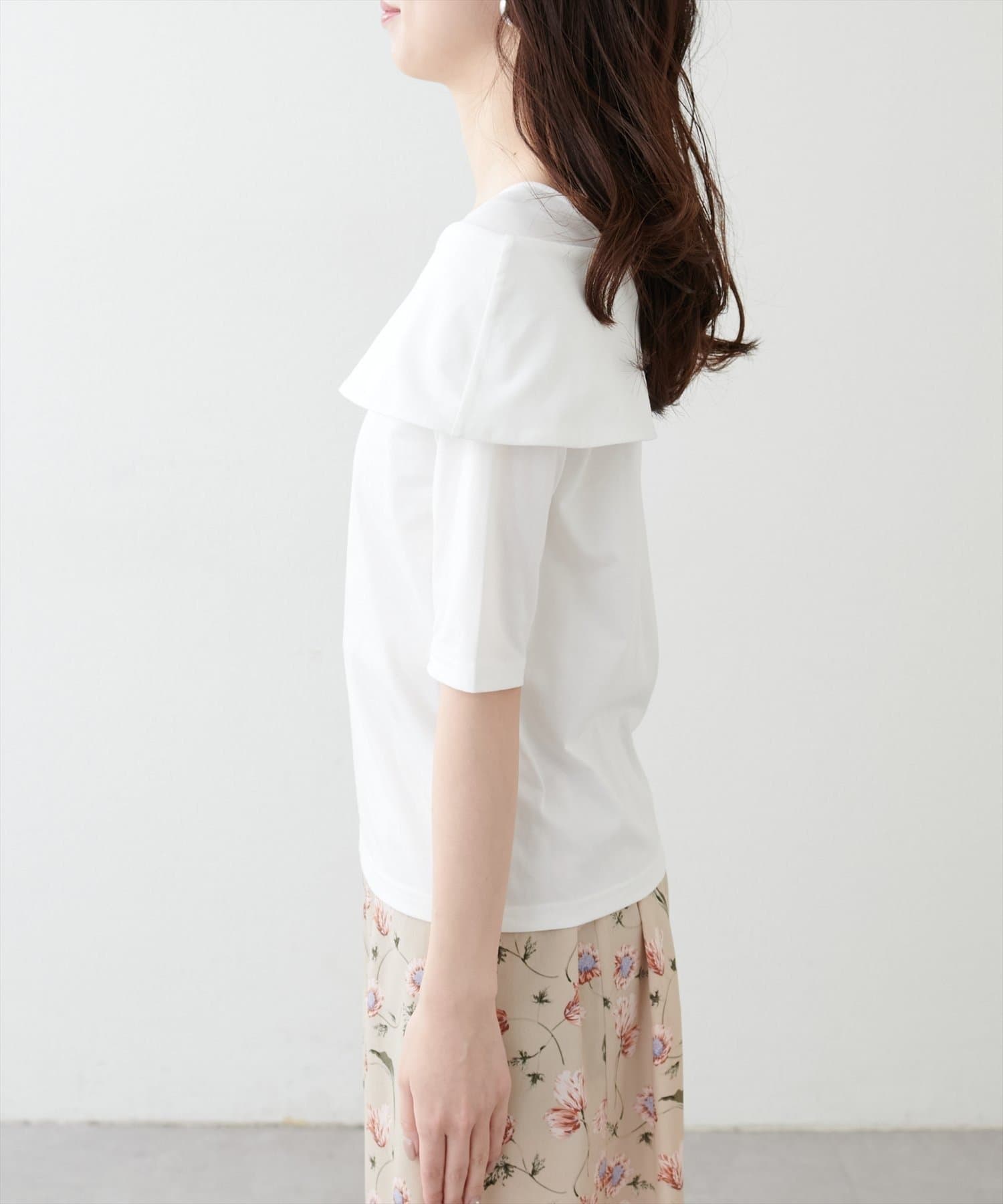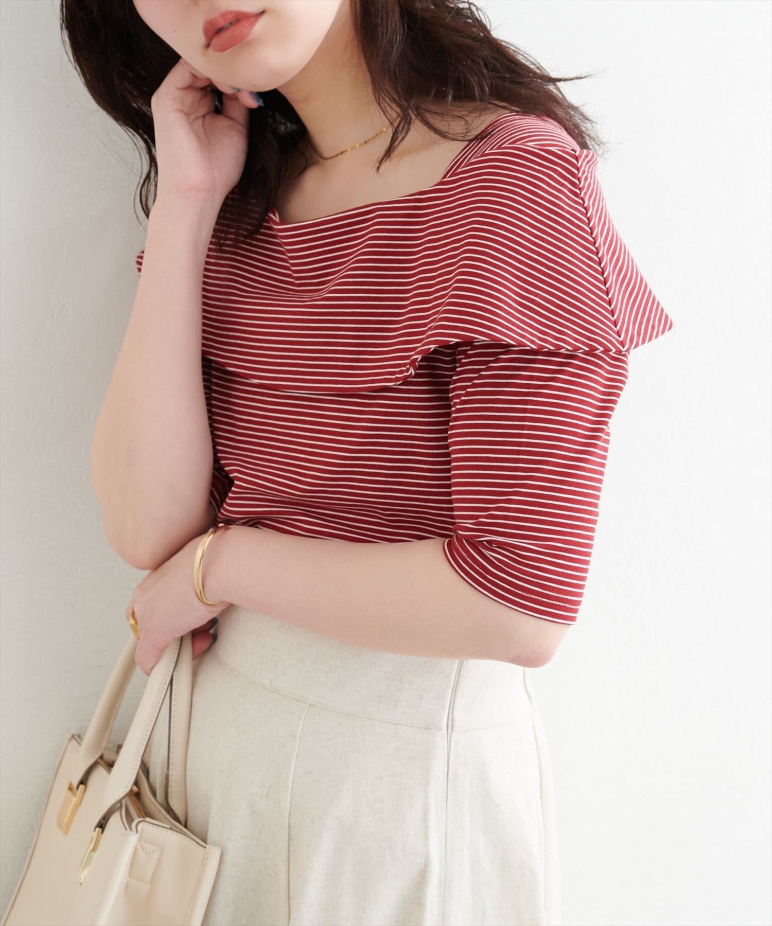 オフショルが苦手な人でも着やすいオフショル風トップス。