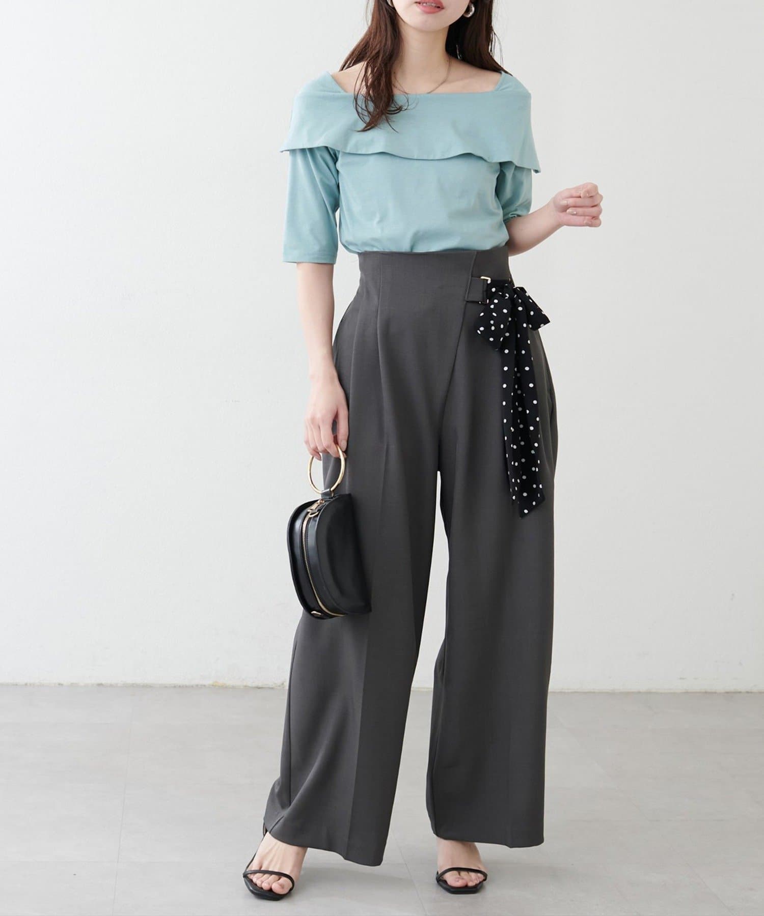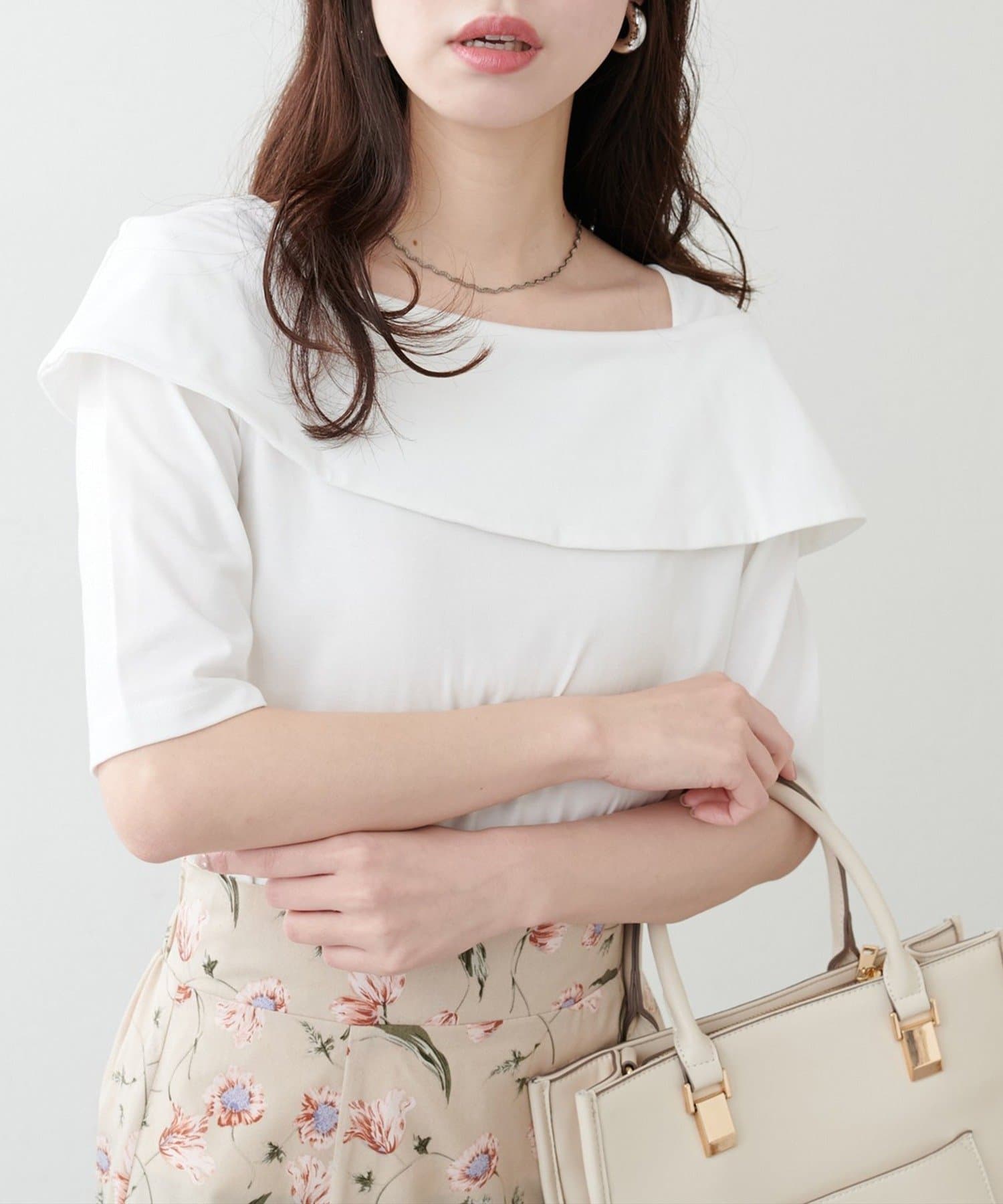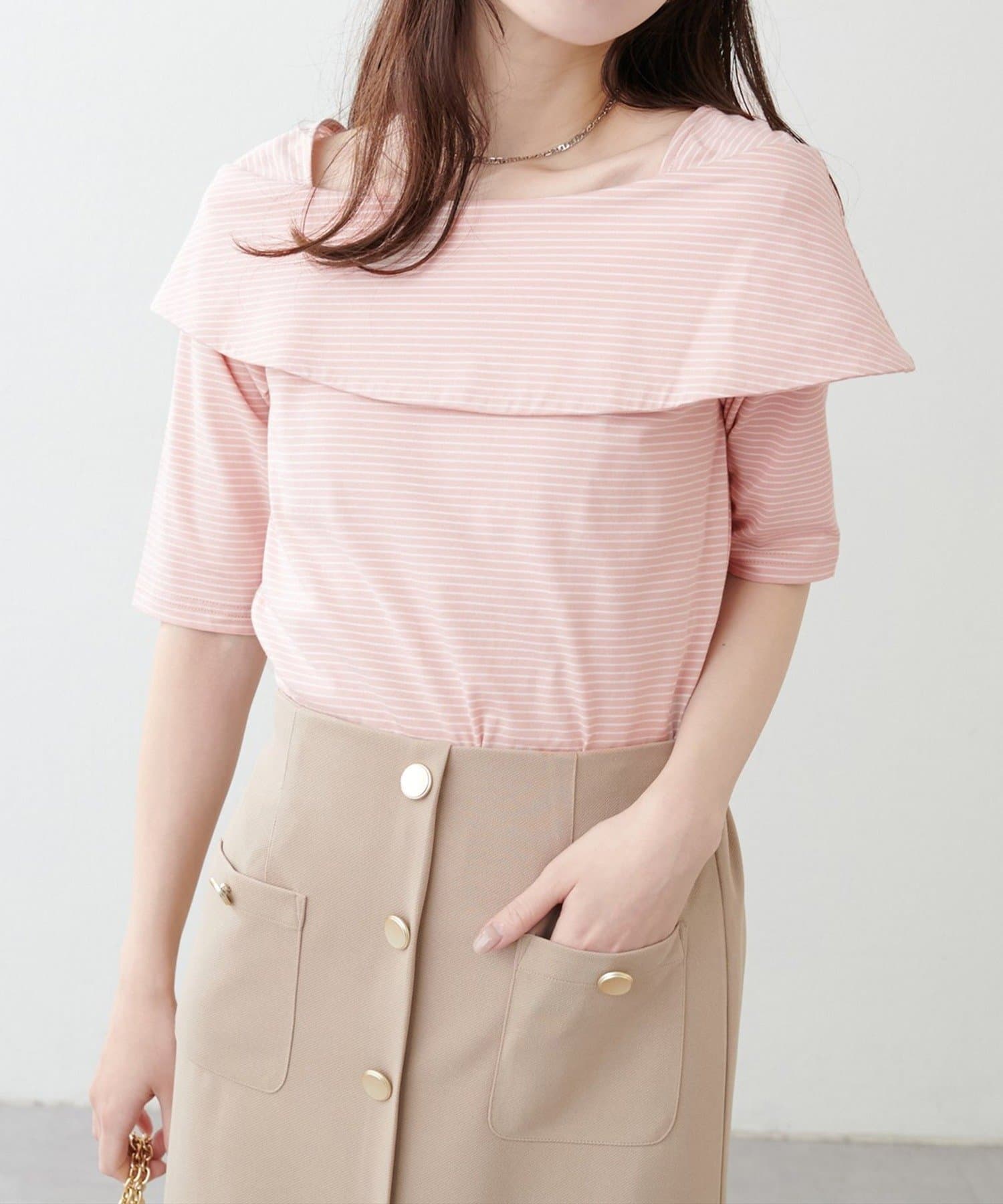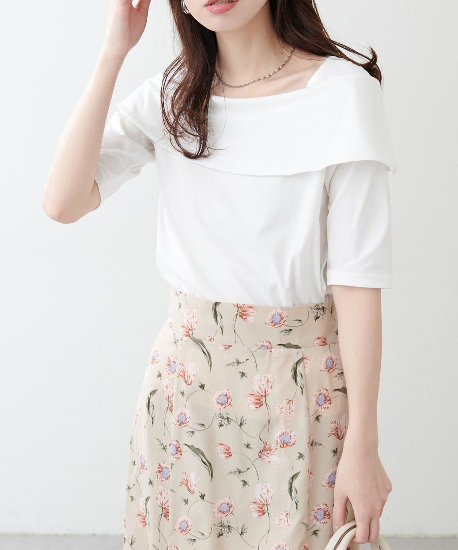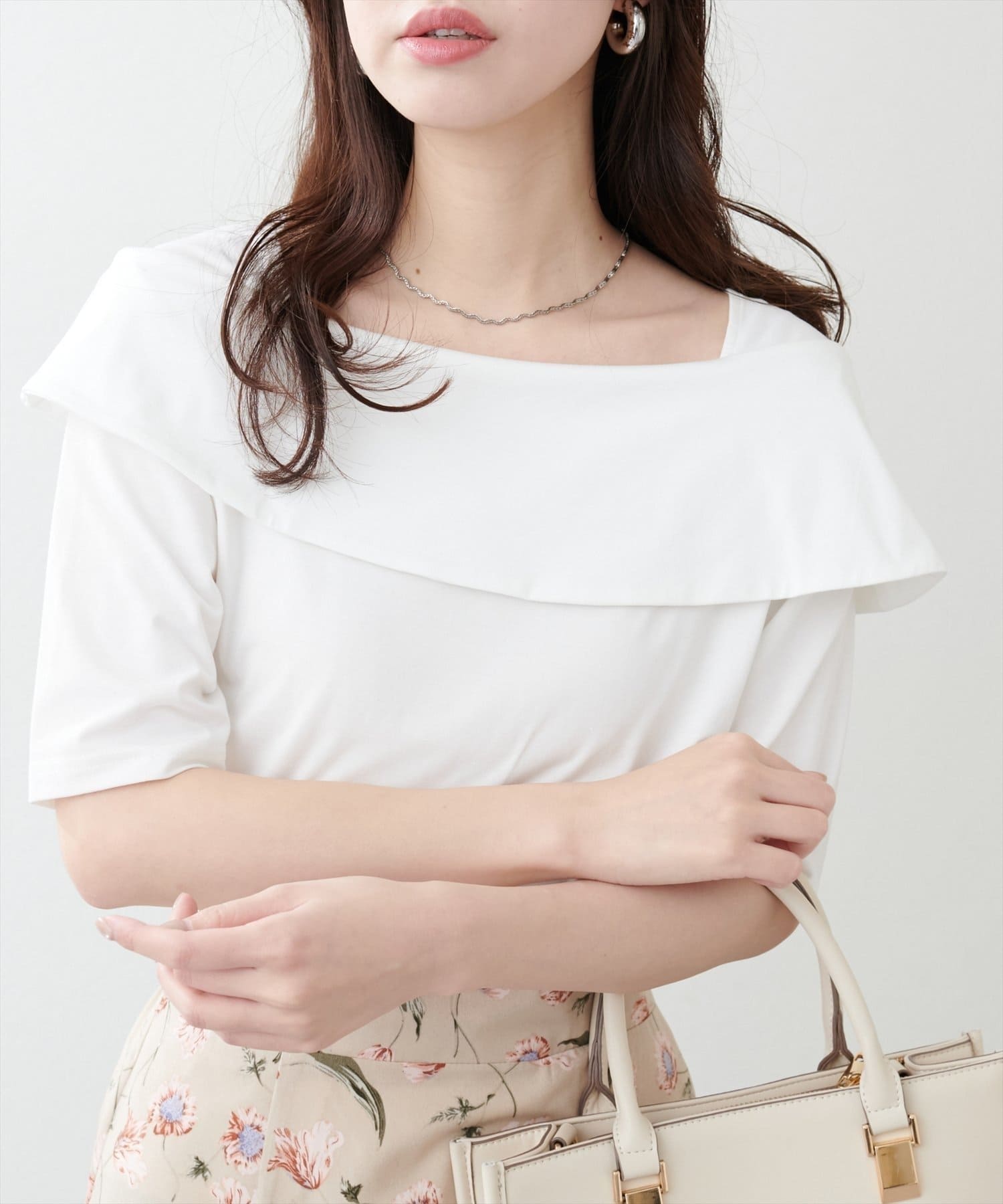 オフショルが苦手な人でも着やすいオフショル風トップス。