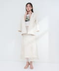 ミニバッグ・華奢なパンプスを合わせるとより清楚な印象に。