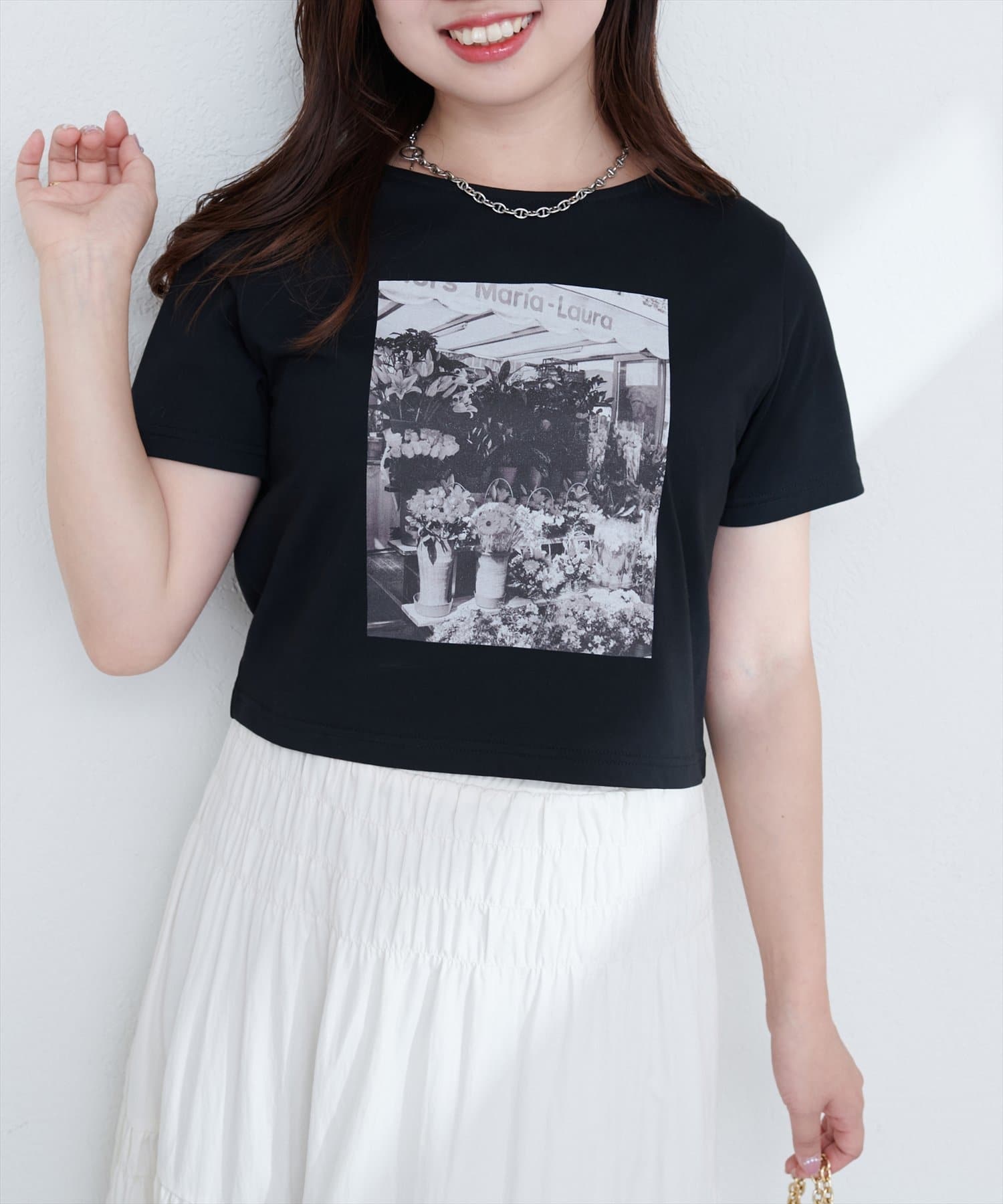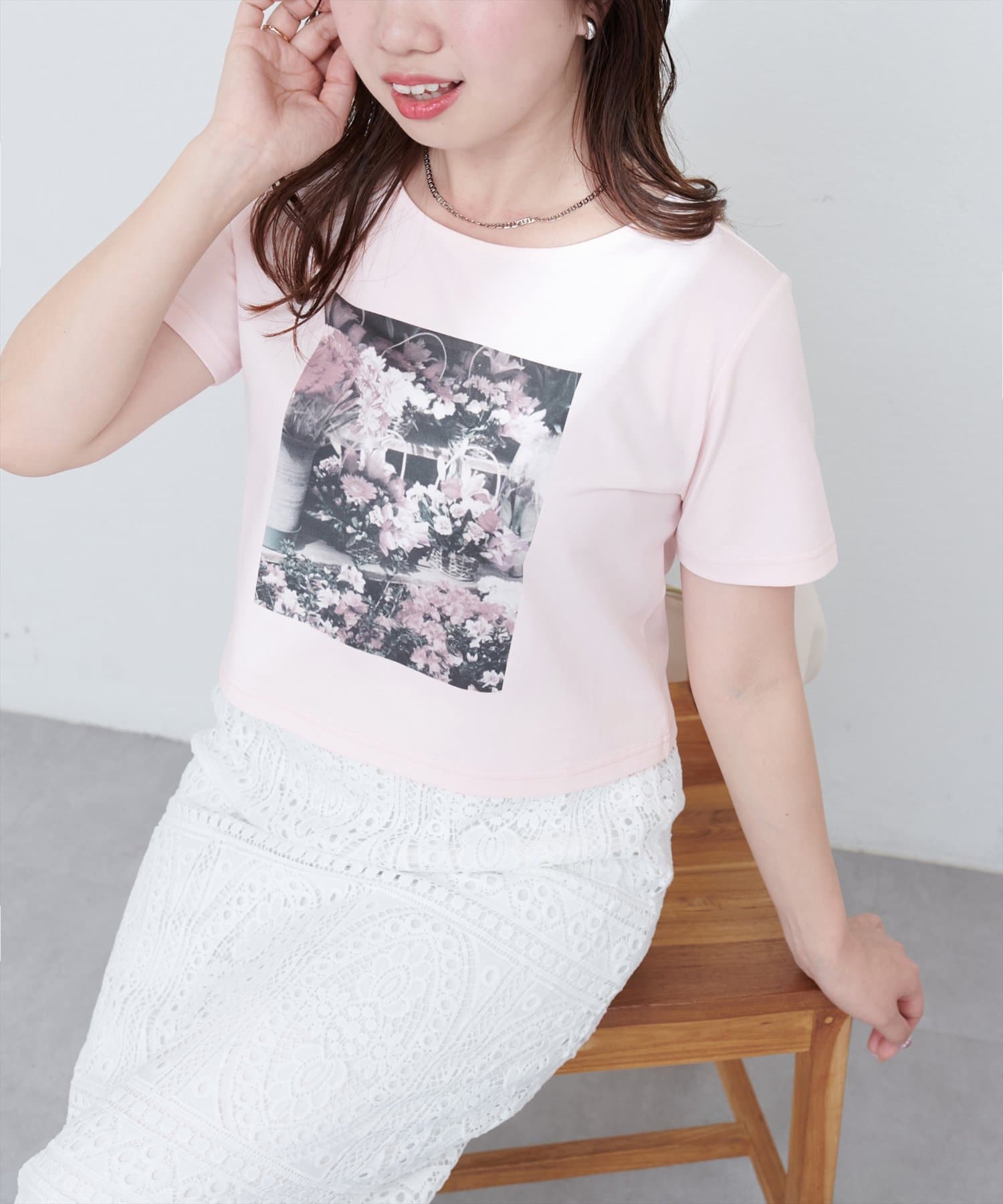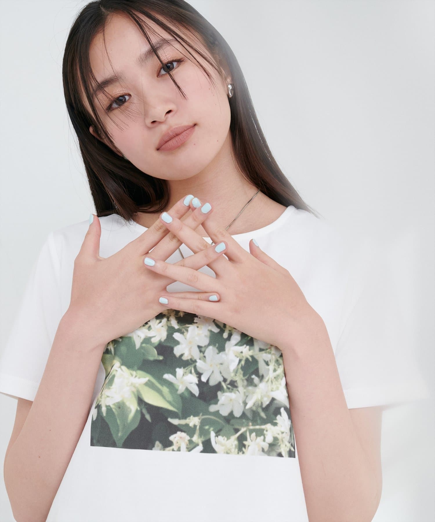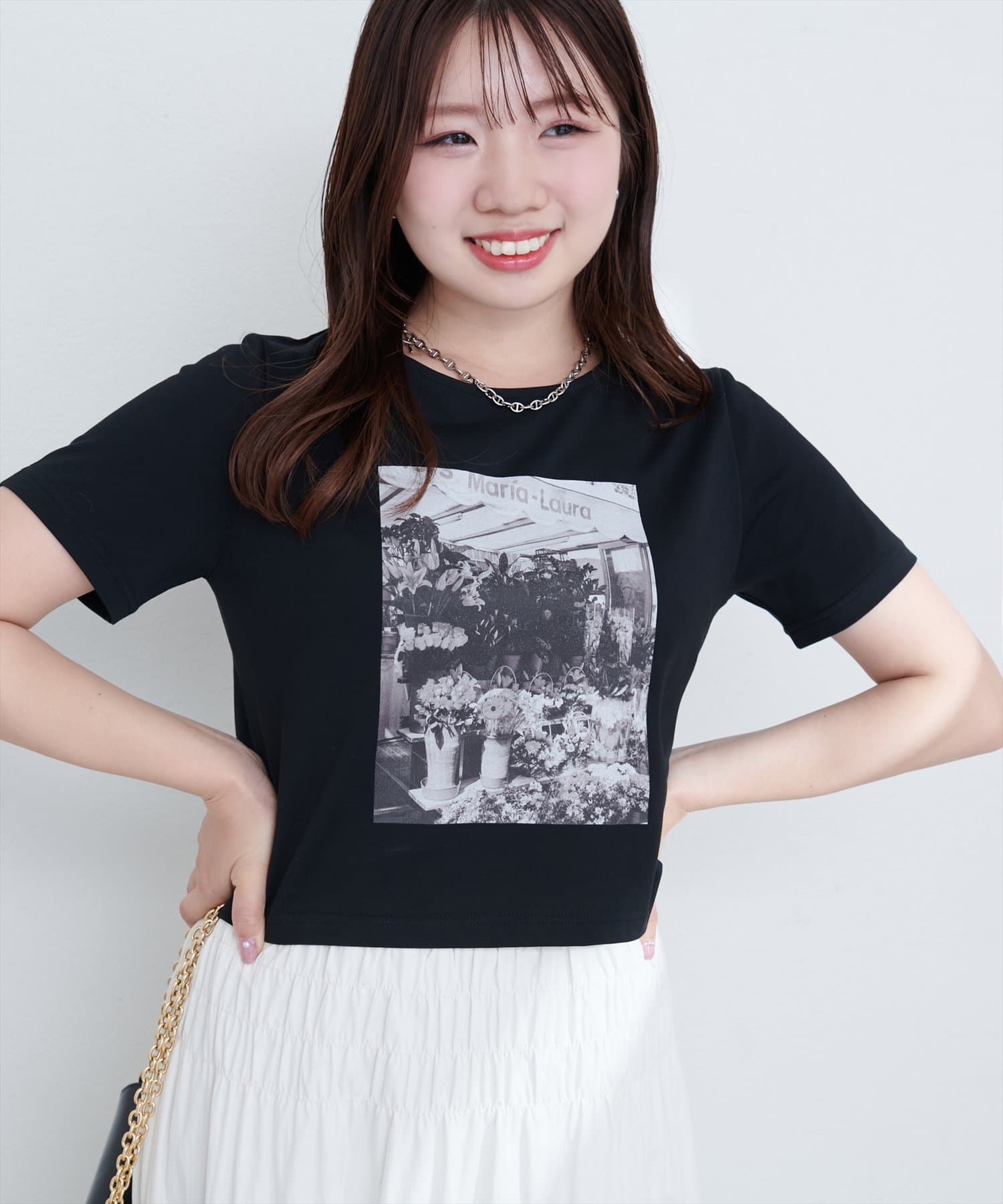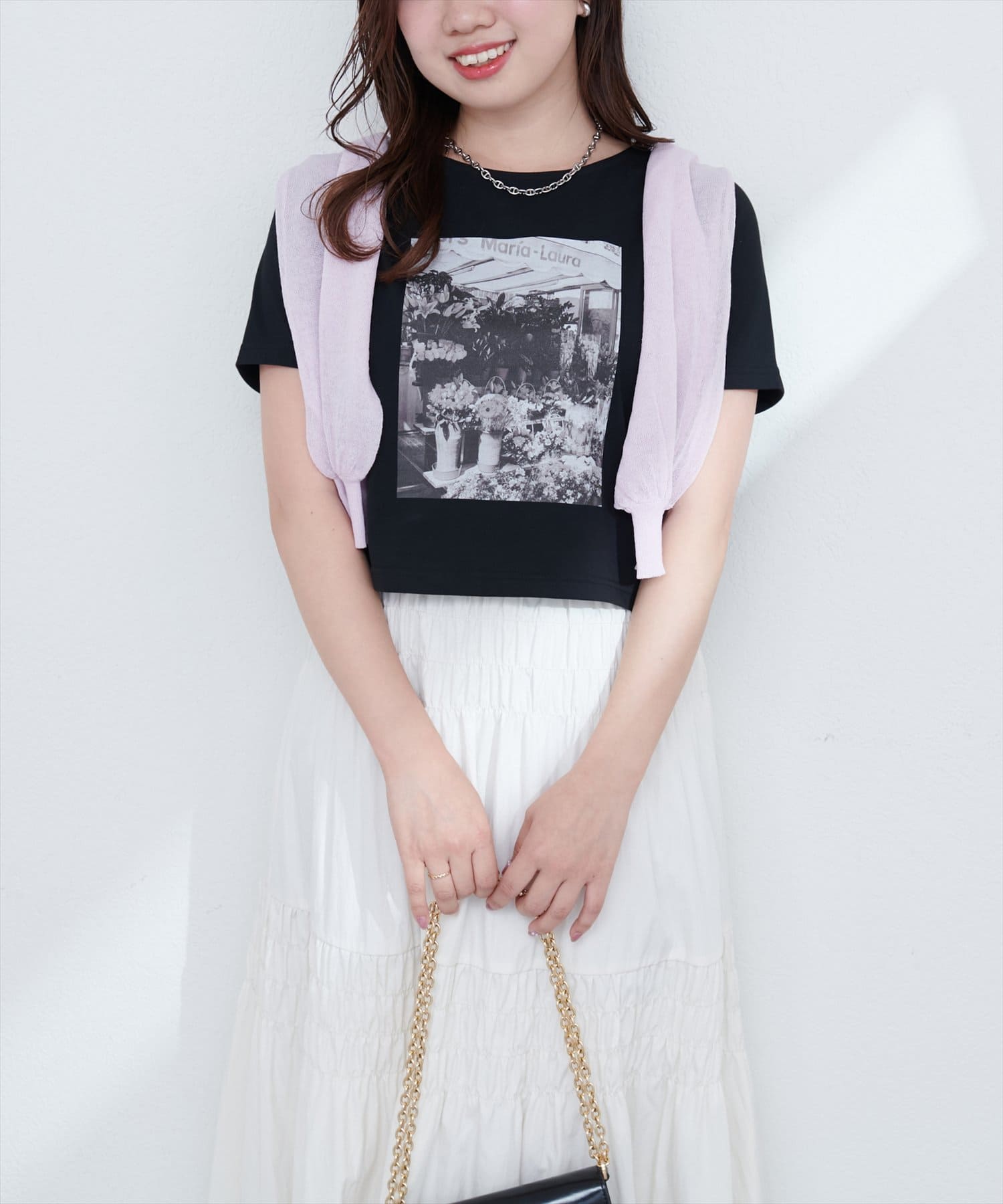 中央のフォトプリントが大人っぽく、甘すぎずおしゃれなアクセント。