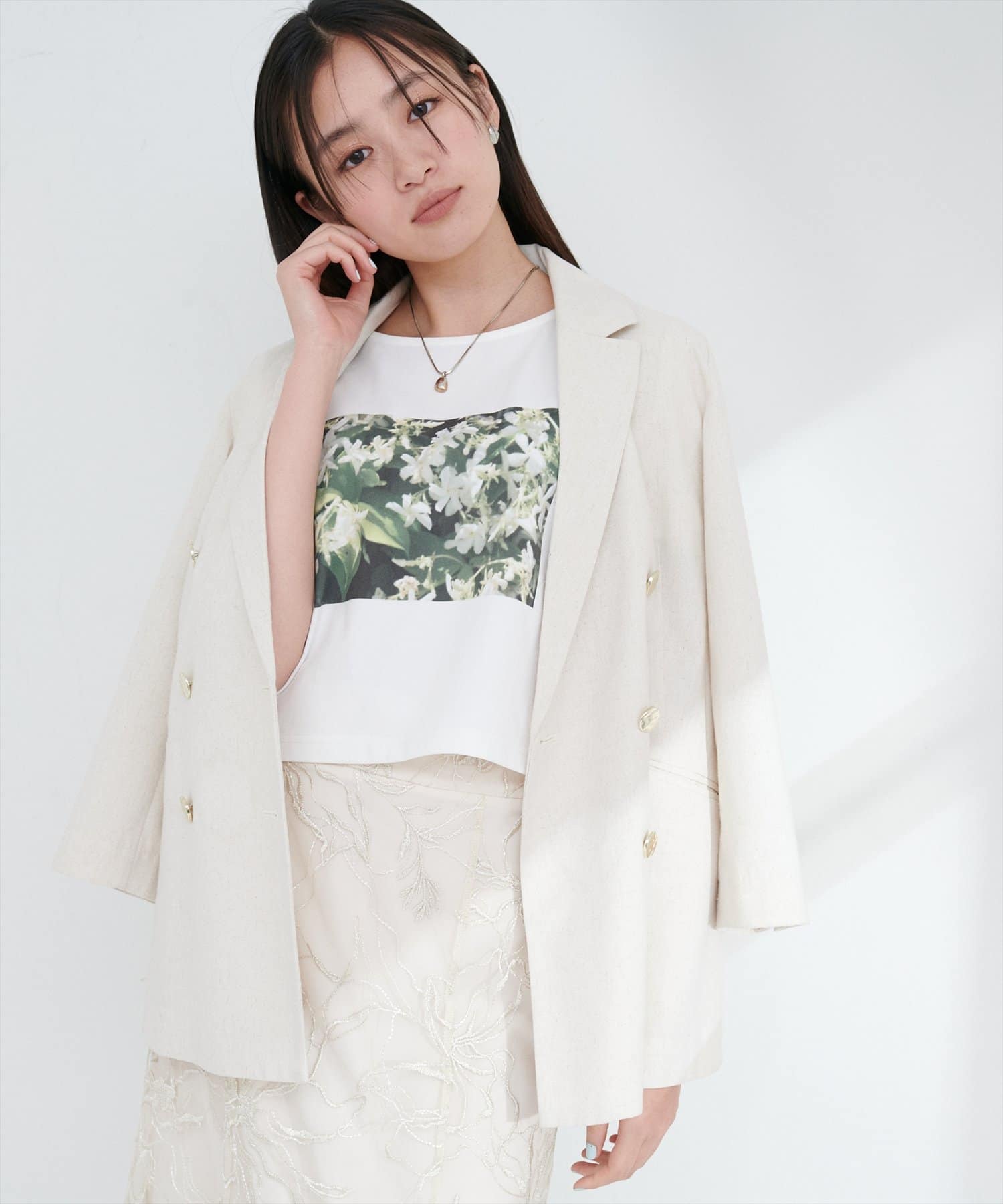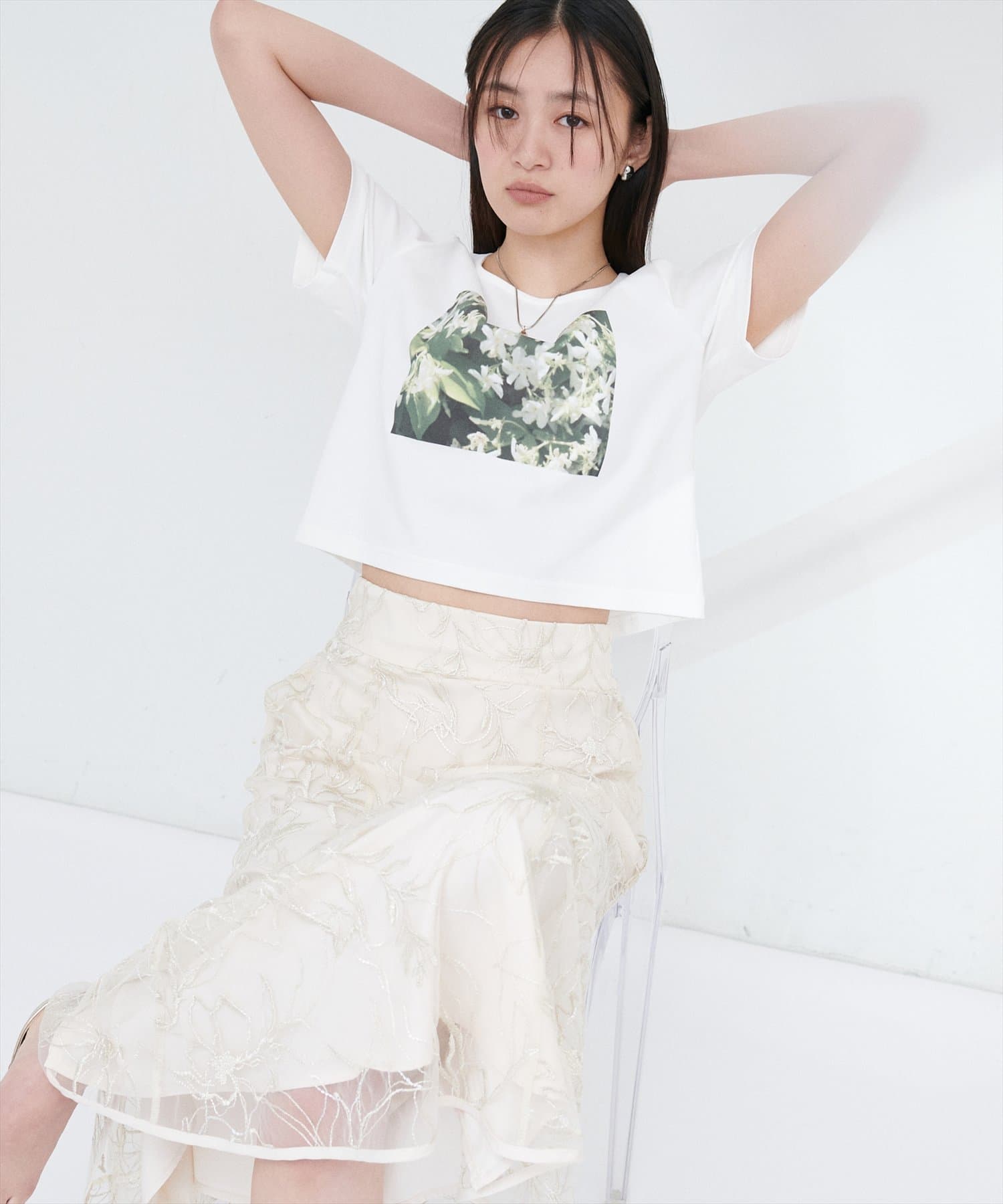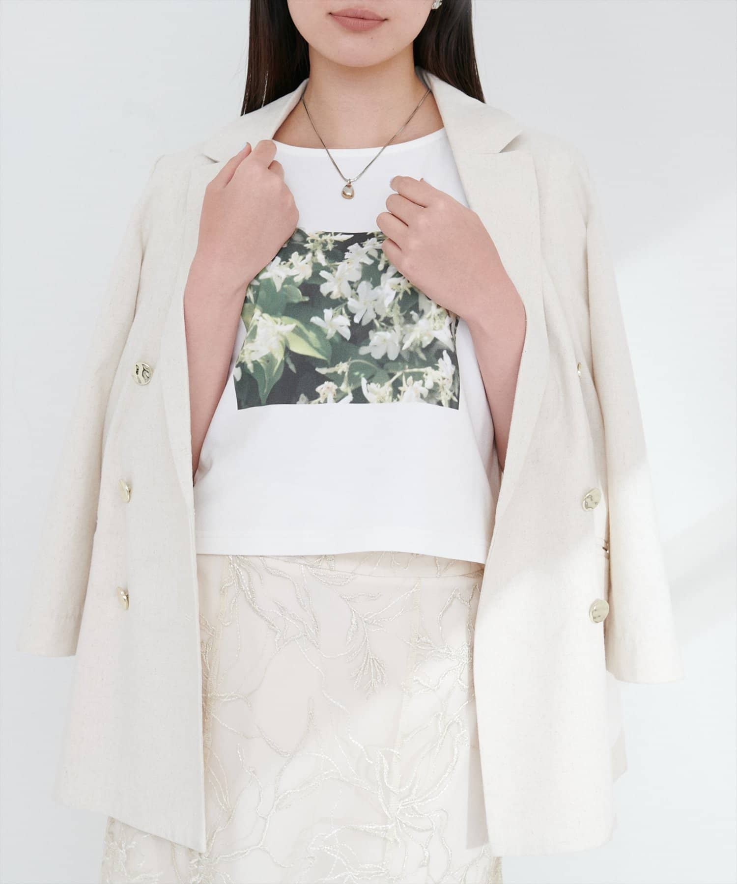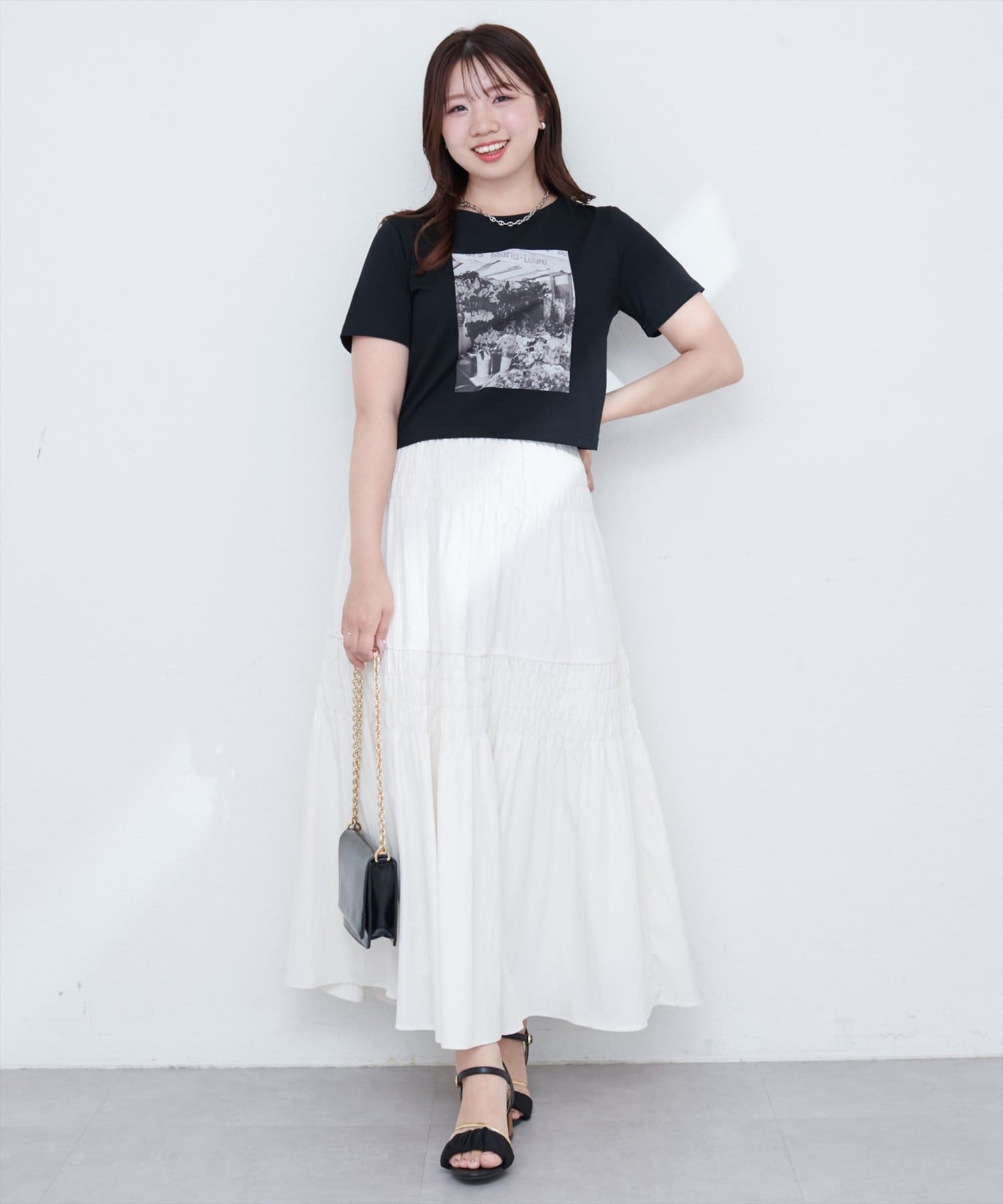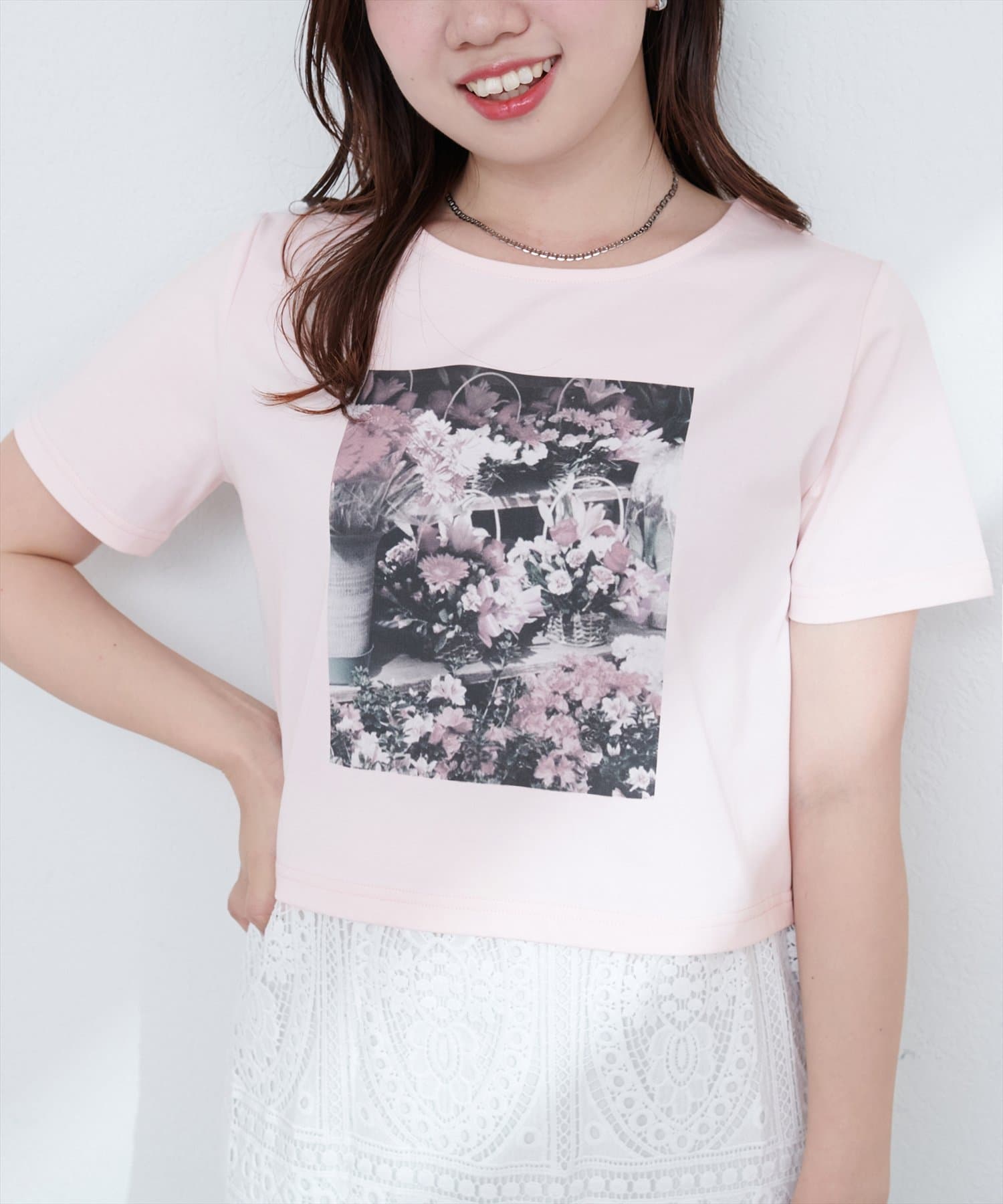 中央のフォトプリントが大人っぽく、甘すぎずおしゃれなアクセント。