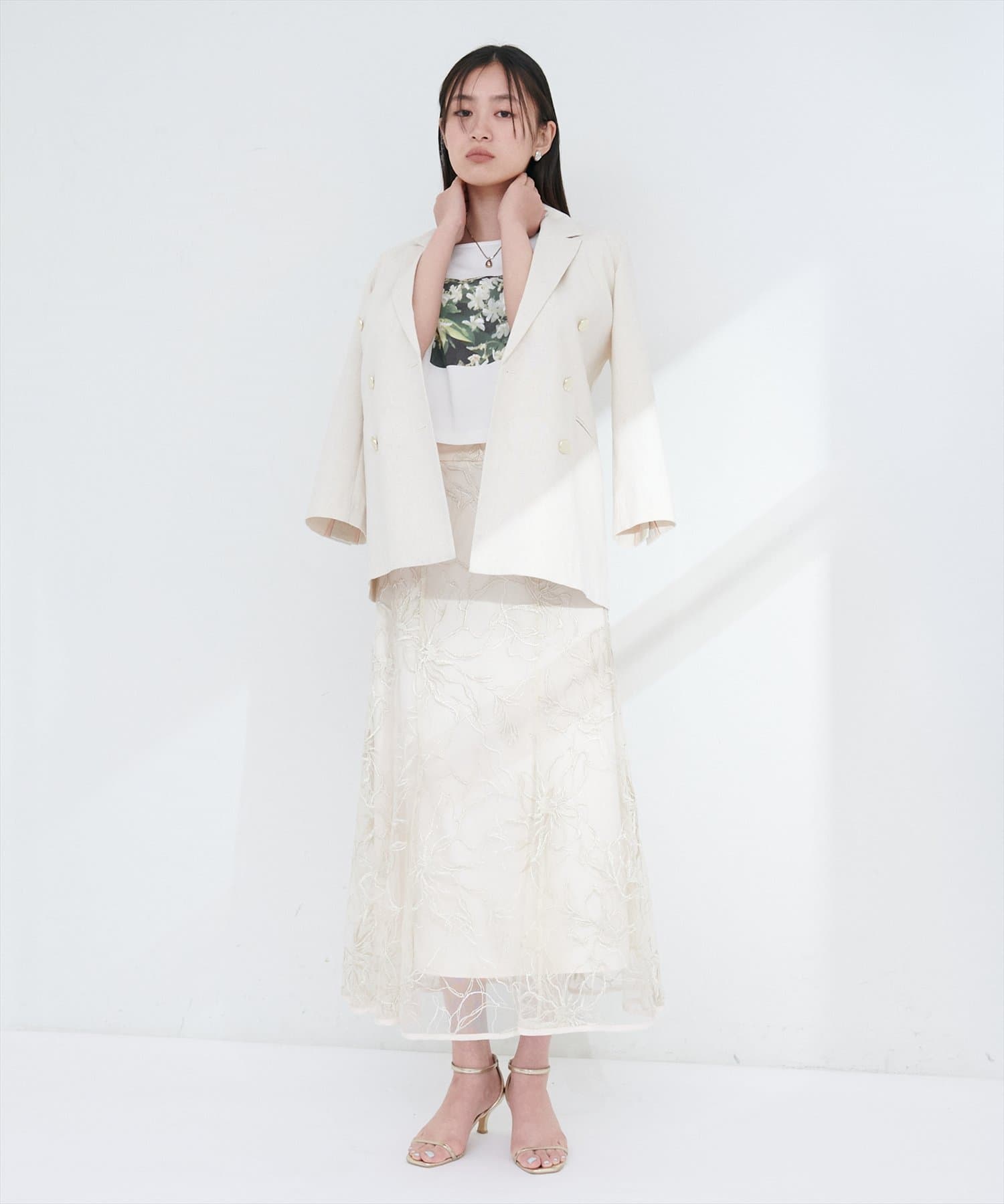 トレンドのショート丈が、ハイウエストのスカートやパンツとの好相性◎