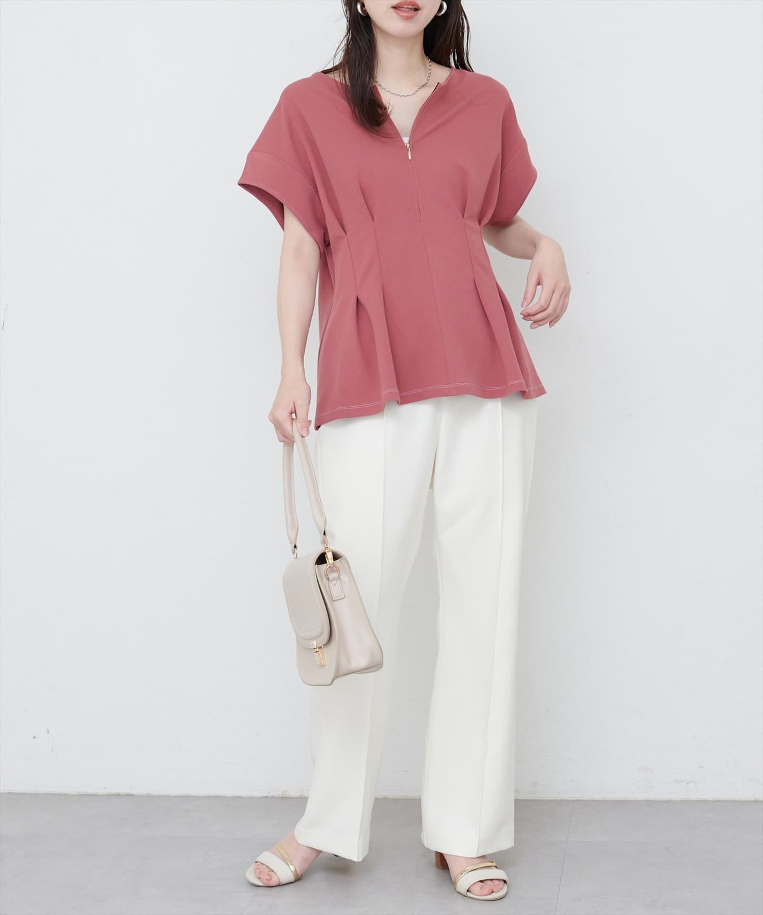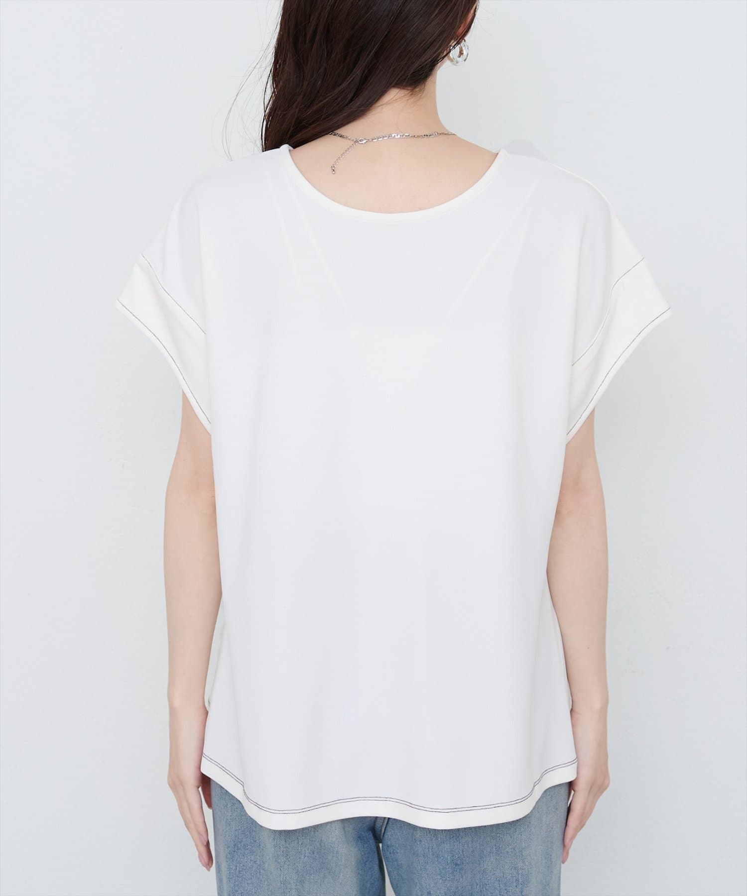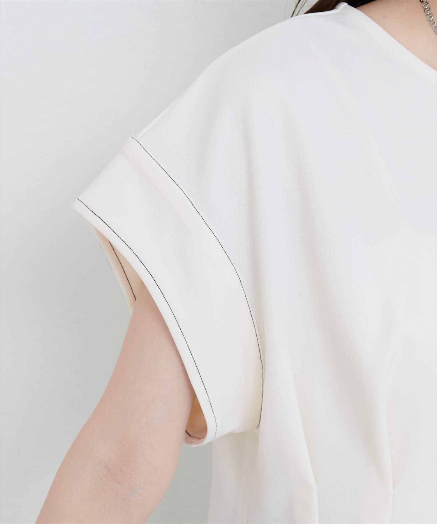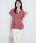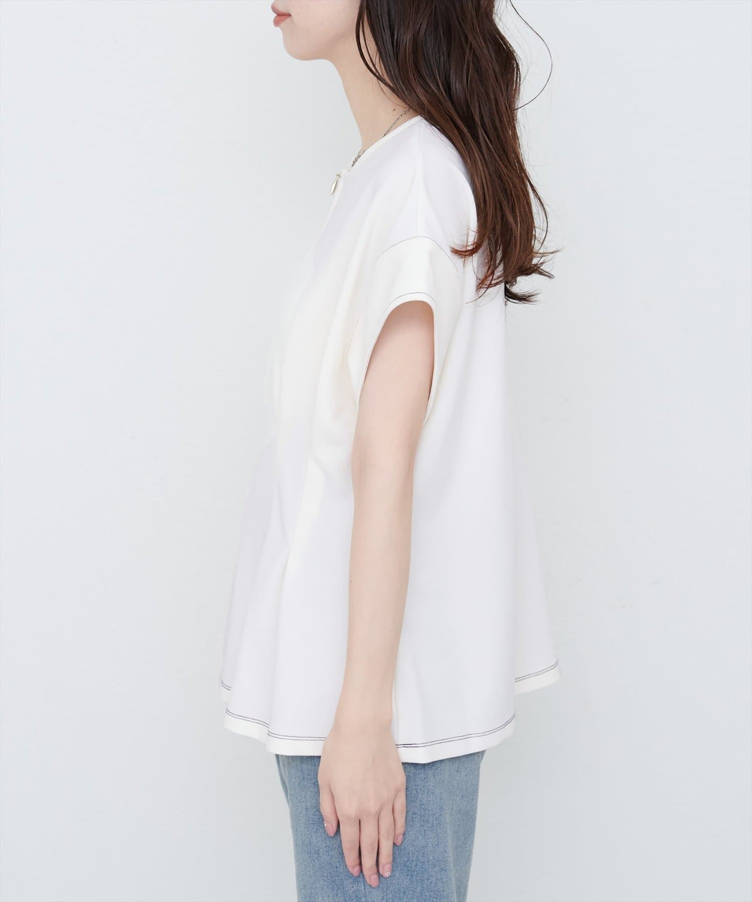 【mamamo】配色ステッチウエストタックカットソー