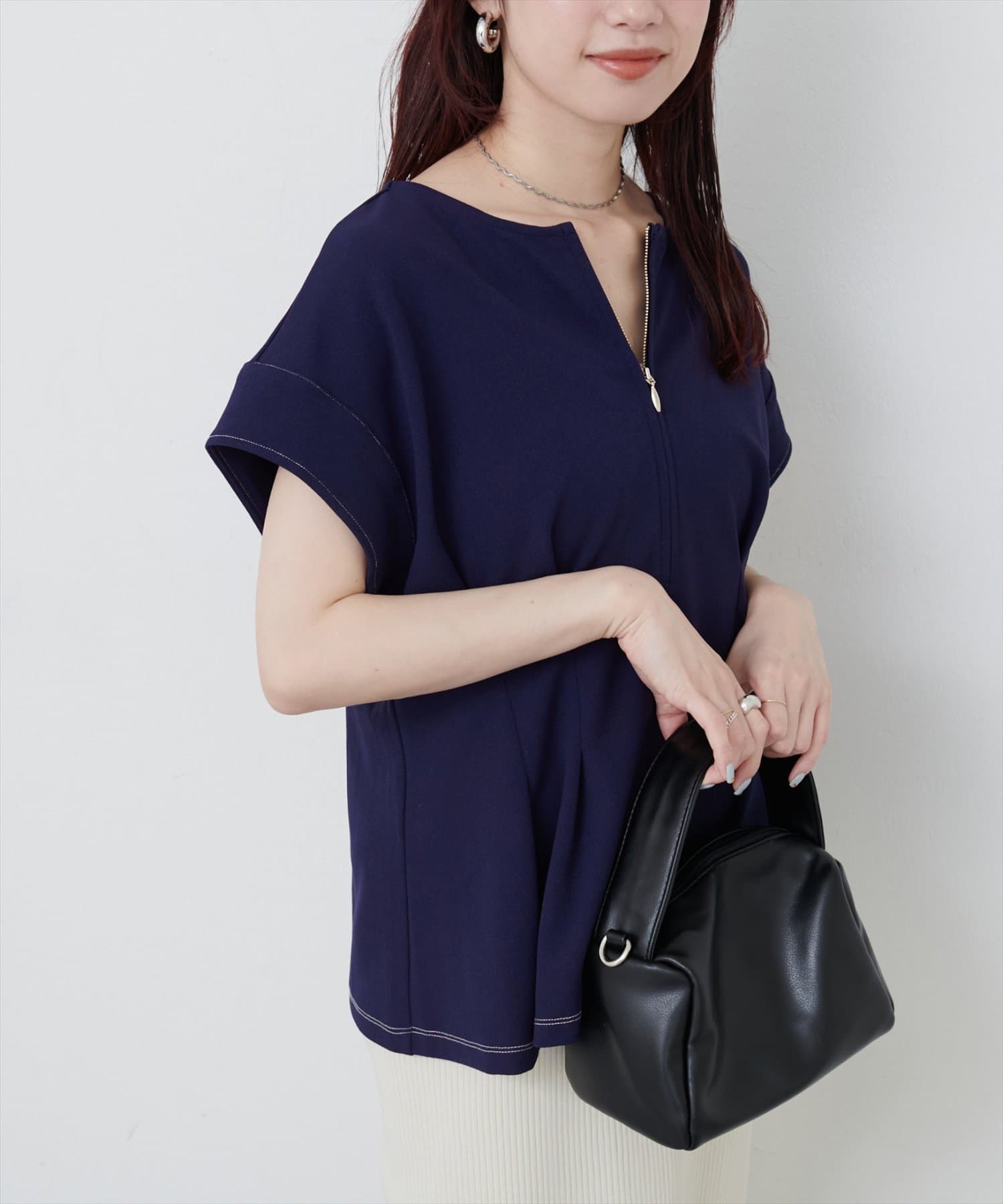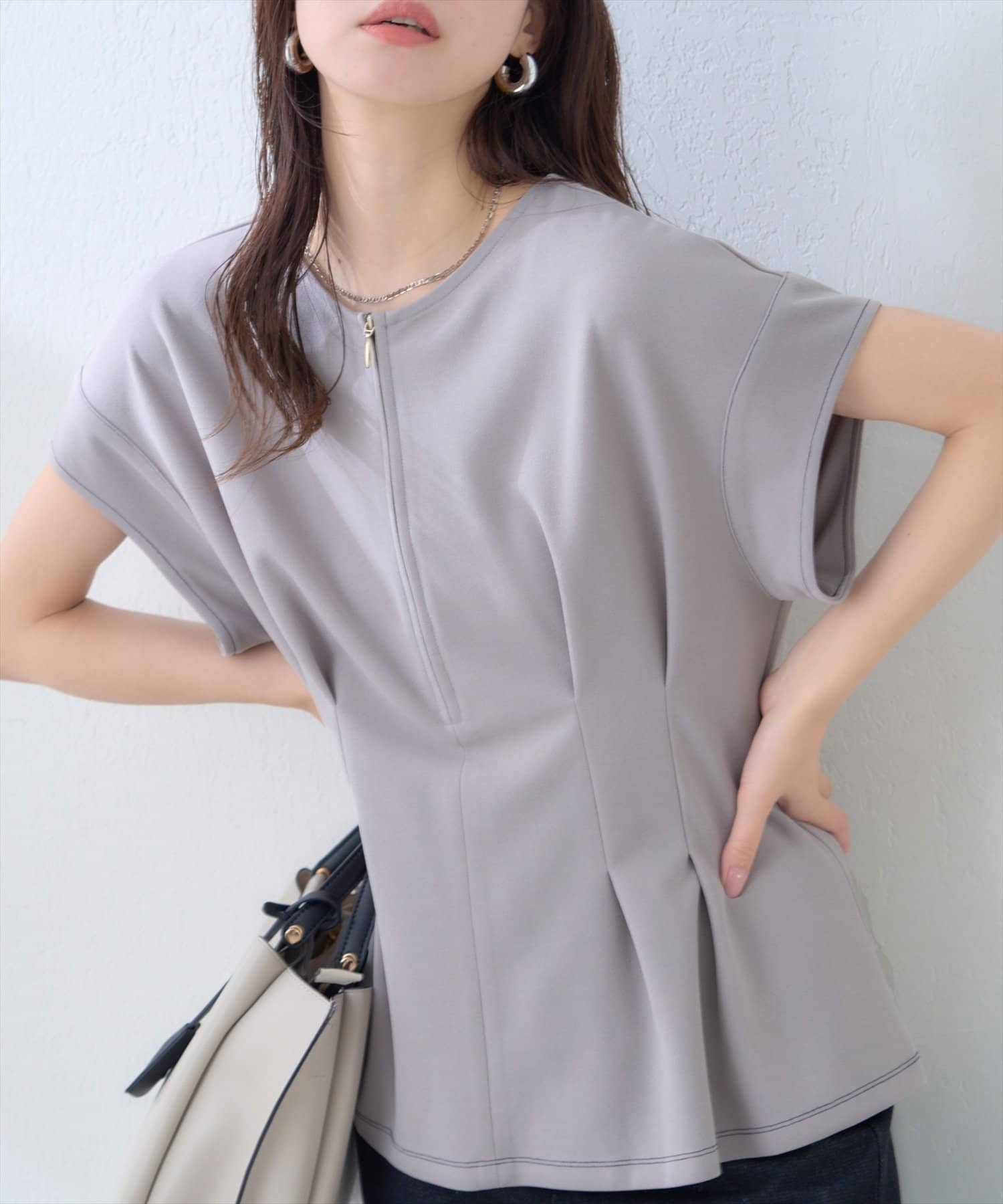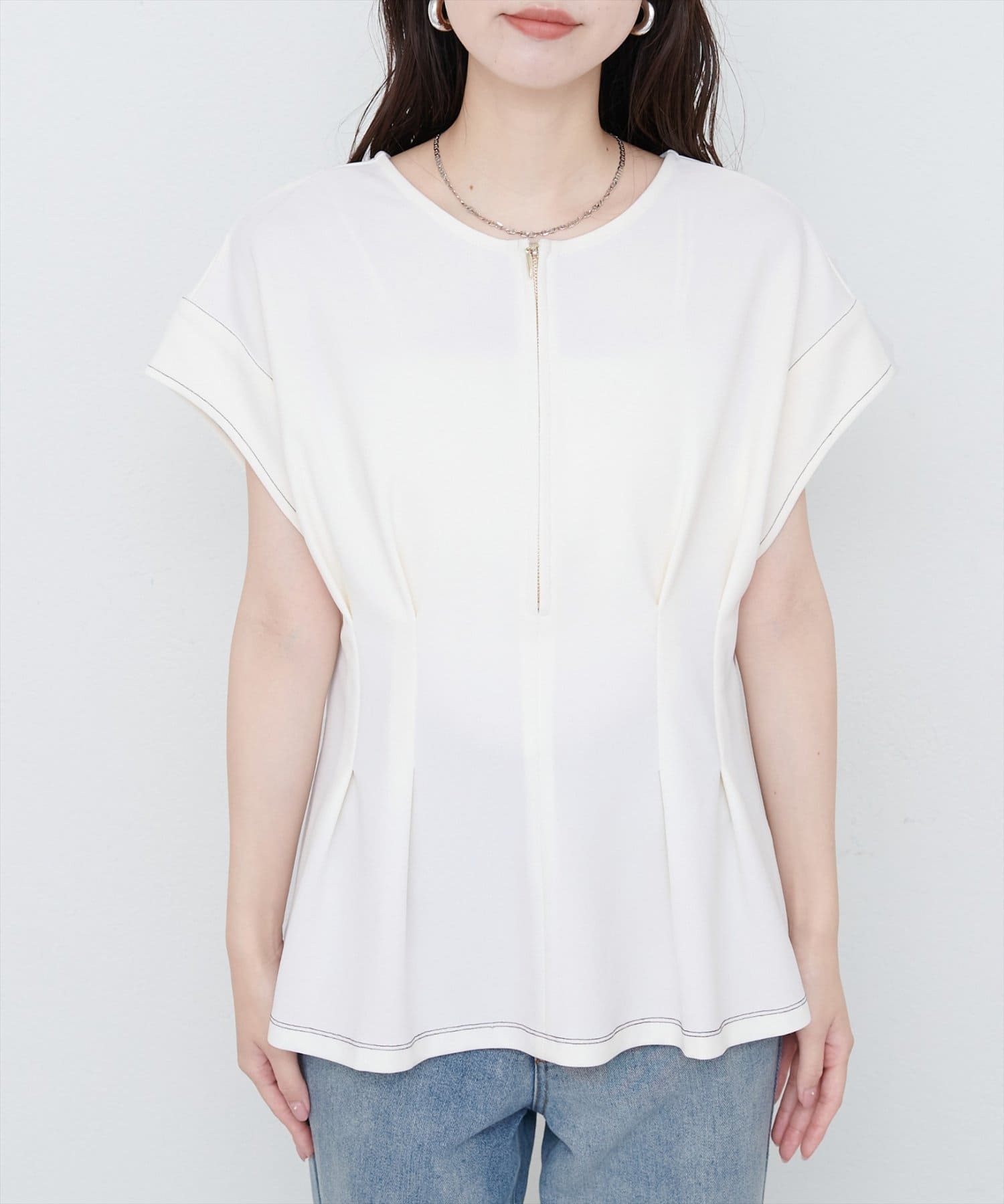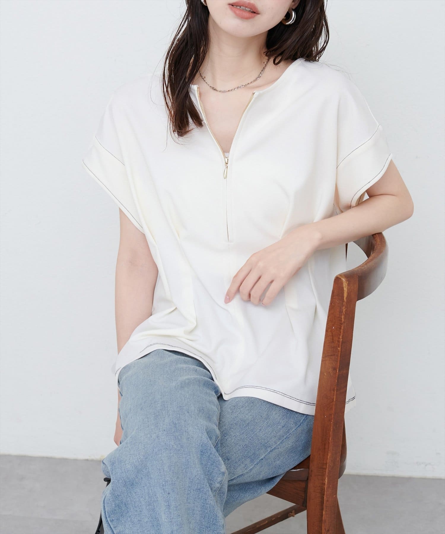 ジップデザインで、クルーネックでもキーネックでもお召頂けるトップス。