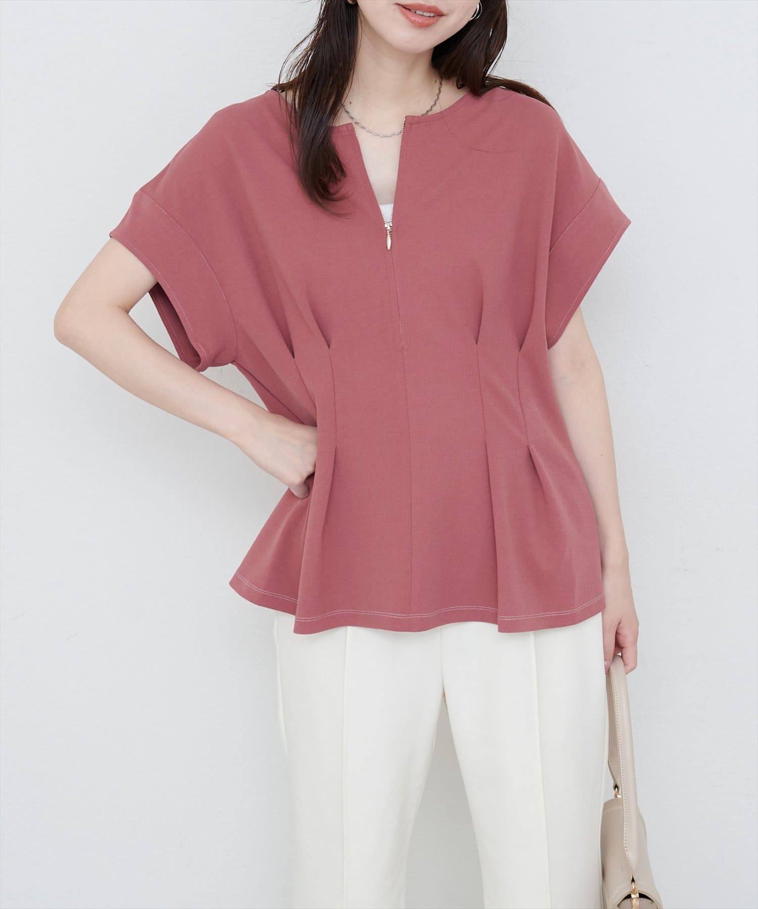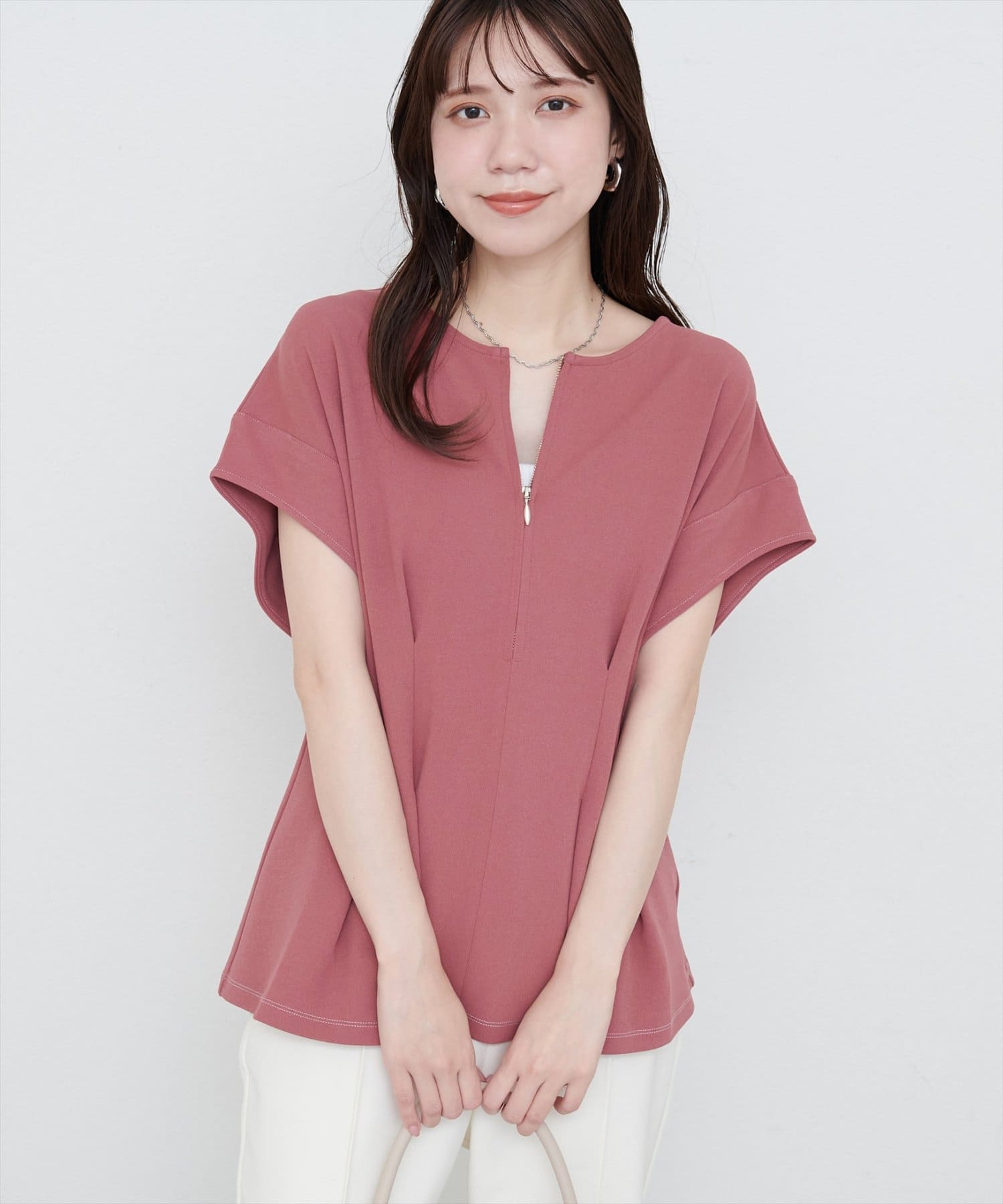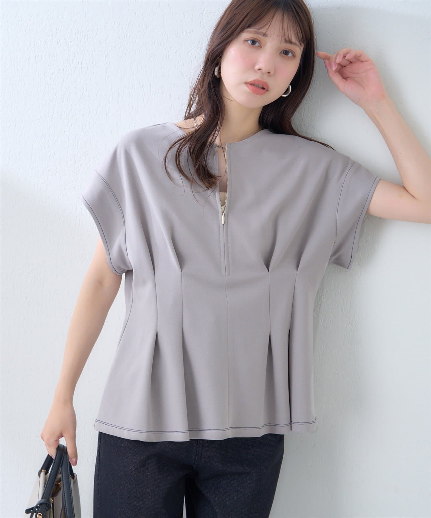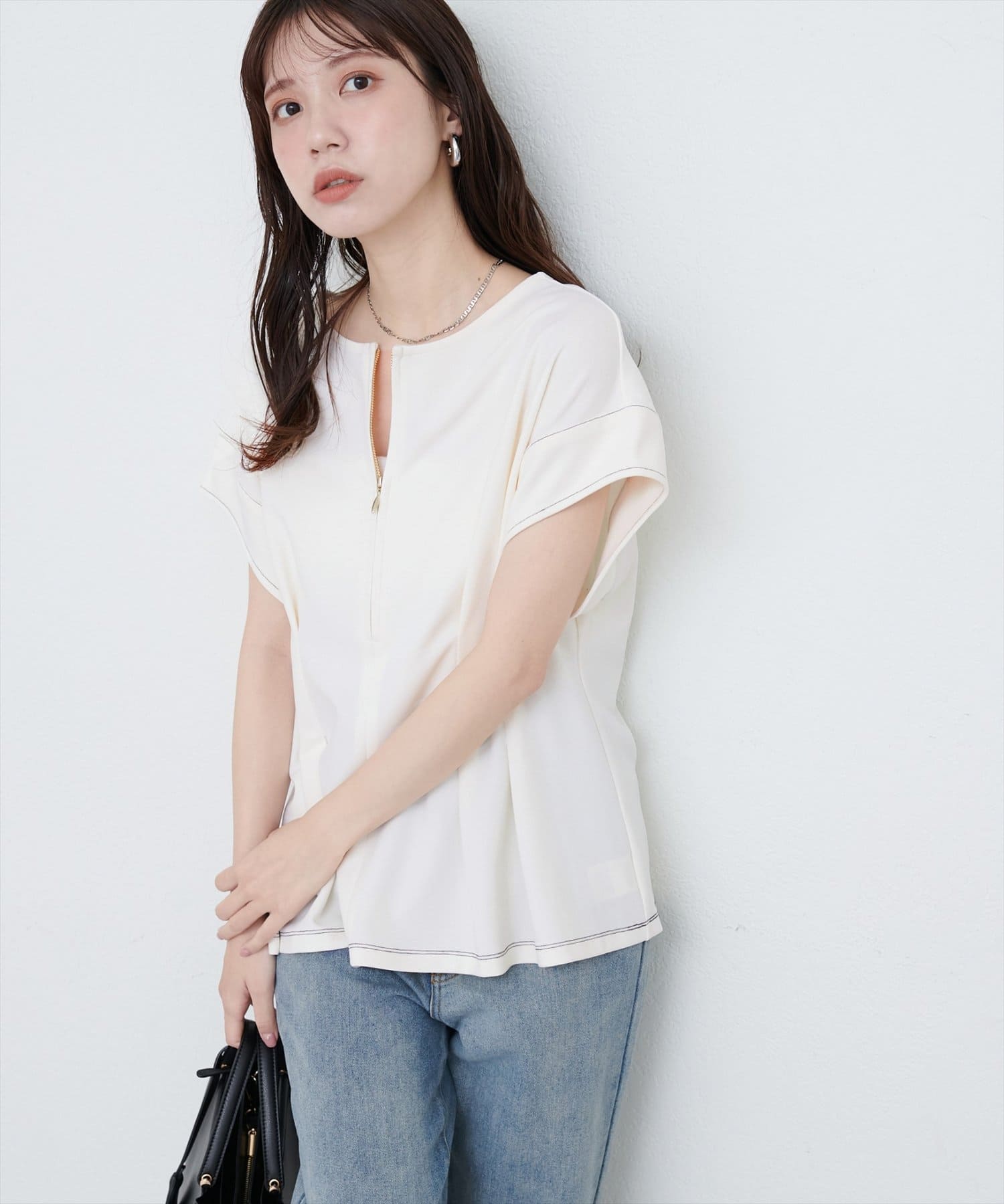 ジップデザインで、クルーネックでもキーネックでもお召頂けるトップス。
