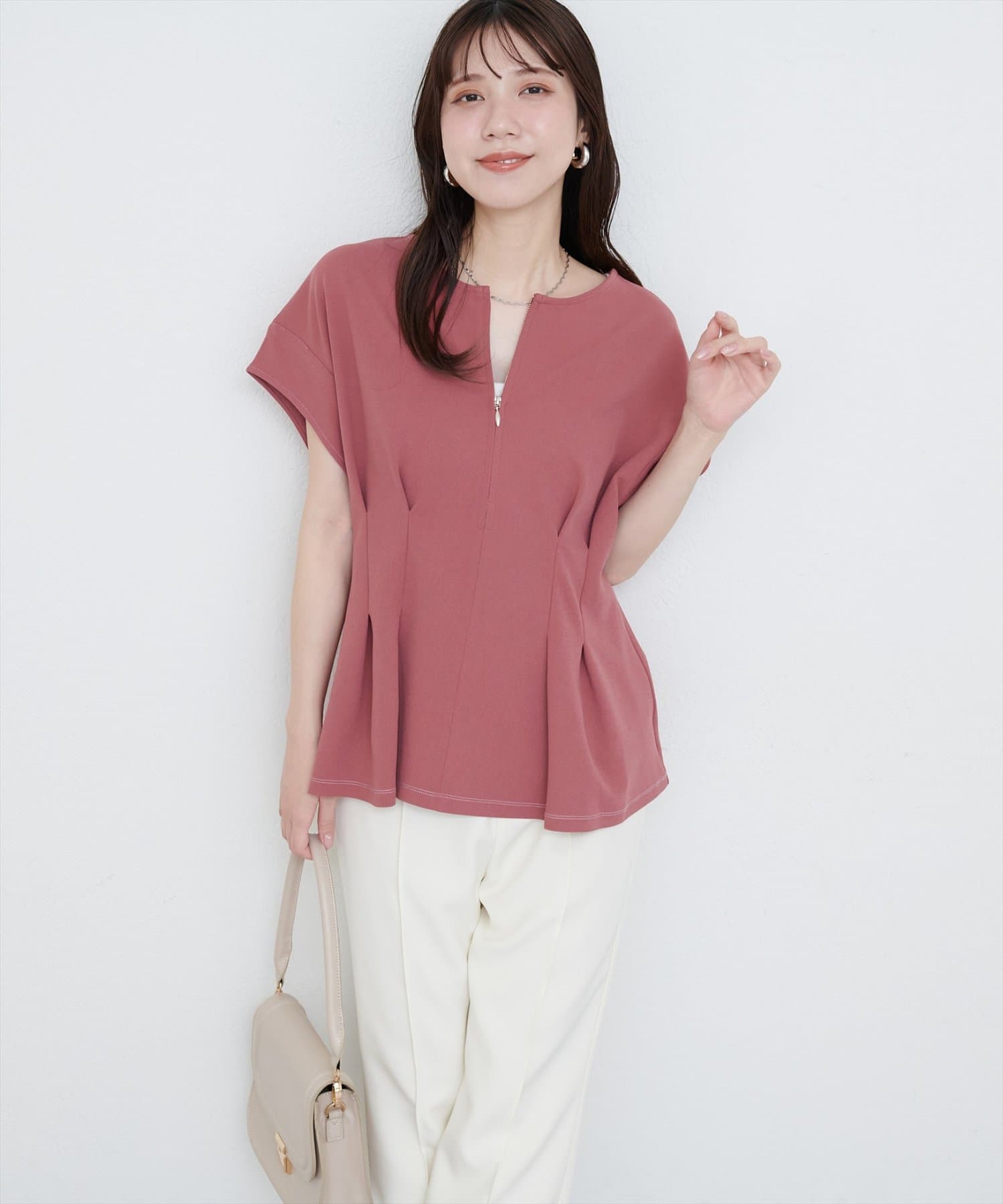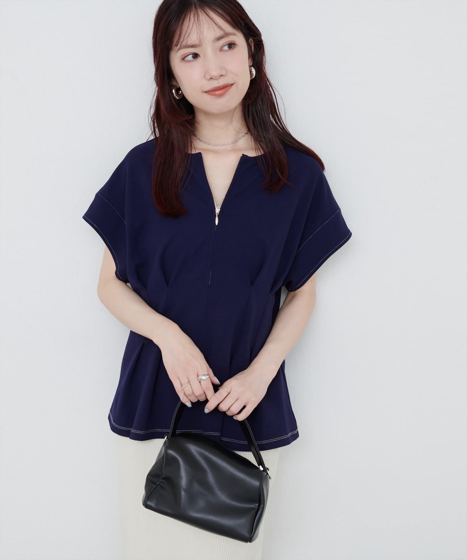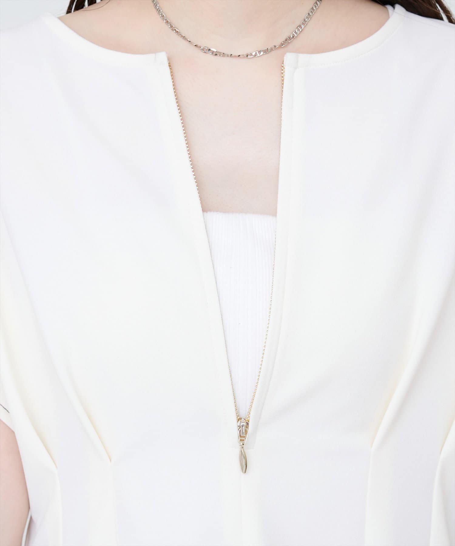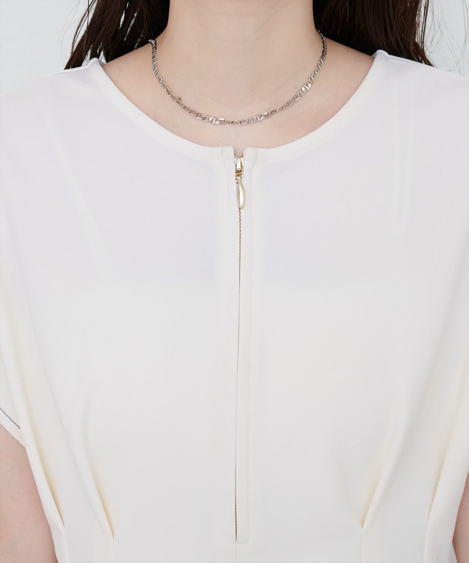 ジップデザインで、クルーネックでもキーネックでもお召頂けるトップス。